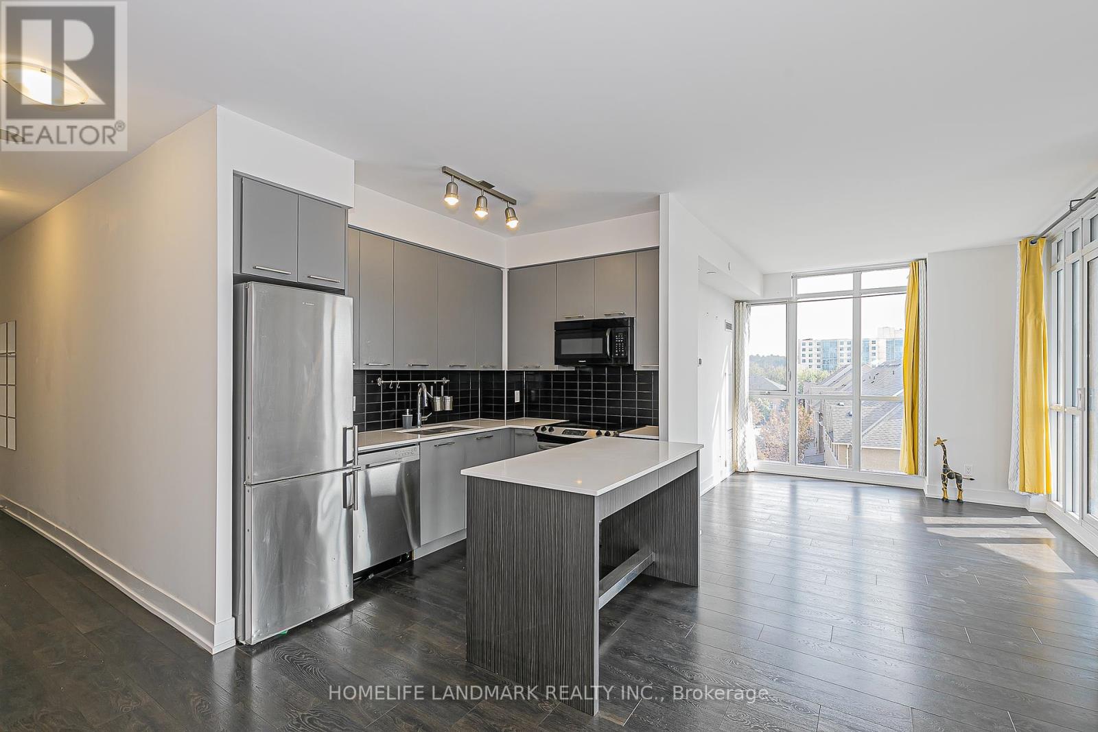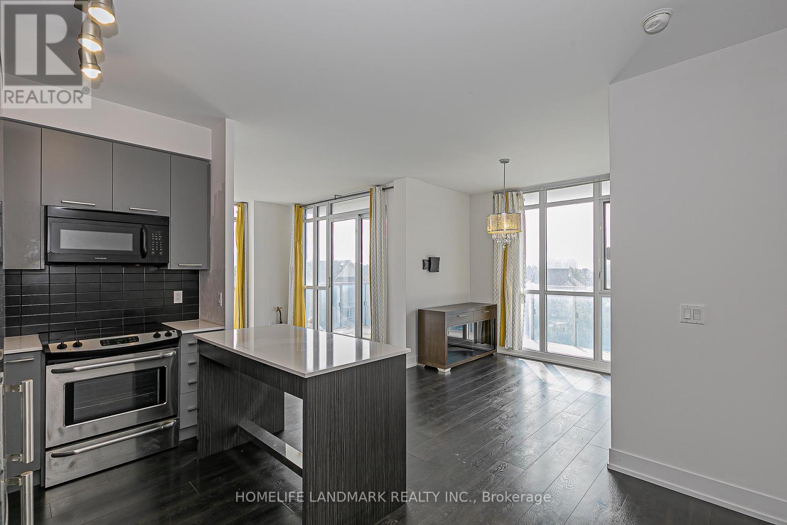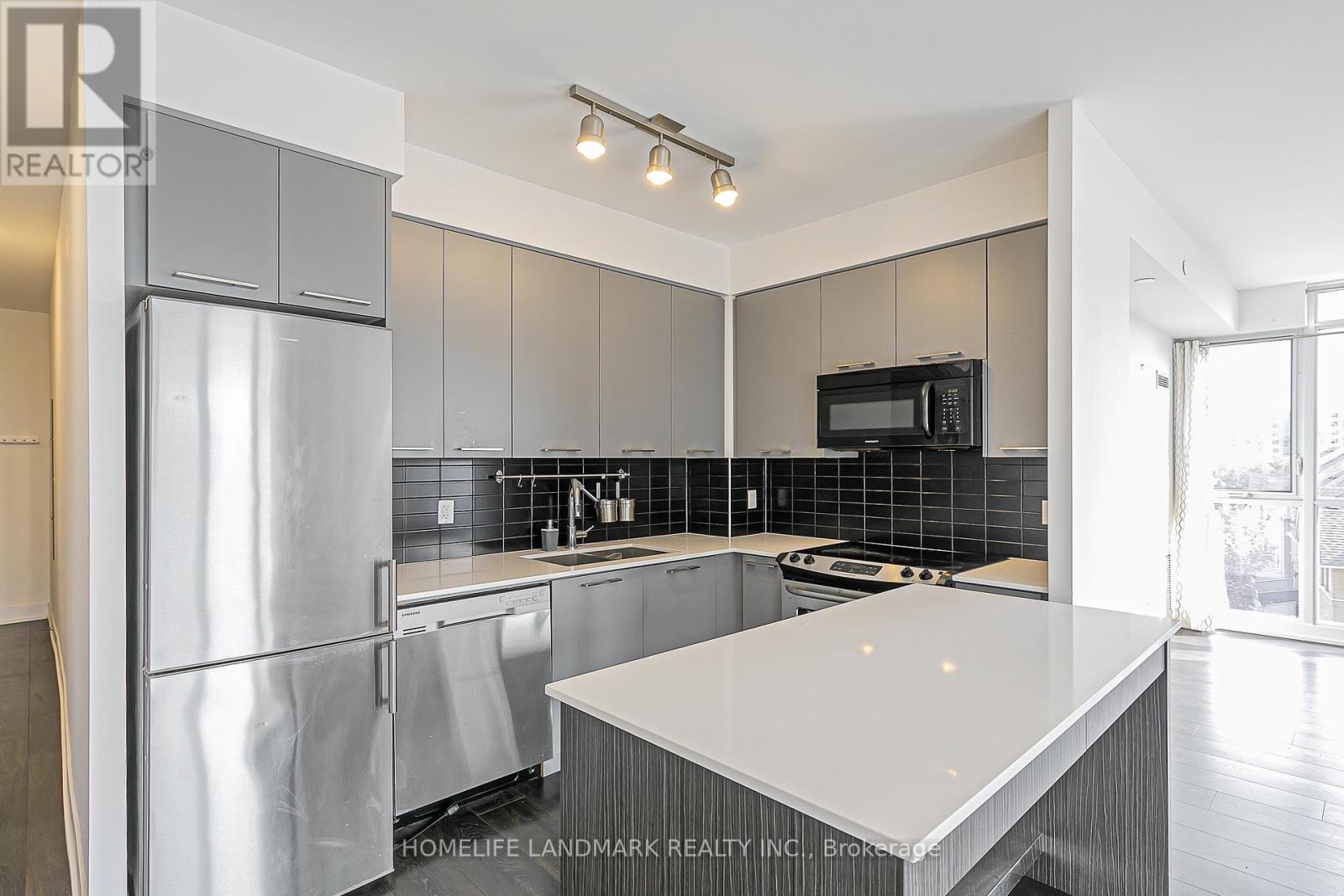 Bright corner unit, 2 split bedrooms + den (3rd room option), 2 baths, 935 sq.ft. + 193 sq.ft. balcony, high ceilings, open concept layout, modern kitchen with island, quartz counters & S/S appliances, close to Hillcrest Mall, schools, grocery & transit, includes 1 parking & 1 locker. (id:4555)