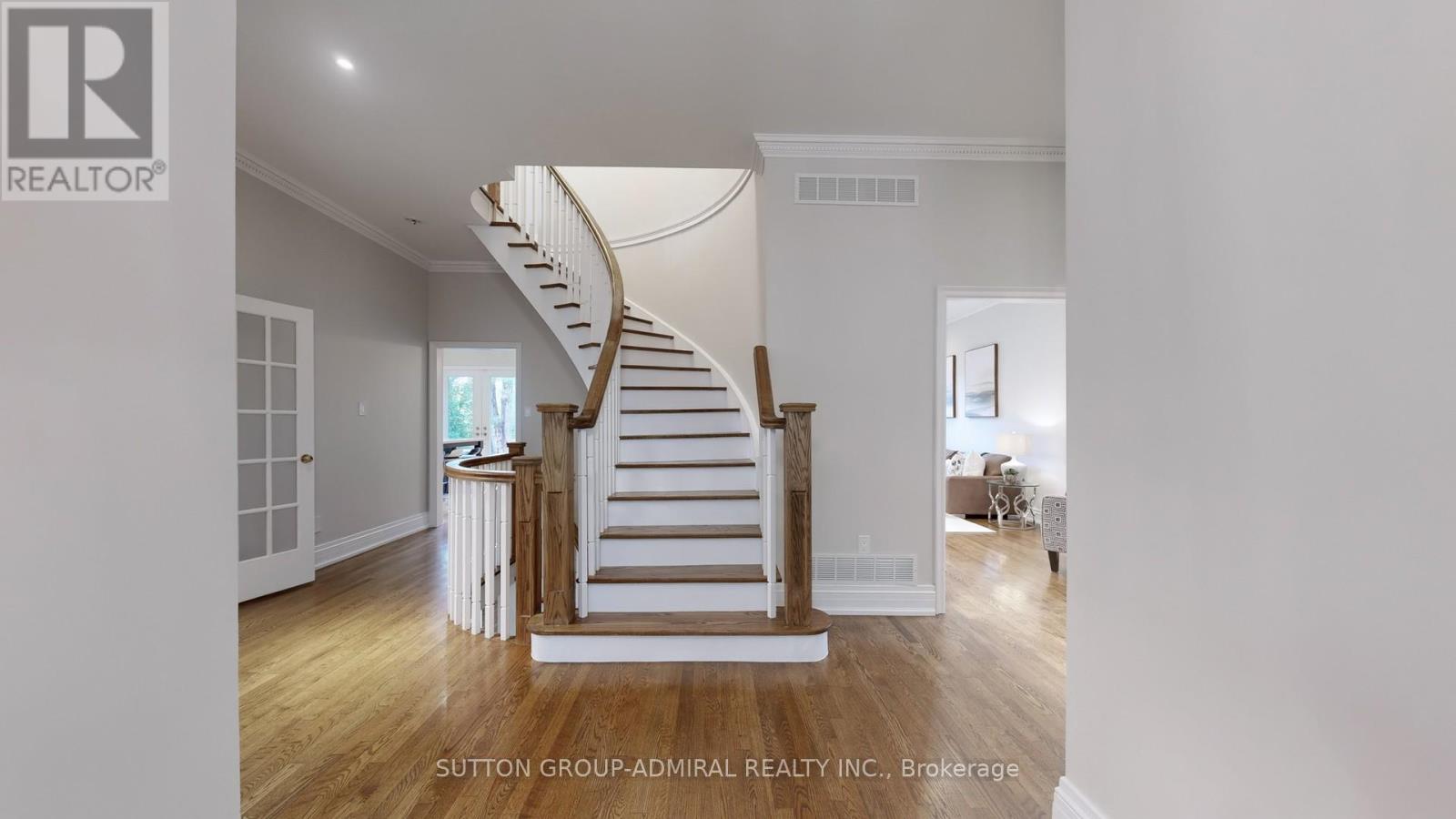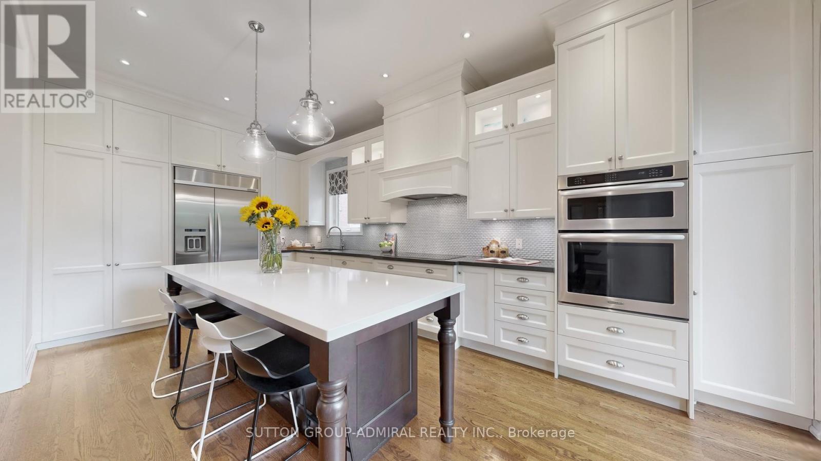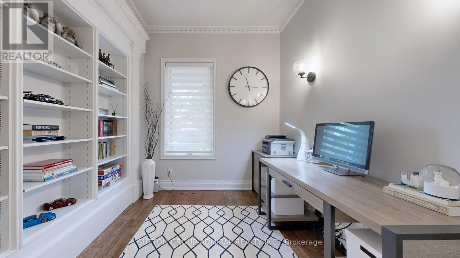Stunning Luxury 4+1 Bedroom Home with Exceptional Upgrades! This beautifully appointed residence features 10 ft ceilings on the main floor, creating a spacious and airy ambiance throughout. The gourmet kitchen is a chefs dream, complete with custom cabinetry, pull-out drawers, quartz countertops, designer backsplash, large center island, and premium stainless steel appliances including wall oven, microwave, fridge, built-in dishwasher. Enjoy seamless flow to the warm dining room and a unique, thoughtfully designed floor plan. The main level also offers a large foyer, elegant oak staircase, and a private library with built-in bookshelf and picturesque window. Upstairs, the primary suite boasts a large custom walk-in closet and a spa-like ensuite. All bedrooms are generously sized with neutral décor. The second-floor laundry room includes built-in shelving and a sink for added convenience. The professionally finished basement features a wet bar, spacious rec room, gym, storage room, and tool room. Additional highlights include upgraded light fixtures, LED pot lights, custom window treatments, closet organizers, high baseboards, crown molding, and upgraded windows and patio doors (front and back).This home combines luxury, comfort, and functionality a must-see! (id:4555)
