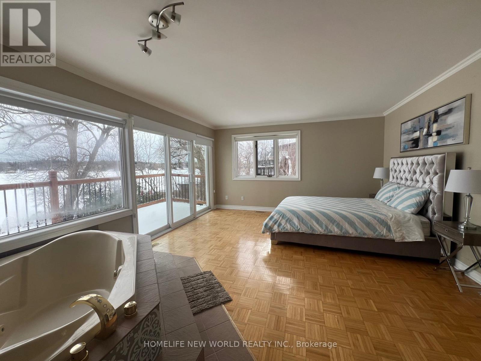 Stunning Waterfront Home With Beautiful Backyard View And Walkout To Lake Wilcox. Furnished and move-in ready. Open Concept Layout With High Ceilings And Skylights, Large Wide Windows Throughout Provide Plenty Of Natural Light And Sun. Almost All Rooms Have Lake View. Access To Outdoor Fishing, Boating With Direct Dock Access, Water Sports, Walking Trails and Parks Provides Plenty Of Fun And Activities For Family & Friends. 5x Large Bedrooms with 5x Spacious Bathrooms Means Comfort For All! Modern Chef Inspired Kitchen With Large Island, Granite Countertops, Stainless Steel Appliances & A Two-Way Gas Fireplace. Have Fun In The Indoor Jacuzzi And Then Relax In A Cedar Wood Sauna. Gorgeous Views At Sunrise. (id:4555)