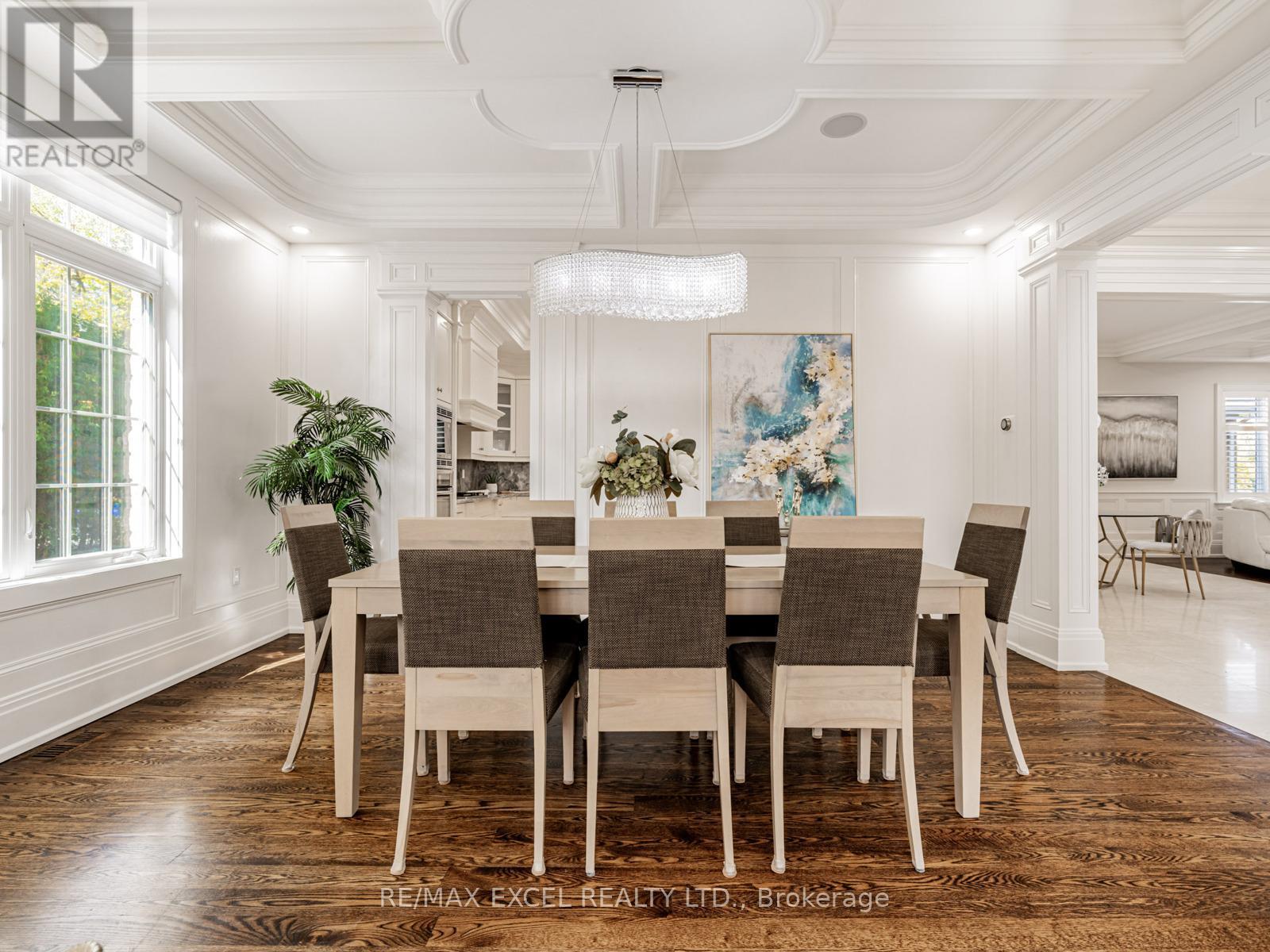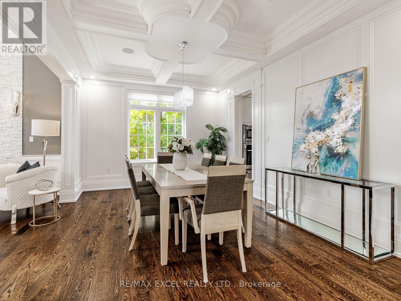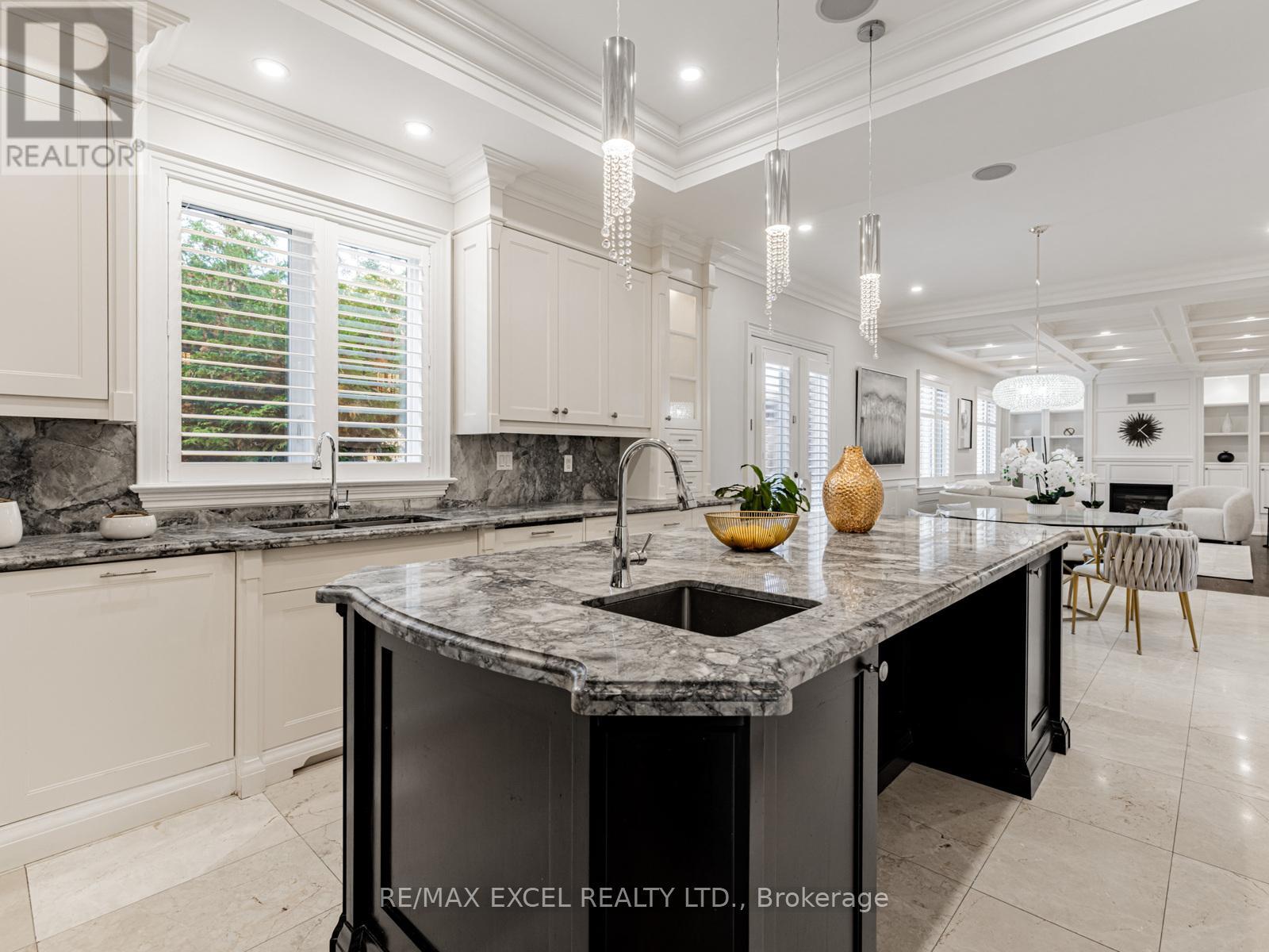 A timeless custom-built masterpiece in prestigious South Richvale, one of Richmond Hill's most desirable neighbourhoods. Set on a premium 75 ft 148 ft lot, this elegant home offers over 6,800 sq.ft. of refined living space with 10 ft ceilings on the main floor and 9 ft ceilings on the second floor and basement, blending classic architecture with modern comfort.The grand 20 ft foyer welcomes you with Italian marble flooring, a dazzling crystal chandelier, and an octagonal dome skylight with LED cove lighting. Flowing from the foyer, the living room features hardwood flooring, soaring ceilings, and a striking two-storey stone feature wall that radiates warmth and sophistication.The formal dining room shines with hardwood floors, pot lights, and a detailed coffered ceiling - perfect for elegant gatherings. The family room is spacious and inviting, with a waffle ceiling, fireplace, and custom built-in shelving - a perfect place to relax or entertain. The office, quietly positioned nearby, includes custom cabinetry and a walkout to the patio, offering an ideal setting for work or study.The gourmet kitchen stands at the heart of the home, showcasing a large center island, sleek cabinetry, and premium built-in stainless steel appliances. A bright breakfast area opens to a custom wood deck, seamlessly connecting indoor and outdoor living.Upstairs, the primary suite is a true retreat, featuring a spa-inspired 7-piece ensuite and a custom walk-in closet. A second ensuite bedroom provides privacy and comfort, while two additional bedrooms share a semi-ensuite, each enhanced with pot lights and organized closets.The finished walk-up basement offers a home theatre, custom wet bar, fitness room, and nanny/guest suite. Professionally landscaped front and side yards complete this exceptional residence, where timeless design and fine craftsmanship define the essence of luxury living. (id:4555)