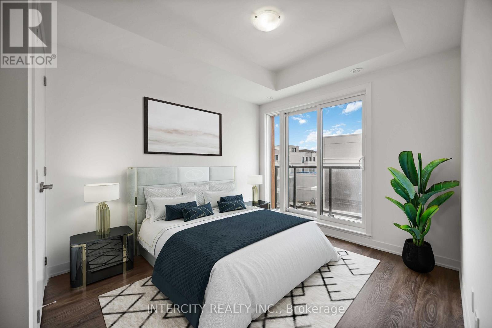 Welcome to this stunning 1,268 sqft. + 400sqft Terrace CORNER + UPPER LEVEL townhome, drenched in sunlight and designed for modern living. Enjoy soaring 10' smooth ceilings and an ultra-modern kitchen equipped with premium finishes, including a built-in fridge, dishwasher, oven, and stovetop. The quartz countertops and undermount lighting add a touch of elegance. Enjoy 400 Sqft of terrace space where you can unwind and enjoy views of the lush greenery. The primary bedroom features its own balcony access, a 3-piece ensuite with a stunning glass shower, and a generous closet. The second bedroom boasts floor-to-ceiling windows, ensuring ample natural light, along with its own closet. Convenience is key with an additional 3-piece bath on the second level and laundry facilities. The grand rooftop offers plenty of room for entertainment space, perfect for gatherings and enjoying the outdoors. (id:4555)