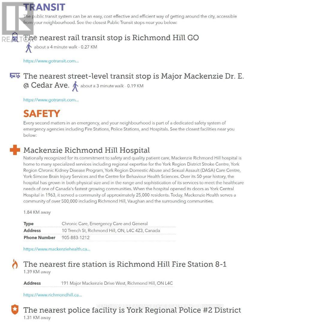 175 Cedar Avenue is located in the Harding neighbourhood of Richmond Hill, a well-established and centrally positioned community known for its quiet residential character and convenient access to amenities. Renters benefit from proximity to key amenities. Grocery stores, pharmacies, banks, and a diverse range of restaurants and cafés along nearby Yonge Street are within short travel distance, reducing daily commute times for errands and dining. The area is served by York Region Transit (YRT) routes with connections to major transit hubs such as Richmond Hill GO Station. This supports commuter access to surrounding communities and transit links toward Toronto and other parts of the Greater Toronto Area. Major thoroughfares, including Highway 404 and Highway 407, are readily accessible by car. This provides flexibility for renters who drive, facilitating commutes to employment centres across the region. Multiple parks and green spaces are nearby, offering walking trails, open areas, and community gathering spots. These contribute to a desirable lifestyle for renters who value outdoor activity and leisure without needing to travel far. Low-traffic residential streets, sidewalks, and access to quality schools and recreational facilities make the neighbourhood appealing for families renting in the area. This enhances overall community safety and quality of life with proximity to community centres, cultural amenities, and public services supports diverse lifestyles and adds convenience for renters of all ages. (id:4555)