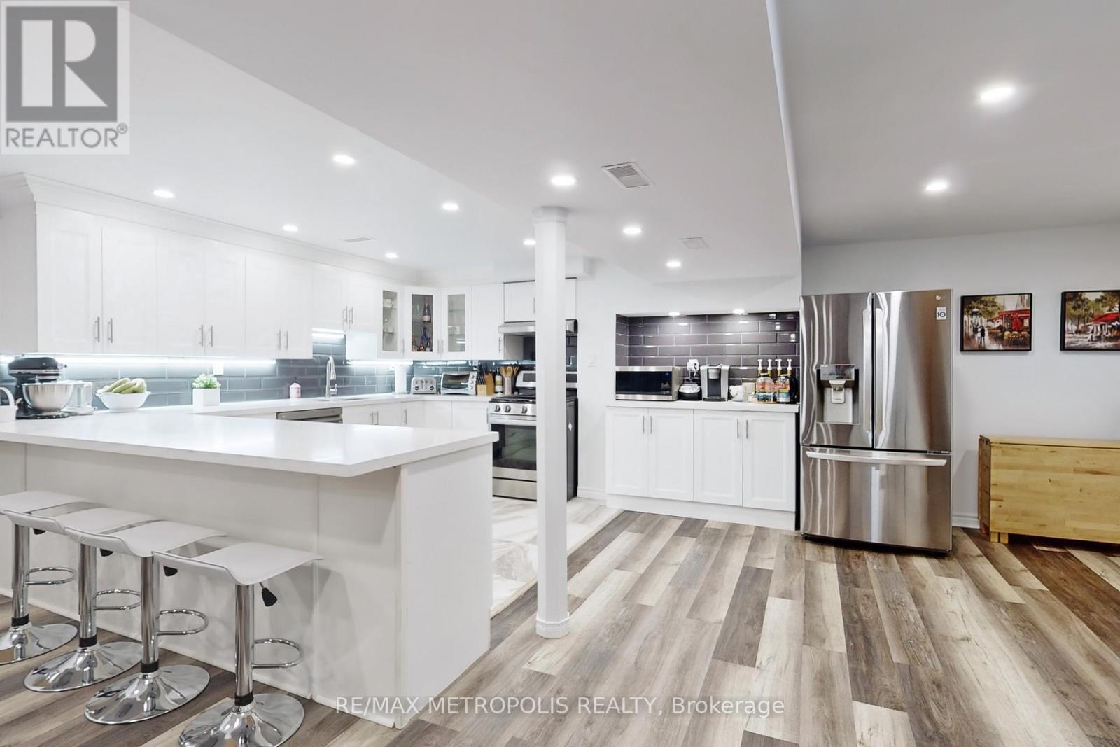 NEW RECENTLY MODIFIED MAIN FLOOR. Welcome to this spacious and beautifully updated family home offering 7 bedrooms and 6 bathrooms - perfect for large or multi-generational families looking for comfort, privacy, and togetherness under one roof. A wonderful highlight of this home is the main-floor in-law suite, thoughtfully designed for independent living. It features a generous bedroom with new hardwood floors, a private ensuite bath, a cozy family room, dining area, full kitchen, laundry, sunroom, and direct access to the garage - ideal for parents, adult children, or guests who want their own space while staying close to family. The main kitchen opens into a bright four-season sunroom, filled with natural light from newly replaced skylights. With a heat pump providing both warmth and cooling, this cheerful space can be enjoyed year-round - a perfect spot for morning coffee or family meals. Step outside to a beautifully landscaped backyard, complete with a peaceful sitting area beneath a charming pergola - a lovely place to relax or host summer gatherings. The basement offers even more possibilities, featuring a second full kitchen, laundry area, and plenty of space for extended family or guests. All bathrooms have been tastefully renovated with luxury finishes, including towel warmers and bidets.**** EXTRAS ****Interlock driveway, central vacuum, new skylights, quartz countertops, two gas stoves, pot filler, new A/C, tankless water heater, two full kitchens, two laundries (main & basement), and pot lights throughout. All renovations completed in 2022. All equipment owned. (id:4555)
