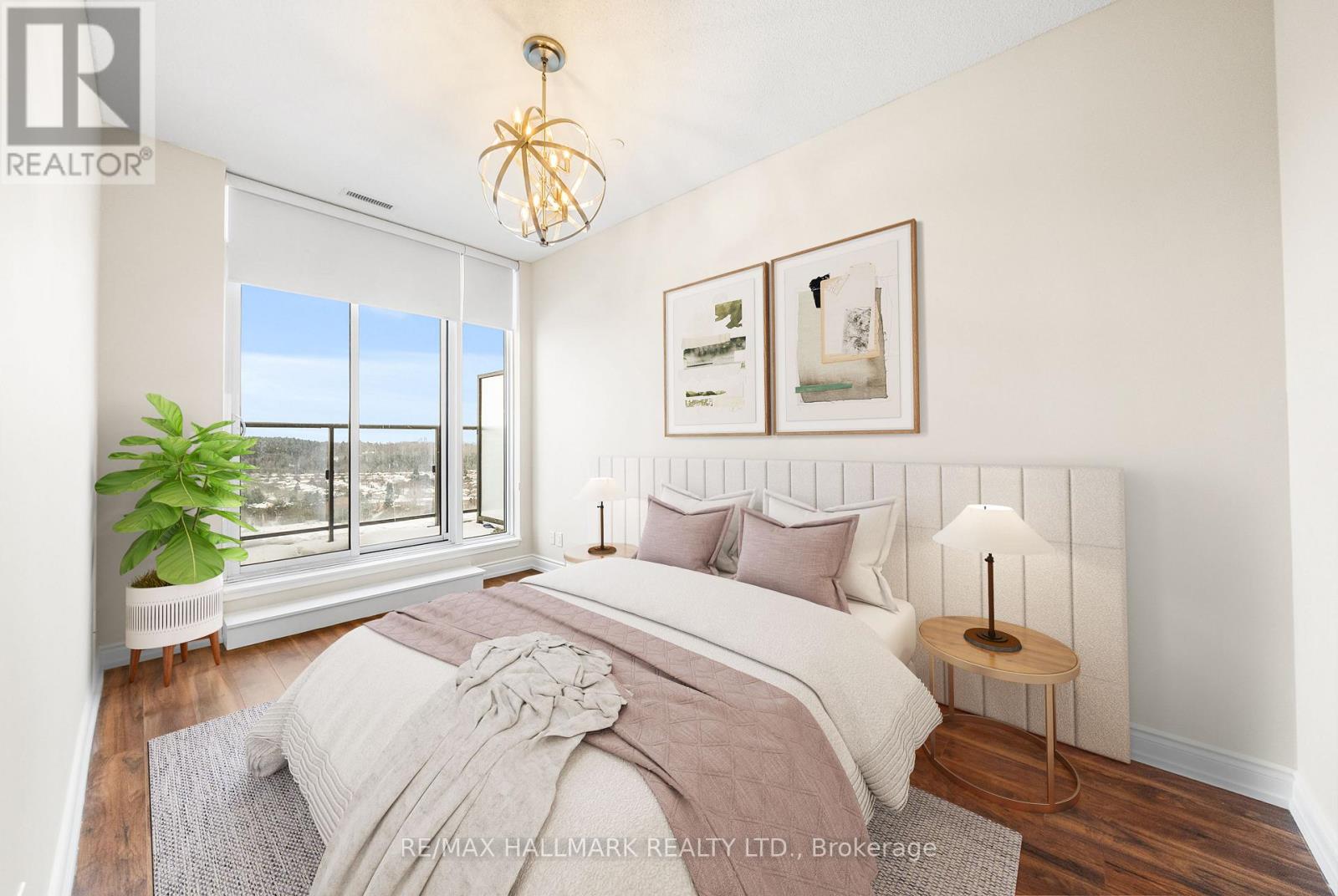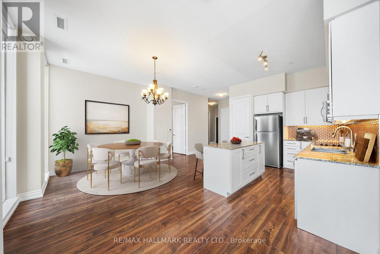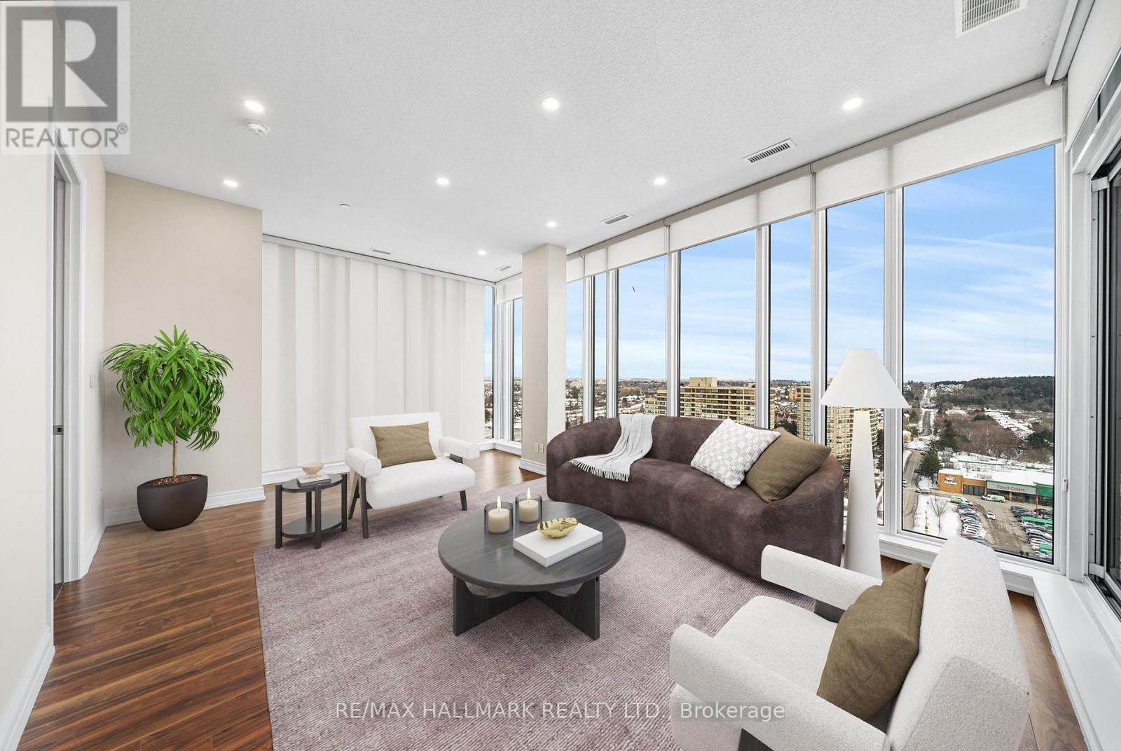 Welcome to PH06 at 9600 Yonge Street, a truly rare offering that elevates luxury living to the pinnacle of Richmond Hill. This exquisite 1,295 sq. ft. penthouse showcases a bright, open-concept design with soaring 10' ceilings and floor-to-ceiling windows that capture breathtaking panoramic east and northeast views. The sophisticated living and dining areas seamlessly connect to a chef-inspired kitchen featuring granite countertops, stainless steel appliances, and a stylish breakfast bar-perfect for both everyday living and elegant entertaining. Laminate flooring and pot lights add refined, modern finishes throughout. Two private balconies, one equipped with a gas BBQ line, providing the ideal setting to relax or host guests while taking in the skyline views. The well-designed layout includes two spacious bedrooms, each offering a closet and a beautifully appointed ensuite. A private locker conveniently located directly in front of your parking spot adds everyday practicality. Residents benefit from the exceptional Grand Palace amenities, including 24/7 concierge, indoor pool, sauna, gym, yoga studio, party room, guest suites, visitor parking, and a rooftop terrace. All of this is just steps from Hillcrest Mall, dining, transit, and top-rated schools, delivering the perfect blend of luxury, comfort, and convenience. *Some photos have been virtually staged* (id:4555)