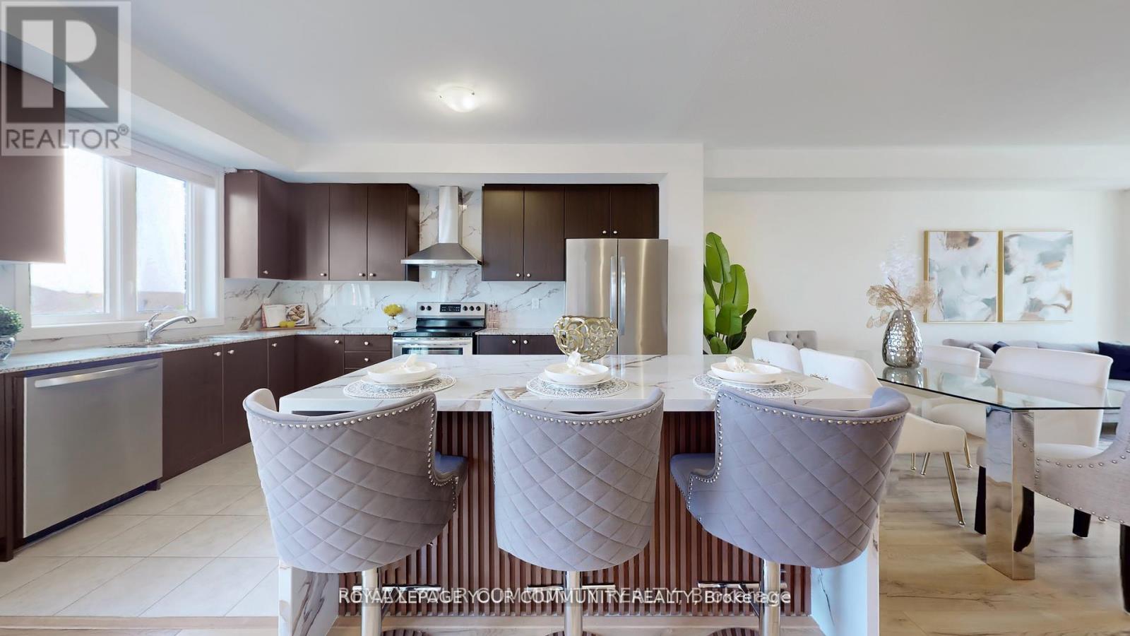 Elegant, Sun-Filled Townhome in Prestigious Rouge Woods! This beautifully upgraded, south-facing residence offers 2,377 sq.ft. of refined living space, ideally set back from the main road for peace and privacy. Soaring 9' ceilings on the main and second levels, complemented by a striking 10' tray ceiling in the primary bedroom, enhance the airy, open feel. Enjoy stylish laminate flooring throughout, and a chef-inspired kitchen featuring granite countertops, sleek backsplash, LED pot lights, a generous centre island, and premium stainless steel appliances-perfect for both everyday living and sophisticated entertaining. The open-concept living and dining rooms offer an inviting ambiance, while the expansive primary suite boasts a walk-in closet and spa-like ensuite. The professionally finished basement includes a 3-pc bath and private garage access to the main floor-ideal for creating a stylish in-law or guest suite with kitchen. Added conveniences include a third-floor laundry and rough-in for a second laundry in the basement. Recently painted in fresh, modern tones. Steps to Richmond Green Sports Centre, top-rated schools, Costco, Home Depot, GO Station, parks, and Hwy 404. A true blend of comfort, style, and versatility in a high-demand community! (id:4555)