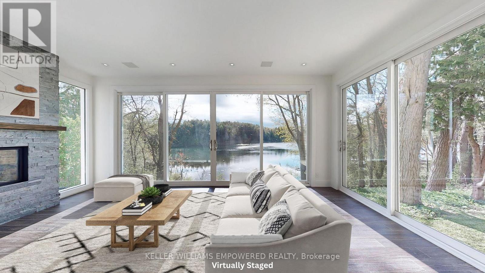 1.014 acres backing onto Protected Philips Lake, in the center of York Region! Enjoy Muskoka views every day of the week from Richmond Hill! Unmatched 4-season scenic views of the lake. Prefect for multigenerational living with main home and secondary suite w/ elevator! Main home boasts spacious principal rooms flooded w/natural light. Dream kitchen features valence lighting, centre island accented w/pendant lights & room for 4 stools w/soapstone countertops overlooking the family room & sunroom w/ window wall & floor-to-ceiling stone gas fireplace, reclaimed vintage wood mantle & unparalleled lake views. Amazing primary bedroom w/ soaring cathedral ceilings, gas fireplace w/granite surround, spa-like ensuite w/vaulted ceiling, brick feature wall, reclaimed barn beam built vanity & 2 walk-in closets. Primary bedroom laundry area & 2nd floor main laundry rm. Lower level boasts a perfect family recreation room. Observation deck in rear grounds overlooking Phillips Lake. Table space for games on the grounds. Secondary completely self-sustaining suite features 16 ft. ceiling in great room w/amazing western lake views from your balcony, wide-plank flooring, fireplace, dining area, built-in speakers & reclaimed beam wall feature. Kitchen features primary bedroom with soaring ceilings, Romeo & Juliet balcony, 6-pc ensuite w/double sink, stone countertop featuring one wheelchair accessible sink & zero-barrier access to shower, Heated 6-car garage between main and secondary homes w/ elevator access to secondary suite. Breathtaking 364 sq. ft. greenhouse serves to satisfy your green thumb or for hosting garden parties, rain or shine! Walking distance to Yonge Street. Excellent schools and golfing nearby. Just 5 minutes to fine dining & shops offered in Richmond Hill, Aurora. (id:4555)