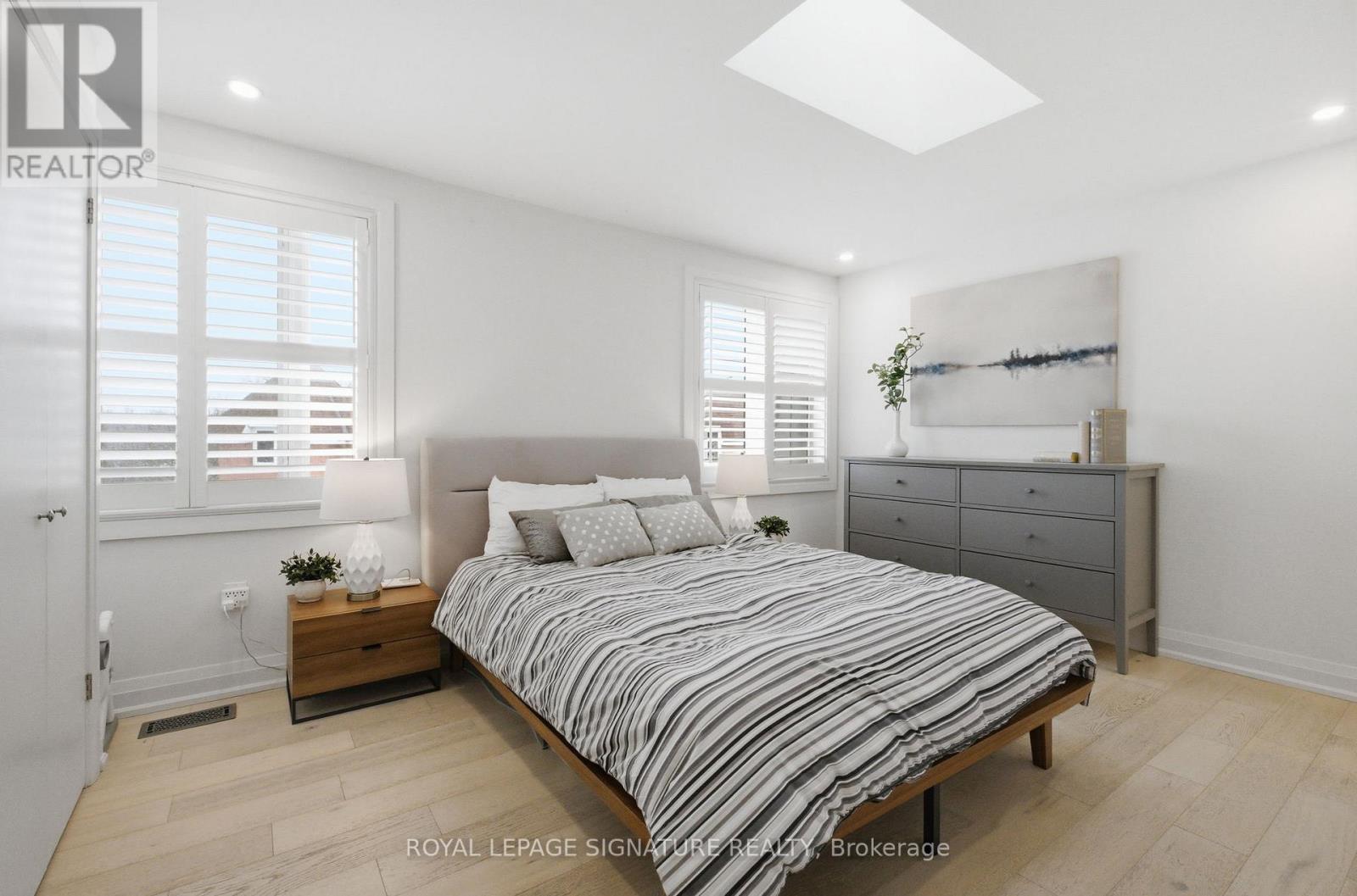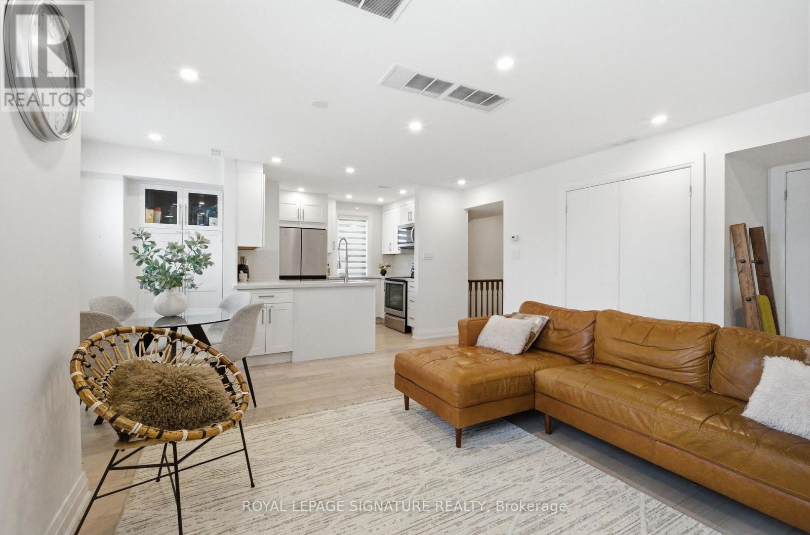 One of the larger end-unit townhomes in the community, offering an exceptional layout and an expansive rooftop terrace. This beautifully updated 3-bedroom, 3-bathroom home features a bright open-concept floor plan with no wasted space and spacious principal rooms designed for comfortable everyday living and effortless entertaining.The main level showcases a beautifully updated kitchen with quartz countertops, and thanks to its corner-unit position, the kitchen enjoys wonderful natural sunlight throughout the day. The space opens seamlessly into the living and dining areas, creating an ideal layout for botheveryday living and entertaining. Pot lights throughout the space adds a clean, modern touch and enhance the bright, airy feel of the home.Upstairs, you will find three generous bedrooms including a primary retreat with a skylight that brings in beautiful natural light. The standout feature of this home is the oversized private corner rooftop terrace, perfect for summer BBQs, family dinners, entertaining friends, or simply relaxing outdoors in your own private space. Situated on a premium corner position within this well planned community, the home is surrounded by parks and green space and is just steps to everyday conveniences. Enjoy walking distance to the mall, grocery stores, and the public library, making errands and weekend outingseasy and convenient. Complete with two parking spaces and a locker, this rare end unit offers both space and lifestyle in one of the area's most desirable communities. Replaced HVAC system (2023) (id:4555)