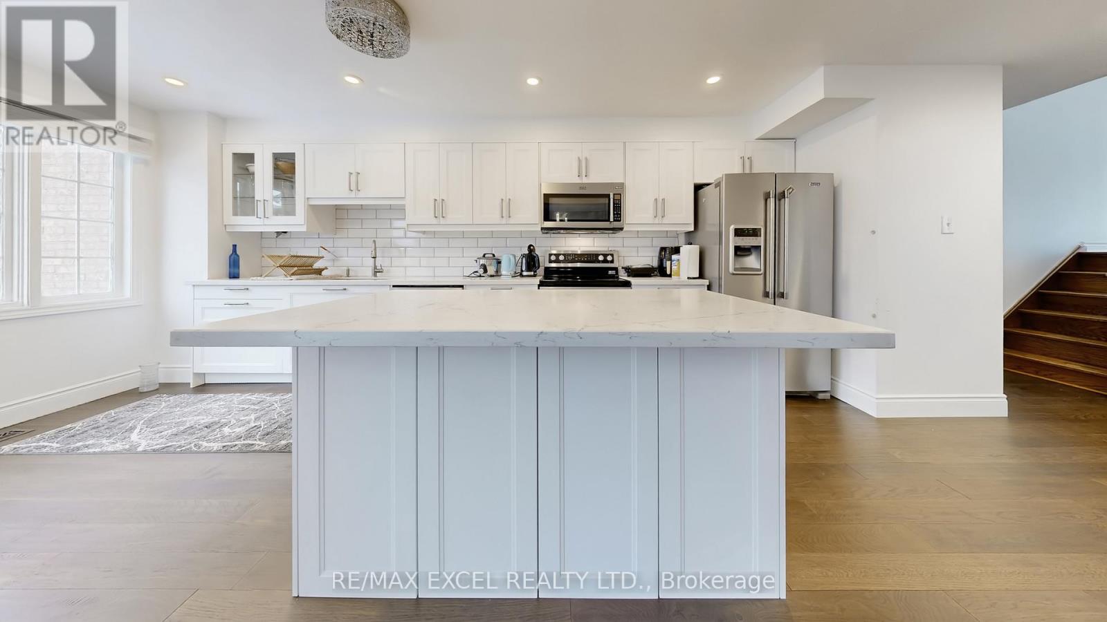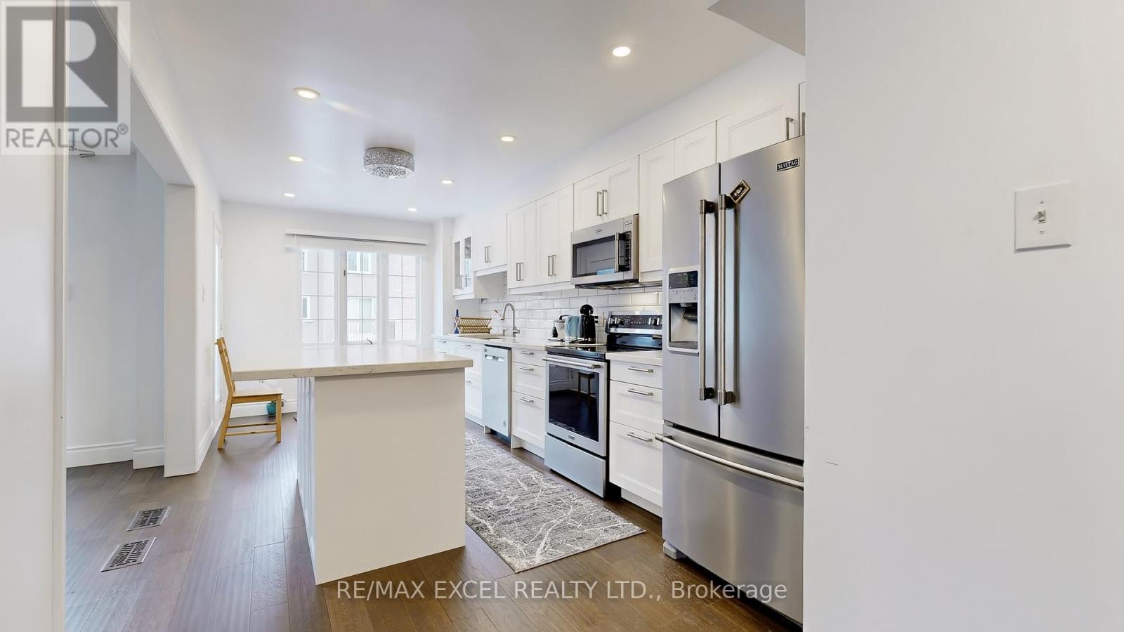 Freehold townhouse situated on a quiet crescent in a convenient, family-oriented neighbourhood close to all major amenities. Features a bright open-concept living and dining space and a renovated custom kitchen with walk-out access to a deck. The fully finished walk-out basement includes a complete second kitchen and a 3-piece bathroom, providing great potential for rental income or extended family use. Walking distance to the GO Train Station and Richmond Hill Transit Centre, as well as nearby parks, schools, and shopping. Quick access to Highways 404 and 407. Recent updates include furnace (2022), kitchen upgrade (2019), engineered hardwood flooring (2019), pot lights (2019), and fresh paint (2024). (id:4555)