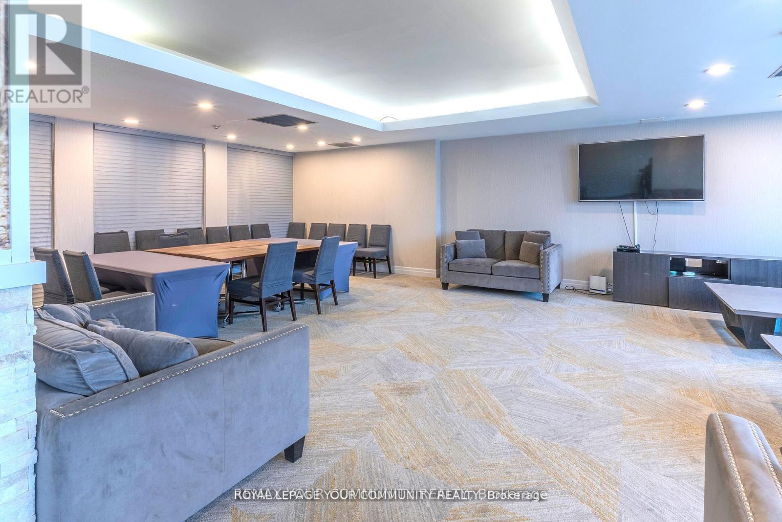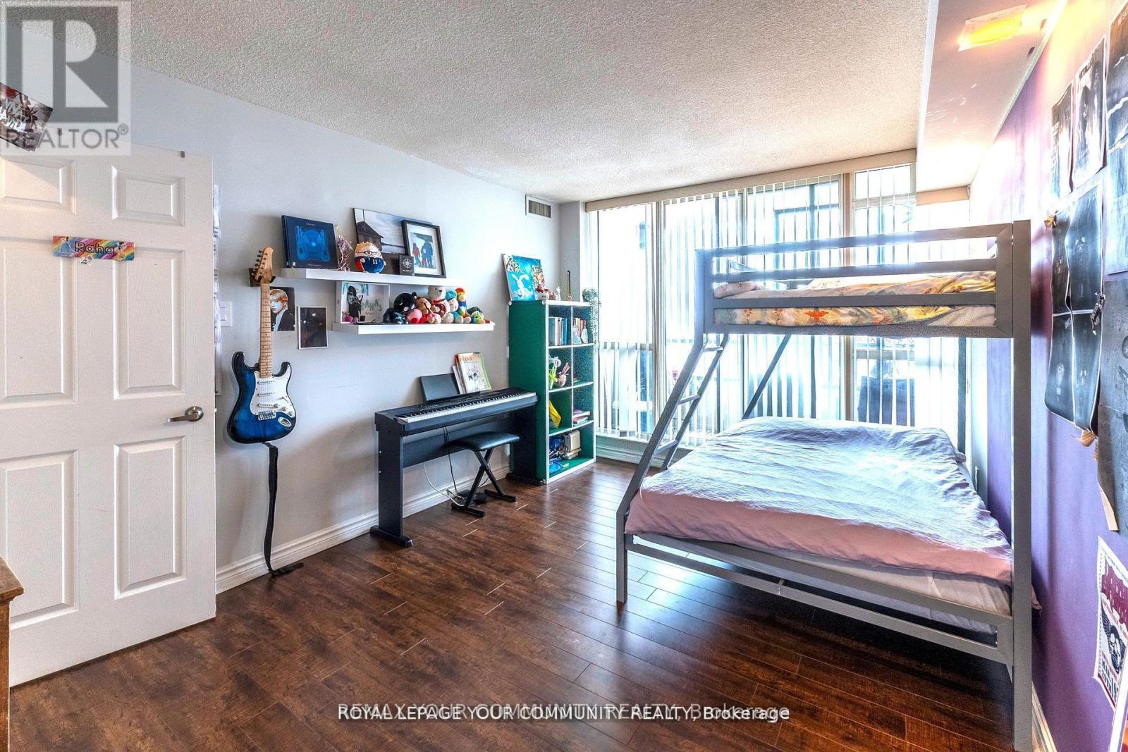 An exceptional and rarely available South West residence offering one of the largest and most coveted layouts in the building. This stunning suite delivers an unparalleled combination of scale, natural light, and versatility featuring a highly desirable split 2 bedroom plus oversized den layout, 2 full bathrooms, and over 1200 sq. ft. of refined interior living space, complete with a private balcony.Wrapped in expansive windows, this home is flooded with natural sunlight from morning through late afternoon, creating a bright, uplifting atmosphere throughout. The grand open-concept living and dining areas offer a sophisticated yet comfortable setting-perfectly suited for both everyday living and elegant entertaining.The spacious kitchen, complemented by a dedicated breakfast area, provides abundant workspace and storage, making it as functional as it is inviting.The primary bedroom is a peaceful retreat, featuring a walk-in closet and a full ensuite bathroom. Enhancing the home's practicality is a separate, oversized laundry room offering storage capacity rarely found in condominium living.This unit also includes two parking spaces, a highly valuable and increasingly rare convenience.The building is undergoing significant upgrades, including a beautifully renovated lobby and hallways, exterior enhancements, and balcony refurbishments further elevating both lifestyle and long term value. Maintenance fees are all-inclusive, covering utilities, cable TV, and internet, ensuring ease and predictability in ownership.Residents enjoy a resort style living experience with premium amenities, including 24-hour concierge service, an indoor pool, fitness centre, sauna, squash and tennis courts, a party/meeting room, and ample visitor parking.Ideally located just minutes from shopping, transit, Highways 7, 404 & 407, Mackenzie Health, top rated school. Note: Upon completion of the special assessment, monthly maintenance fees will be reduced by $214.53 (id:4555)