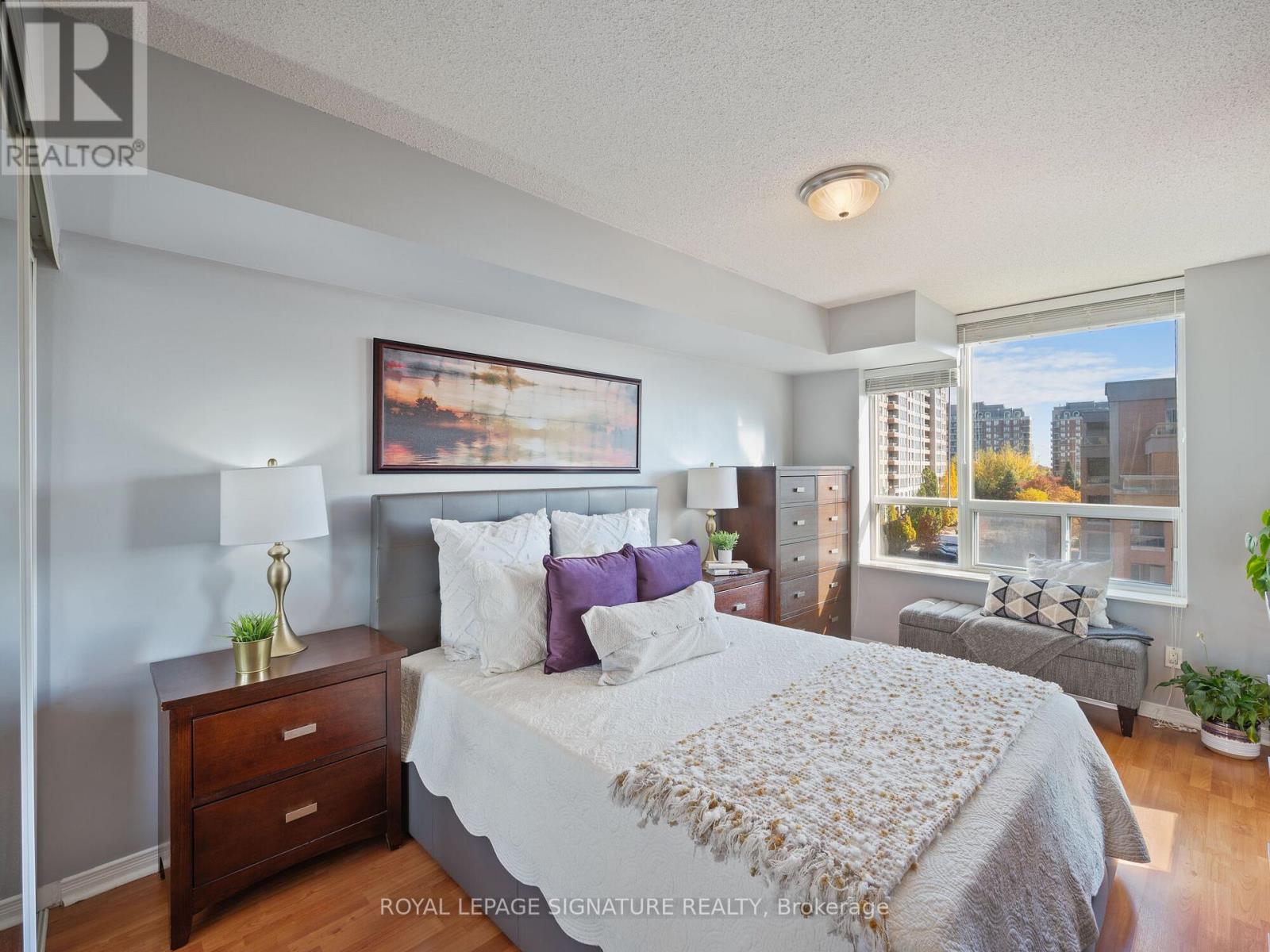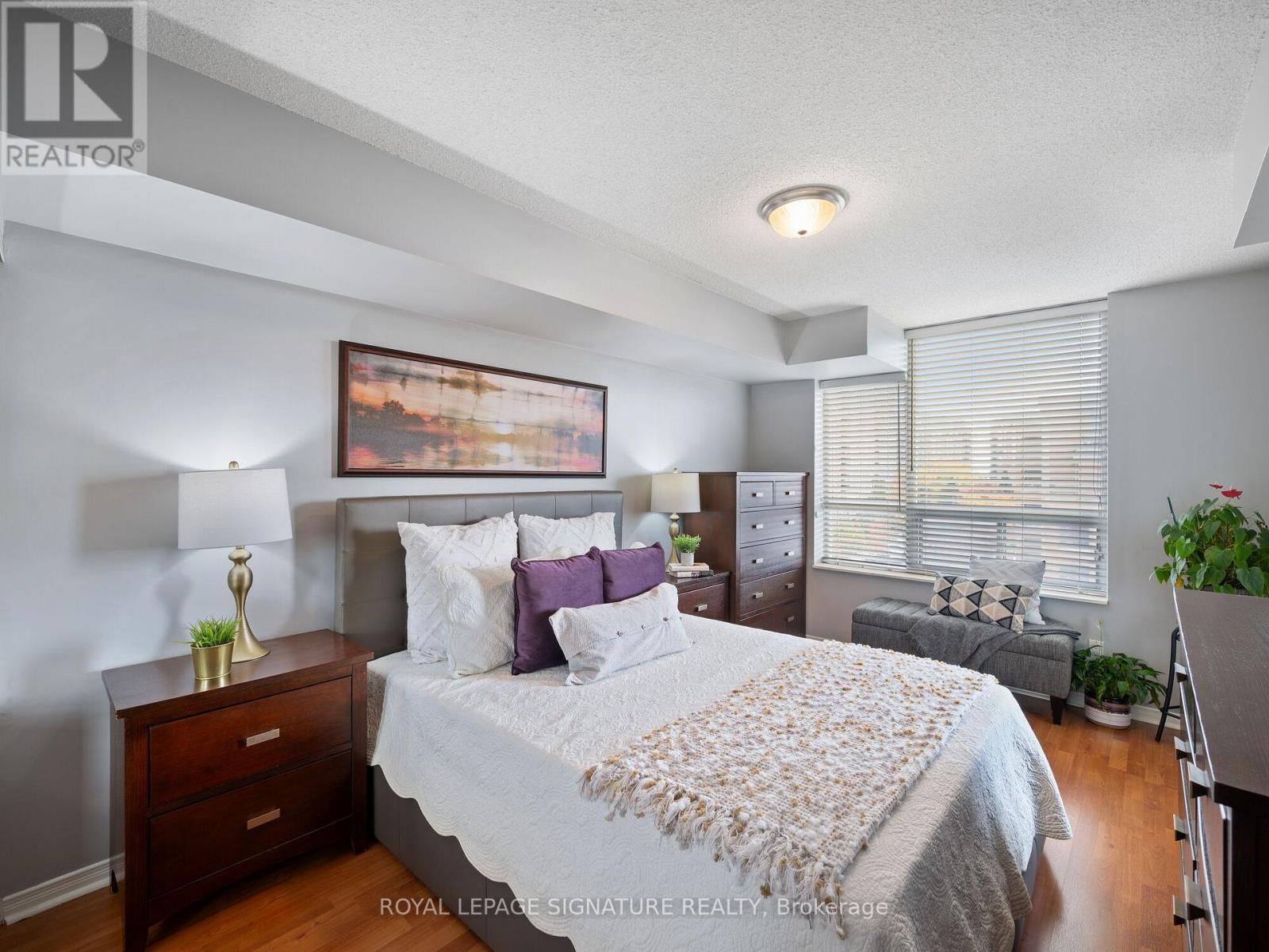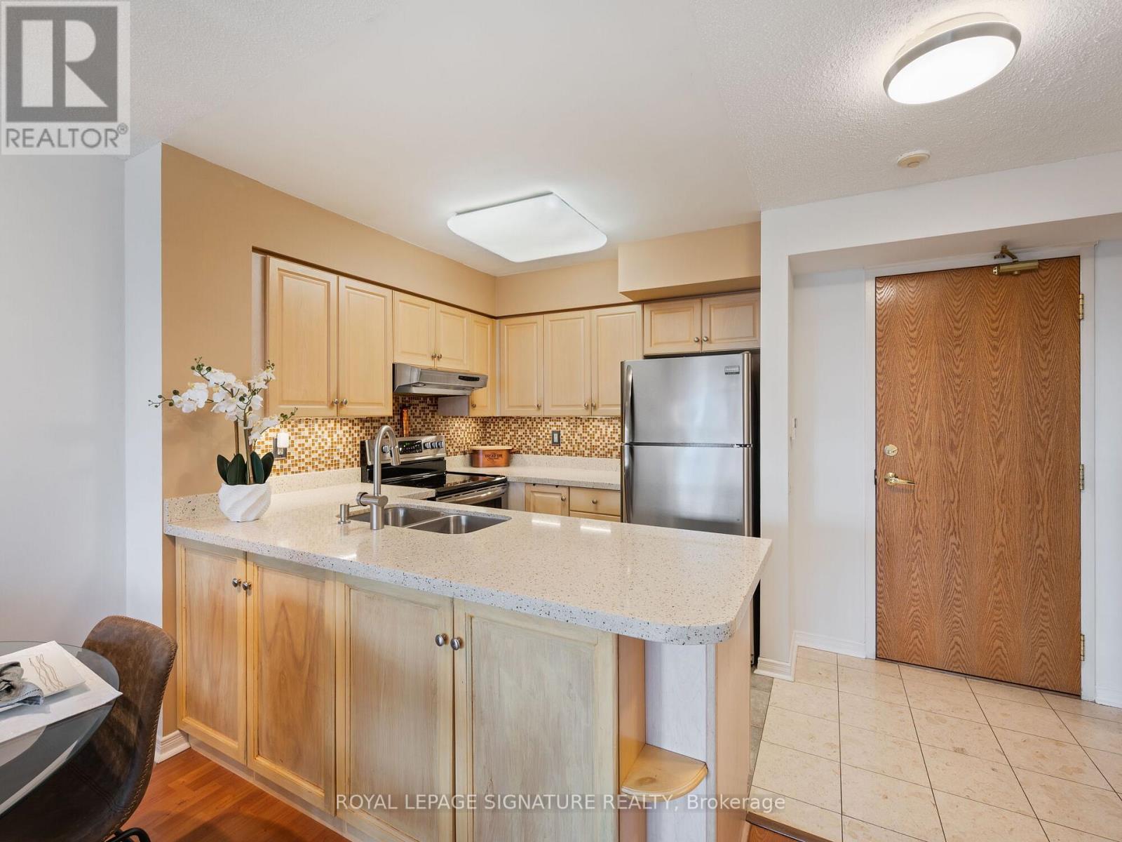 Welcome to this spacious, well-maintained, bright, and updated 1-bedroom + den condo in one of Richmond Hill's most sought-after communities-perfect for downsizers, singles, or a young family. Located on a lower floor on the preferred quiet side of the building, this unit overlooks the courtyard, offering a private and tranquil setting. The freshly painted interior showcases modern finishes, including sleek laminate flooring, quartz countertops, a glass backsplash, and a large kitchen island with ample storage. The open-concept living space is enhanced by California shutters, while the generously sized bedroom features a large window, double closet, and privacy blinds. The versatile den can easily be converted into a second bedroom, nursery, or home office, complete with wardrobe cabinets for added storage. Enjoy morning light from the east-facing balcony, along with the convenience of ensuite laundry, one underground parking space, and a locker. Residents benefit from excellent amenities, including an indoor pool, jacuzzi, sauna, gym, tennis court, and party room-all within a quiet, well-maintained building. Ideally located just off Yonge Street, close to Hillcrest Shopping Centre, Langstaff GO, Highway 7, and the 407, this home offers the perfect balance of comfort and convenience. *** ALL INCLUSIVE MAINTENANCE FEES *** Don't miss this opportunity-come see this gem for yourself. (id:4555)