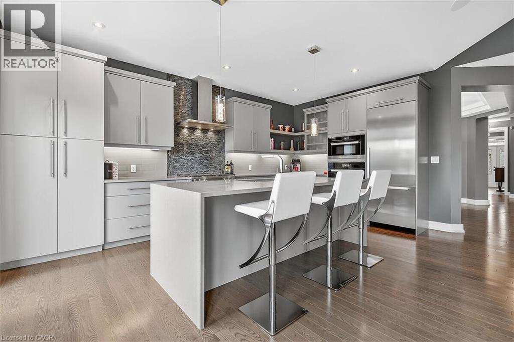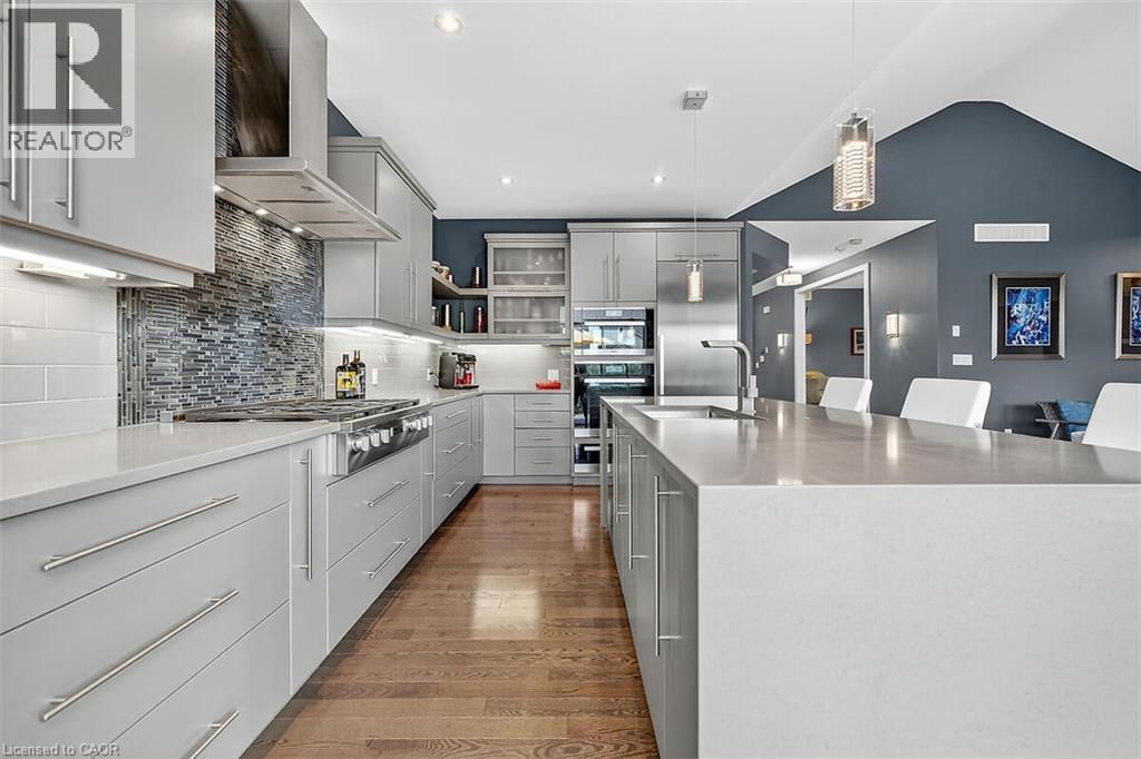 Elegance and sophistication await in this one of a kind “Bristol” model by Charleston Homes in the Noble Ridge community of Rockwood. With $300,000 of upgrades, this home offers over 3,300 square feet of finished space and was designed to meet the expectations of the most discerning homebuyers. At the heart of this home is the showstopping kitchen featuring upgraded Barzotti cabinetry, Silestone Counters, an oversized island with double waterfall design and premium Miele appliances including a convection wall oven, speed oven, warming drawer and 36” gas range. The open-concept great room offers soaring cathedral ceilings, custom built-in cabinets, linear gas fireplace and integrated 5.2 surround sound system. The main level is complete with a separate office space, dining room, powder room and mudroom with laundry. The primary retreat includes an oversize walk-in closet and spa-like five-piece ensuite with deep soaker tub, twin floating vanities and a frameless glass shower. The second bedroom also features a 4 piece ensuite bath. The fully finished walkout basement is complete with a second great room, an additional bedroom, wet bar and a 3 piece bath. The garage is finished with the same attention to detail including epoxy floors, wall panel organizer system plus a premium steel workbench and cabinets. Additional upgraded finishes include premium porcelain and hardwood flooring, upgraded trim and light fixtures and “Control 4” whole home automation including motorized blinds throughout. With too many additional features to list, you need to view this home to learn all it has to offer. (id:4555)
