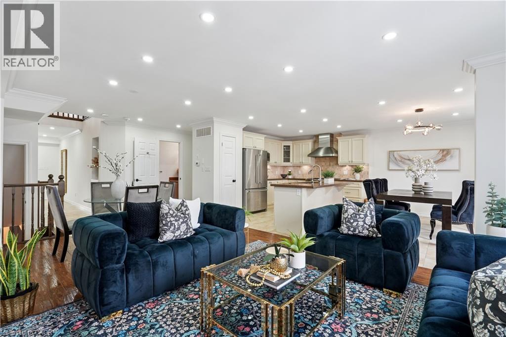 Welcome to 132 Coker Crescent in the heart of Rockwood, a beautifully maintained detached family home on a generous 36 x 116 ft lot in one of the community’s most sought-after neighbourhoods. From the moment you step inside, you’ll appreciate the bright and open main floor layout designed for everyday family living. The combined living and dining room features hardwood flooring, elegant crown moulding, pot lights, and a cozy gas fireplace. Large windows allow natural light to pour in. The kitchen is truly the heart of the home, complete with quartz countertops, a stylish stone backsplash, stainless-steel appliances, gas stove, centre island, pantry, and pot lights. The adjoining breakfast area includes crown moulding and a walk-out to a raised deck. Perfect for summer barbecues. Convenience is key with main floor laundry and direct access to the double car garage. A 2-piece powder room completes this level. Upstairs, hardwood flooring continues throughout. A spacious second-floor family room offers additional living space with crown moulding, ceiling fan, and large windows. Ideal for movie nights or a kids’ hangout area. The primary bedroom retreat features a walk-in closet and a 5-piece ensuite designed for relaxation. Two additional generously sized bedrooms with double closets share a well-appointed 5-piece main bathroom, making busy mornings easy. The finished walk-out basement expands your living space beautifully. The recreation room includes a gas fireplace, and above-grade windows that keep the space bright and welcoming. With a fourth bedroom, 3-piece bathroom, patio walk-out, and cold storage, this level is perfect for teens, guests, or extended family. With parking for up to six vehicles, including a double car garage and four-car driveway, this home checks every box for modern family living in Rockwood. If you are searching for a detached home with finished walk-out basement near parks and conservation areas, this is the one. (id:4555)
