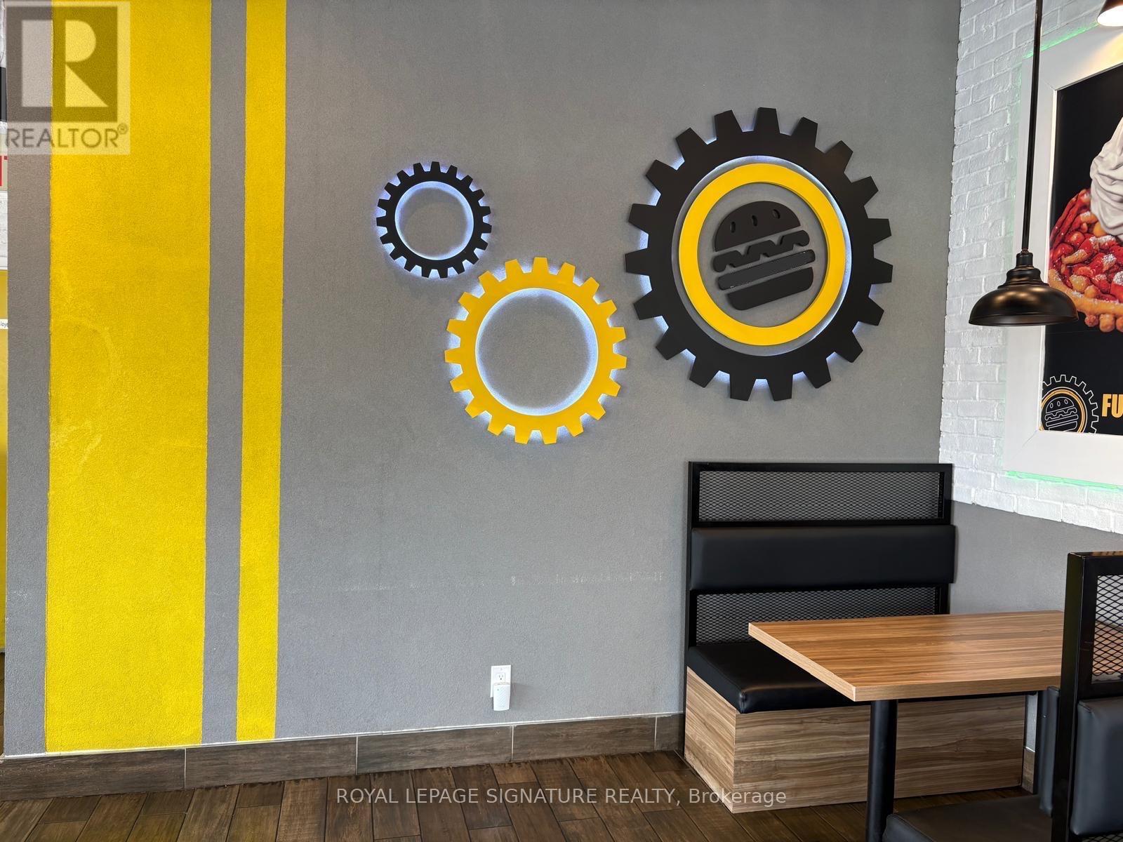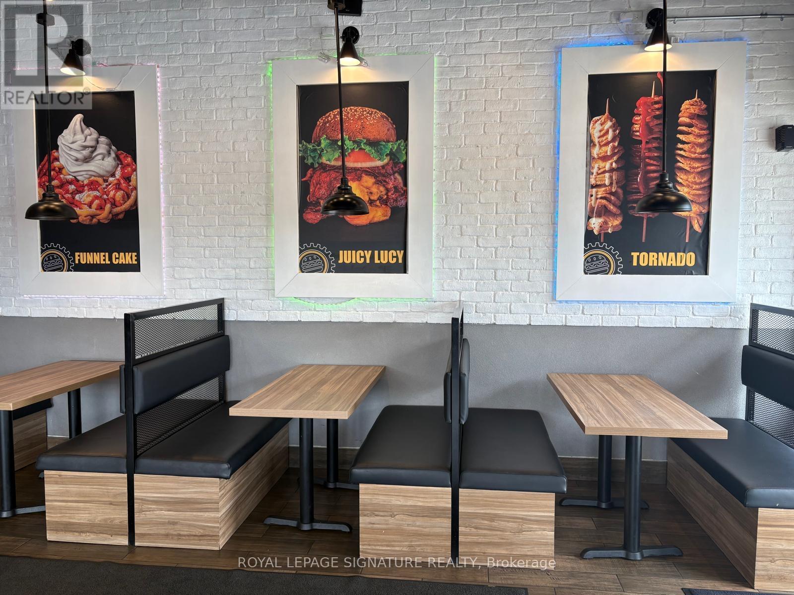 FRANCHISE BUSINESS FOR SALE! Burger Restaurant. Halal Menu! Lots of Equipment! LEASE Until: October 2033 with Two 5-year Renewal Options. Rent: Approx. $3,223.00/Mth. Superb build-out. Lots of foot traffic! Located in Sarnia's premier retail neighborhood across from the Movie Theatre!!!. High density, close to Schools, Highways, Residential, Office, Retail, etc. Lots of parking. May be Suitable for rebranding to non-competing use. (id:4555)