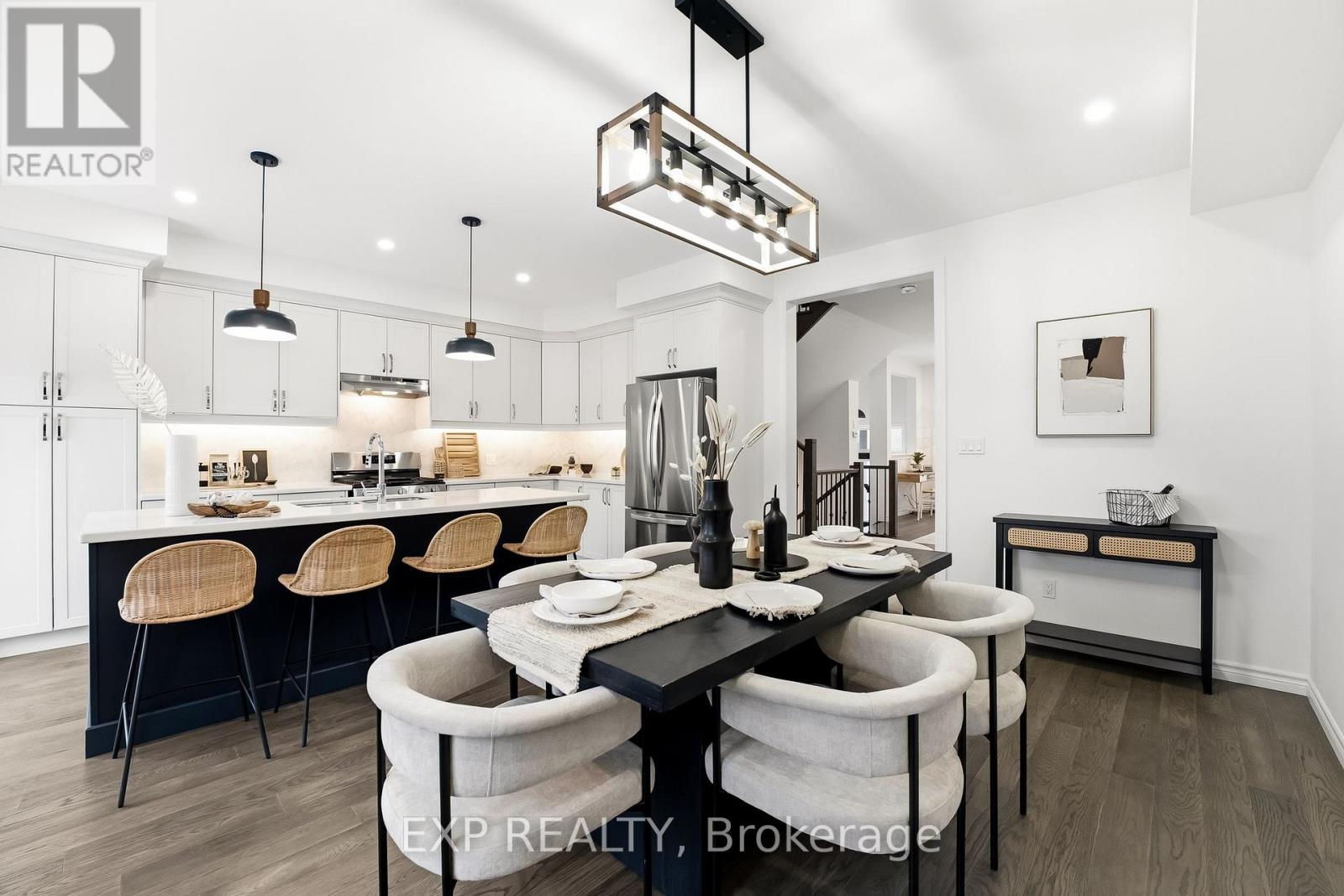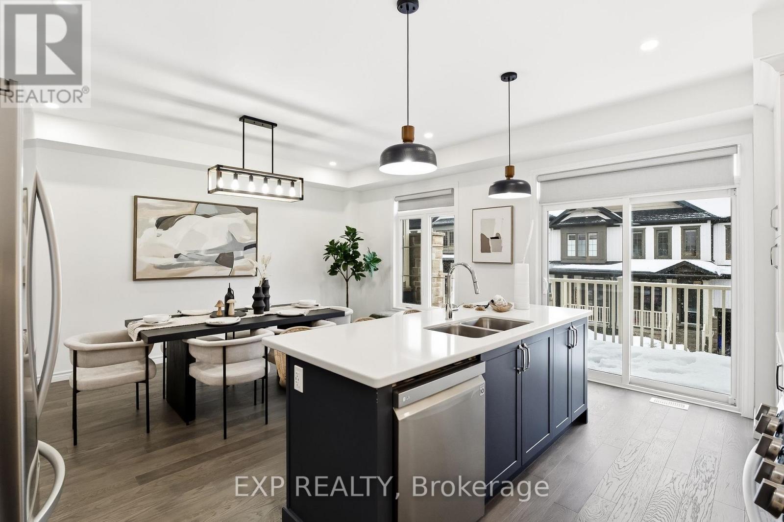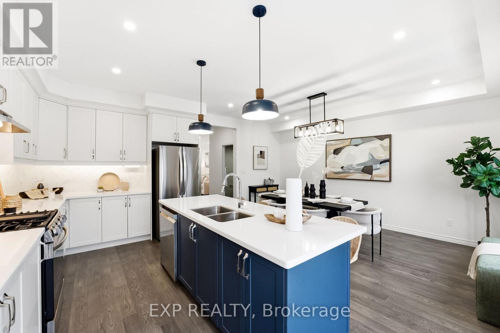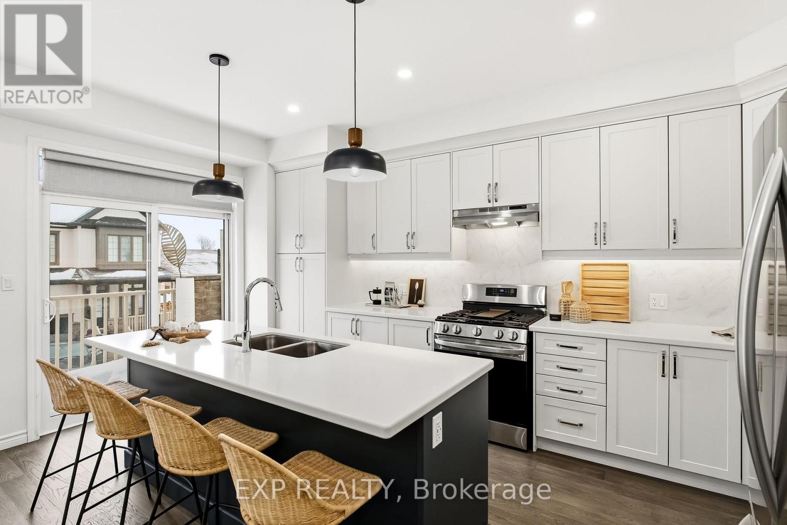 Welcome to 31 Shand Lane, a beautifully finished 2023 townhome just steps from downtown Port Perry and minutes to Lake Scugog. Offering 3 bedrooms, 3 bathrooms and a fully finished basement, this home blends modern design with everyday functionality. The main level features hardwood flooring, a bright open living space and a dedicated dining area that flows seamlessly into the kitchen. At the heart of the home is a stunning quartz island with seating for four, contrasting cabinetry, stainless steel appliances including a gas range, full height cabinetry and a herringbone backsplash. Sliding doors lead to your elevated deck, creating easy indoor outdoor living. Upstairs, the spacious primary retreat offers room for a sitting area, a walk-in closet and a private 4 pc ensuite with double vanity and glass walk-in shower. Two additional bedrooms, a second full 4 pc bath and convenient upper level laundry complete the second floor. The finished basement provides valuable extra living space with vinyl flooring, pot lights and a large above grade window, ideal for a rec room, home gym or office. Outside, enjoy your elevated deck, private rear drive and detached double garage with overhead storage. With modern finishes throughout, thoughtful upgrades and a location that puts shops, restaurants and the waterfront within reach, this home delivers low maintenance living without compromise. (id:4555)