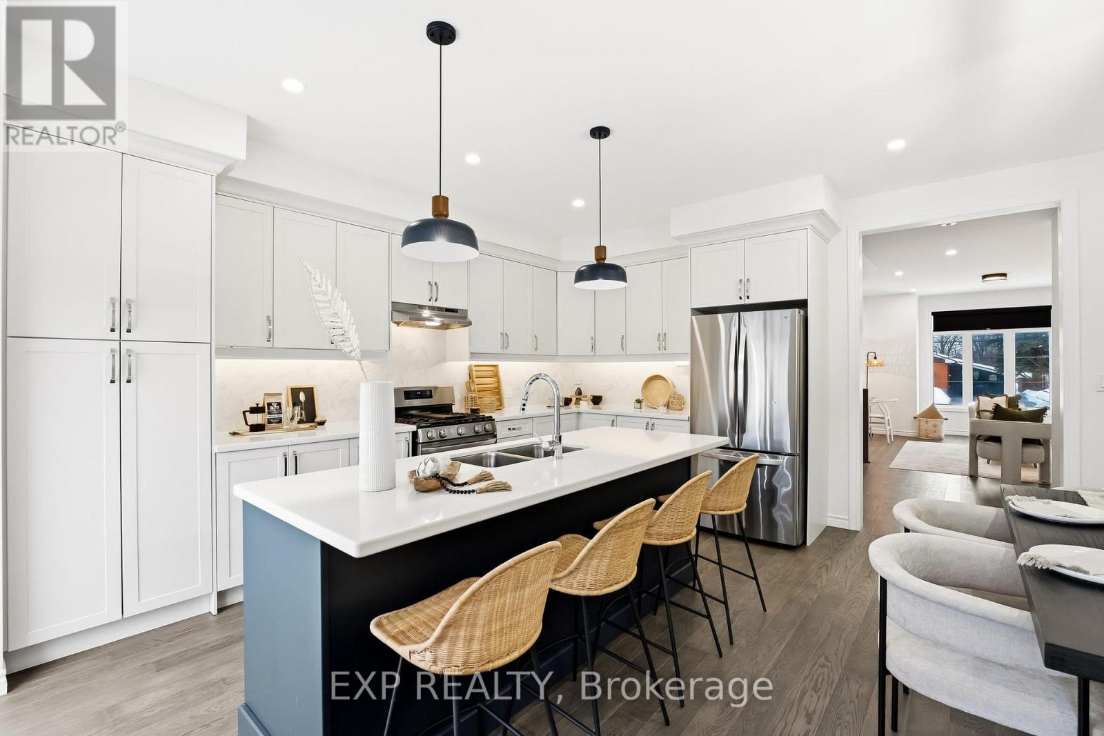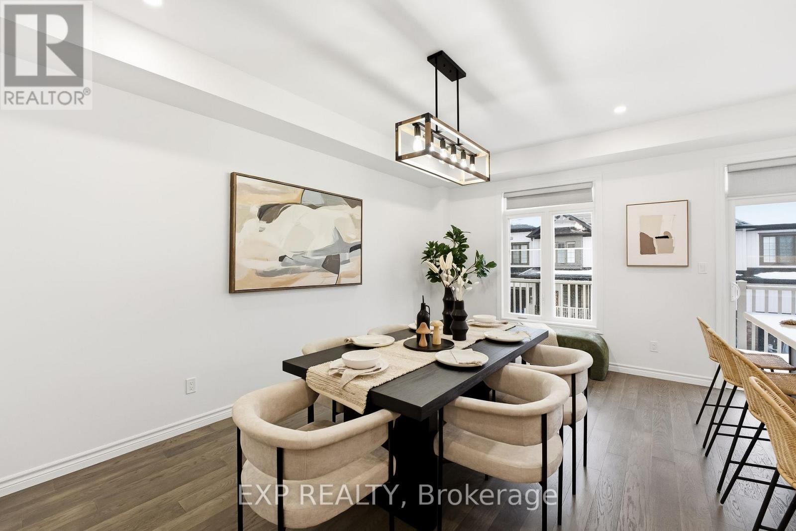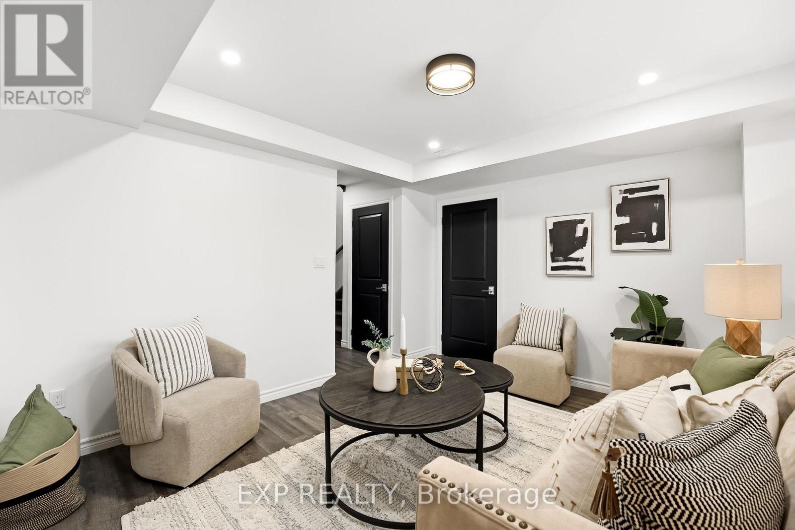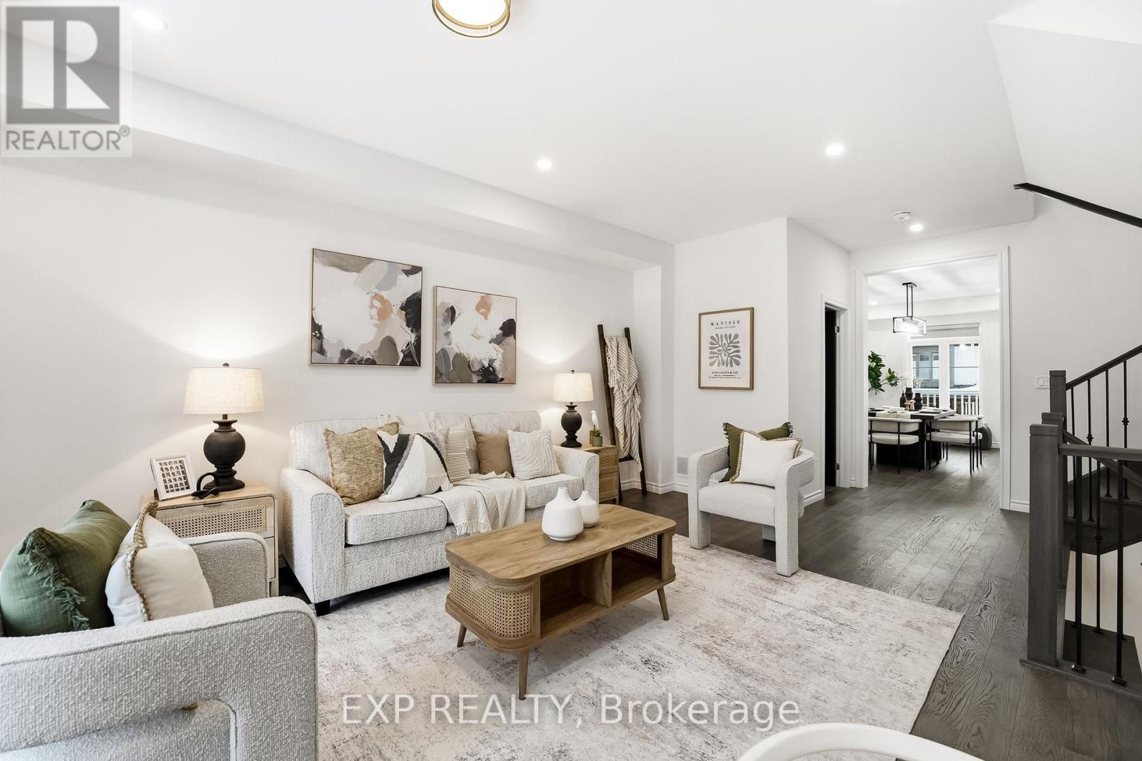 Welcome to 31 Shand Lane, a beautifully finished 2023 townhome just steps from downtown Port Perry and minutes to Lake Scugog. Offering 3 bedrooms, 3 bathrooms and a fully finished basement, this home blends modern design with everyday functionality. The main level features hardwood flooring, a bright open living space and a dedicated dining area that flows seamlessly into the kitchen. At the heart of the home is a stunning quartz island with seating for four, contrasting cabinetry, stainless steel appliances including a gas range, full height cabinetry and a herringbone backsplash. Sliding doors lead to your elevated deck, creating easy indoor outdoor living. Upstairs, the spacious primary retreat offers room for a sitting area, a walk-in closet and a private 4 pc ensuite with double vanity and glass walk-in shower. Two additional bedrooms, a second full 4 pc bath and convenient upper level laundry complete the second floor. The finished basement provides valuable extra living space with vinyl flooring, pot lights and a large above grade window, ideal for a rec room, home gym or office. Outside, enjoy your elevated deck, private rear drive and detached double garage with overhead storage. With modern finishes throughout, thoughtful upgrades and a location that puts shops, restaurants and the waterfront within reach, this home delivers low maintenance living without compromise. (id:4555)