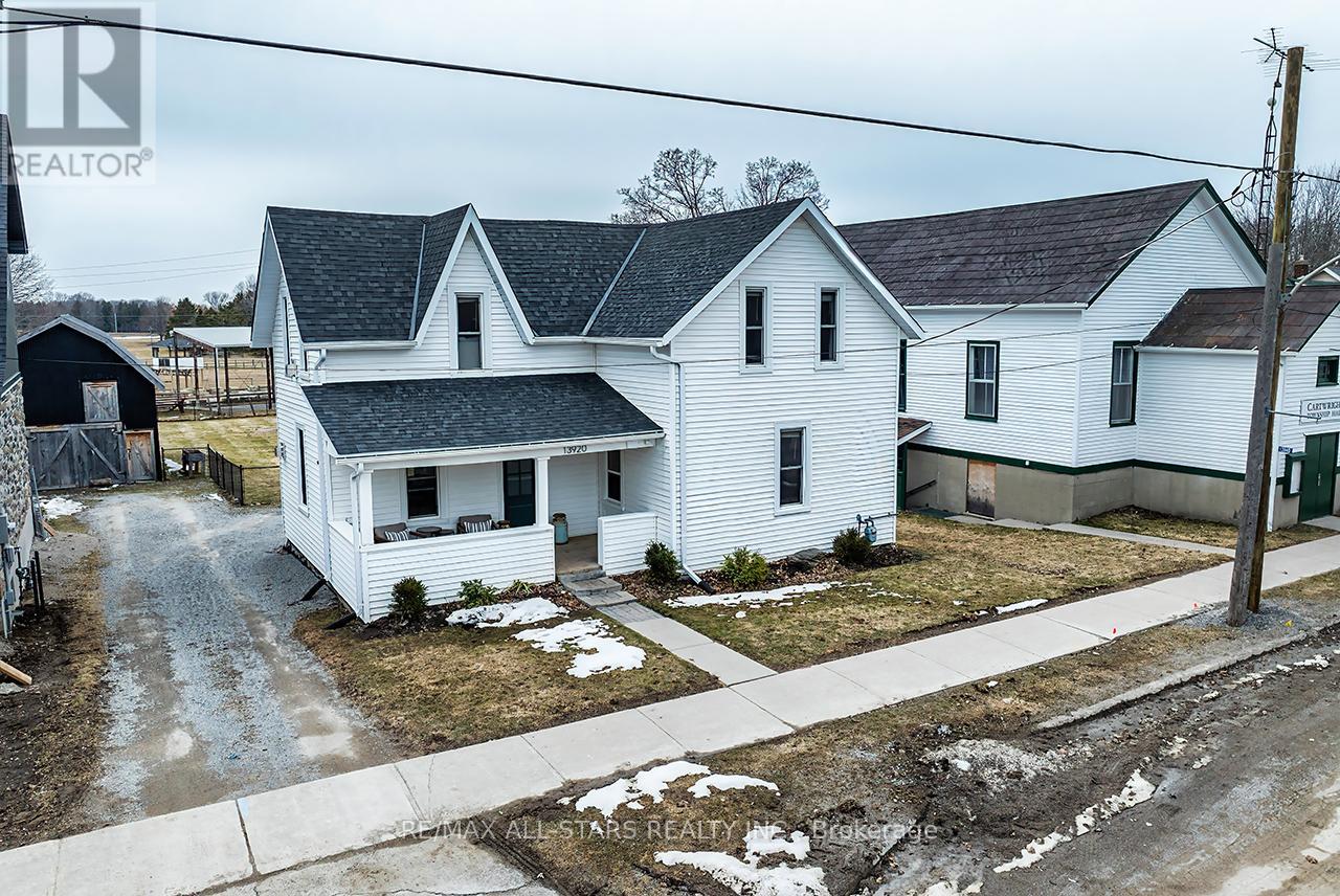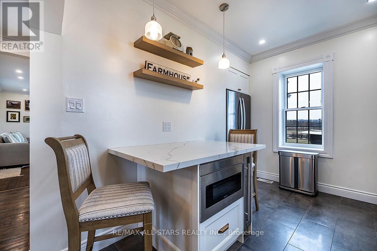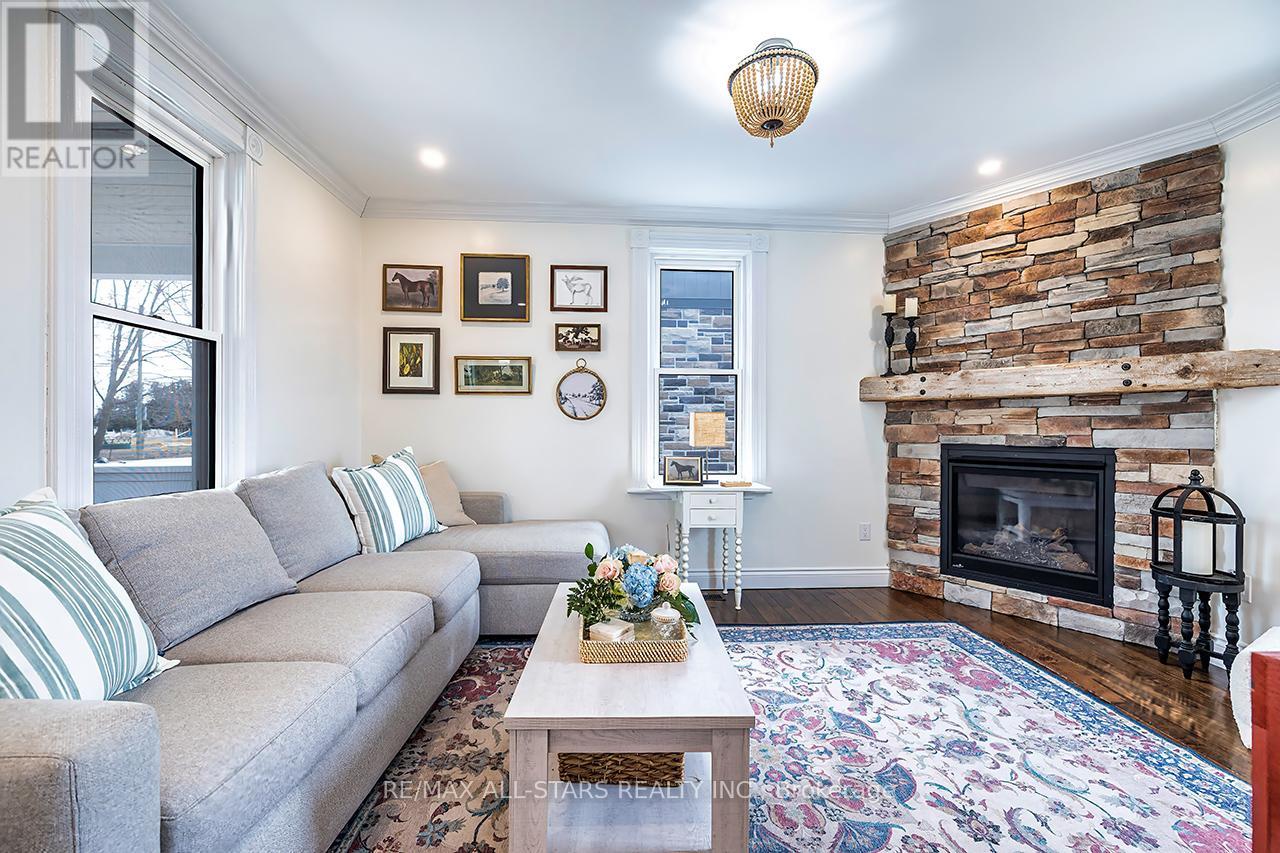 A TRUE MODERN FARMHOUSE! Absolutely Charming country home located in the quaint hamlet of Blackstock. Cozy living room featuring a gas fireplace, perfect for relaxing evenings. The custom kitchen boasts a breakfast bar, granite countertops, fireclay double sink, extended cabinets with built-in coffee bar, so stylish and functional! The dining room conveniently located just off the kitchen is ideal for hosting family gatherings. The generous master bedroom showcases original wide barn wood floors, a custom wall-to-wall built-in wardrobe/closet and its own gas fireplace for added comfort. The main bathroom offers a luxurious freestanding bathtub and separate glass enclosed shower & double vanity! Other Features, Wood Floors, Pot Lights, Crown Moulding and custom trim thru-out! Main Floor Laundry & 2 Pc Powder Rm, Pantry off Kitchen. Lovely Covered Front Porch to enjoy the morning sun. Walkout to deck overlooking huge yard with peaceful countryside views. Huge Metal Barn/garage, 18'x30' , ideal for the hobbyists, great storage loft, and workshop space. The fully fenced, irregular L-shaped yard provides plenty of outdoor space to enjoy! A perfect blend of rural charm and modern convenience! Ideal commuters location, 10+ mins to 407 and beautiful downtown Port Perry!! (id:4555)