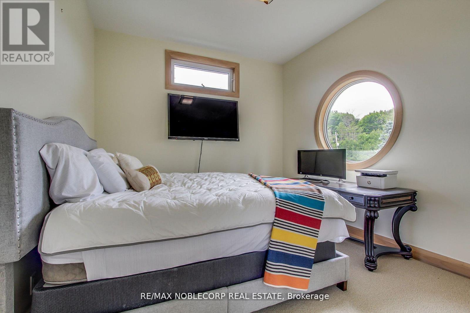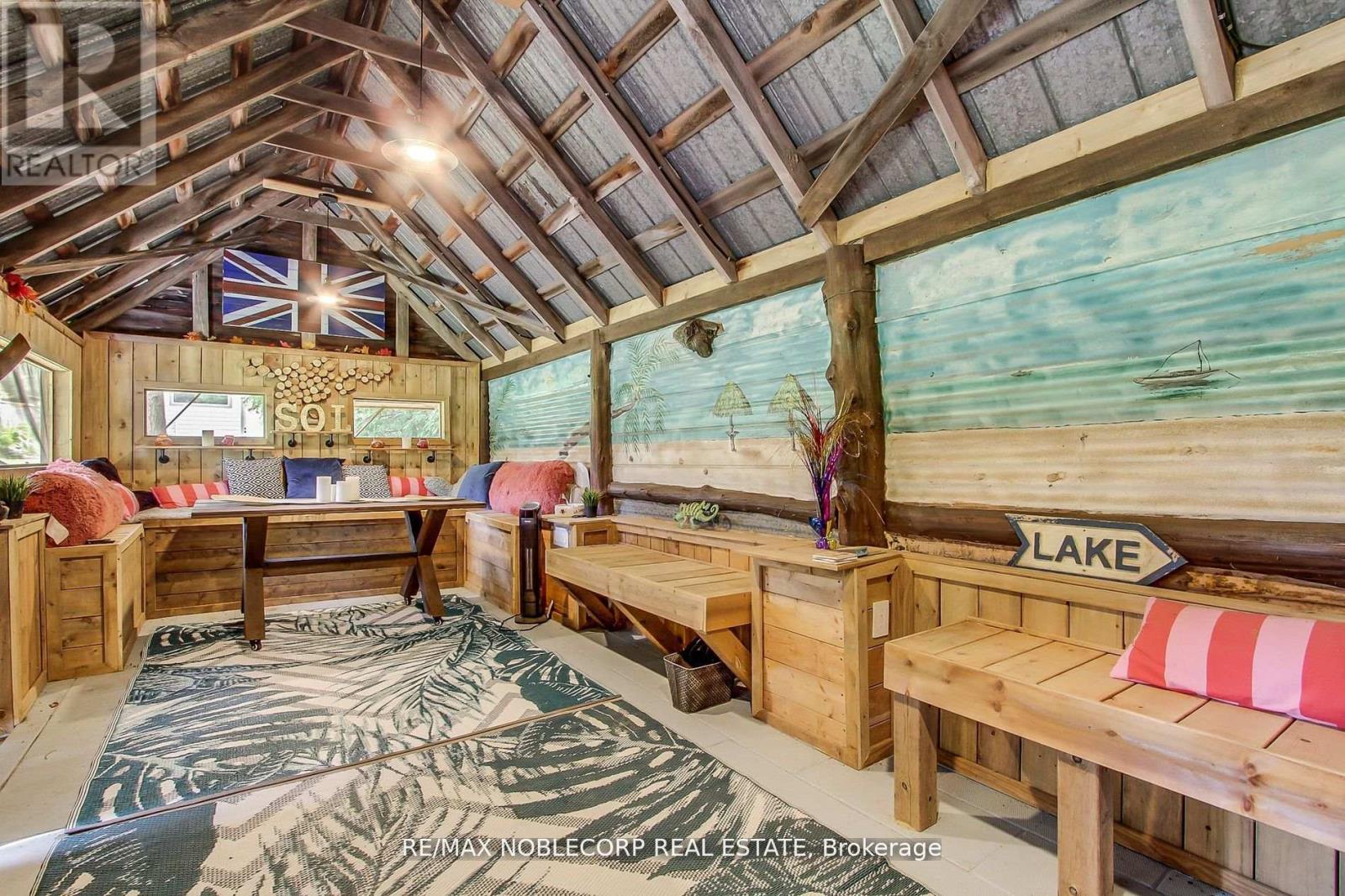 Asian Inspired Chalk Lake Beauty! Over 200K sent in upgrades, including a new fence. With 110 ft of waterfront & sandy beach, a 2-storey freshly painted "cottage," custom-built, 3 Br, 2-story Home w/ Exquisite Views of the Lake. Asian inspired Primary Br 12th century Japanese Castle Doors to the Asian influenced bathrooms, Elf & front entrance, this home is a must-see. Glass Railings and a large, Freshly Painted Deck on the house's waterside ensure No Obstructed Views. Newly Paved Driveway with Space for Ten Vehicles. Top floor: 10 feet high with a Custom Stacked Stone Fireplace in the great room; Main floor Master Br with WI closet and Exquisite Ensuite with Glass Shower and Soaker Tub, 2nd level with 2 Br, Fully Enclosed Tiki Hut, New Dock. Min To 407, Golf, Skiing. Too Many Upgrades to List, this property is an Entertainer's Paradise. Unique home with Meticulous Landscaping and a Lot of Love.. (id:4555)
