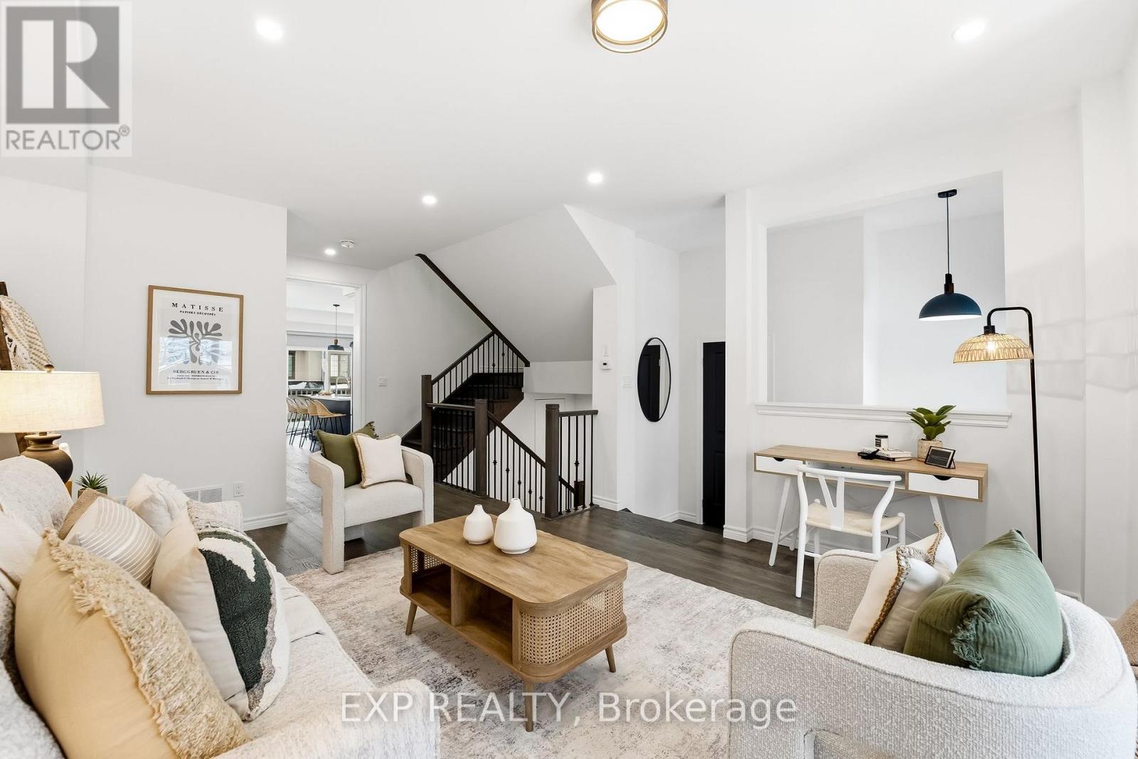 Welcome to 31 Shand Lane, a beautifully finished 2023 townhome just steps from downtown Port Perry and minutes to Lake Scugog. Offering 3 bedrooms, 3 bathrooms and a fully finished basement, this home blends modern design with everyday functionality. The main level features hardwood flooring, a bright open living space and a dedicated dining area that flows seamlessly into the kitchen. At the heart of the home is a stunning quartz island with seating for four, contrasting cabinetry, stainless steel appliances including a gas range, full height cabinetry and a herringbone backsplash. Sliding doors lead to your elevated deck, creating easy indoor outdoor living. Upstairs, the spacious primary retreat offers room for a sitting area, a walk-in closet and a private 4 pc ensuite with double vanity and glass walk-in shower. Two additional bedrooms, a second full 4 pc bath and convenient upper level laundry complete the second floor. The finished basement provides valuable extra living space with vinyl flooring, pot lights and a large above grade window, ideal for a rec room, home gym or office. Outside, enjoy your elevated deck, private rear drive and detached double garage with overhead storage. With modern finishes throughout, thoughtful upgrades and a location that puts shops, restaurants and the waterfront within reach, this home delivers low maintenance living without compromise. (id:4555)
