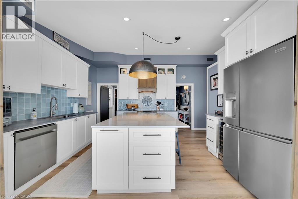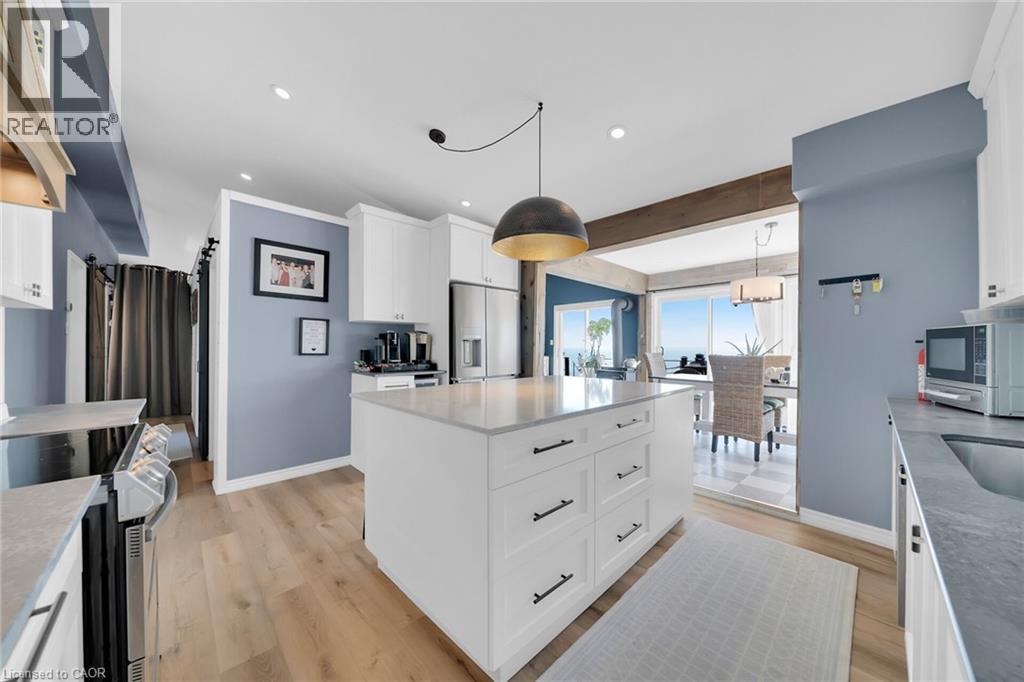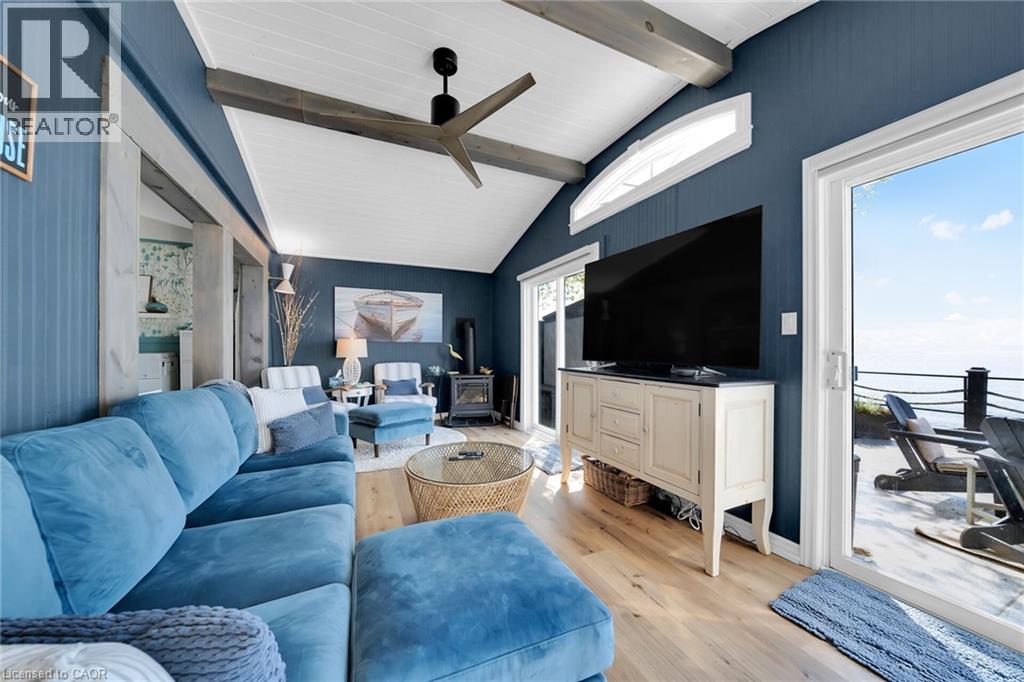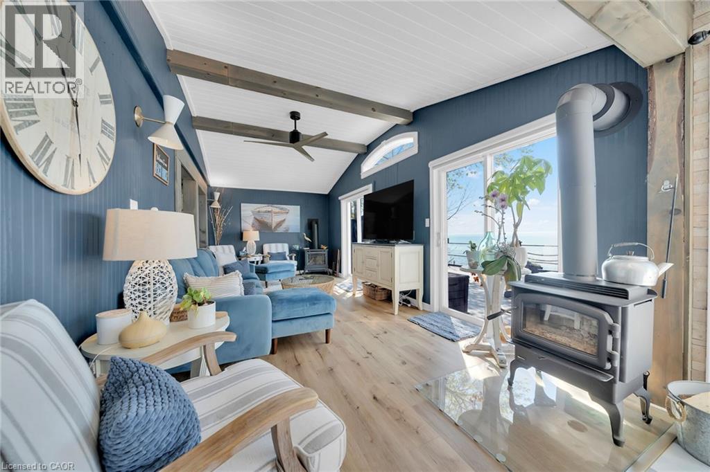 Truly Irreplaceable, Exquisitely presented Waterfront “Lake House” on the sought after South shore of Lake Erie offering a masterfully planned, Beautifully renovated 3 bedroom+1 bathroom Bungalow with attention to detail evident throughout. Rarely do properties Capture & Embrace the true feel of Lakefront Living! Incredible curb appeal with extensive concrete paver stone driveway & walkways. Backyard Oasis complete with stone effect concrete patio, pergola with decked entertaining area & hottub ('24), solid breakwall, lakeside shed, & private stair access to sand bottom beach. The gorgeous interior layout emphasizes the stunning Waterview’s, five sets of sliders, custom kitchen cabinetry featuring quartz countertops, tile backsplash, bright dining area (fits 10+), vaulted great room with both corner gas fireplace & woodstove, 3 bedrooms, additional bedroom / den area, welcoming foyer, upgraded 3 pc bathroom, & desired MF laundry. Bonus attached garage/utility room ideal for workshop & storage with auto garage door. Upgrades include n/gas furnace/AC – 2025, premium flooring, modern fixtures, windows, maibec exterior siding, fiber optic cable / internet & much more! Easy commute to Hamilton, 403, QEW, & GTA. Close to Cayuga. Ideal Year round home, cottage or Investment. Must view to appreciate the attention to detail & upgrades that this home has! You too can experience affordable Lake Erie Waterfront Living. (id:4555)