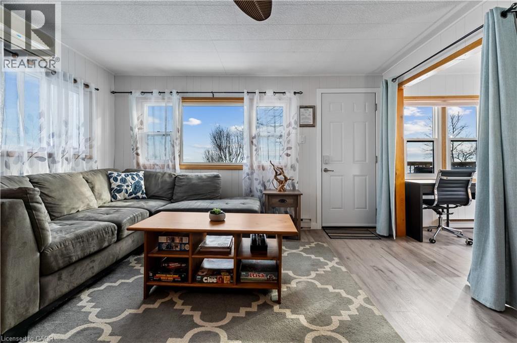 Welcome Home to Lake Erie's affordably priced, 3-season cottage, featuring a side door leading to a freshened galley kitchen, open concept living room/dining room, 3 bedrooms, a 3 pc-bath (2024), in-suite laundry (washer/dryer 2024), updated vinyl flooring (2024), expanded front porch (2024). A Lake facing sunroom/living room to watch the beautiful morning sunrise or picturesque sunset...OR choose to admire it from your own, private lake side deck with private beach access and break wall to enjoy quiet moments by the waters edge or your favorite sporting adventures! The large fenced in rear yard is perfect for children/pets to enjoy around the fire pit, and also 3 outdoor sheds for storing lake toys, gardening supplies or perhaps a workshop? PLUS, new front door (2024), metal roof (2018), efficient ductless mini-split heat/cool HVAC system, 2000 g cistern, 2000 septic holding tank. Quick @ 1 hr commute from Hamilton's #403, QEW/Linc and close to amenities from Dunnville, Cayuga to Port Dover. Everything you need, all in one place! Your paradise awaits! (id:4555)