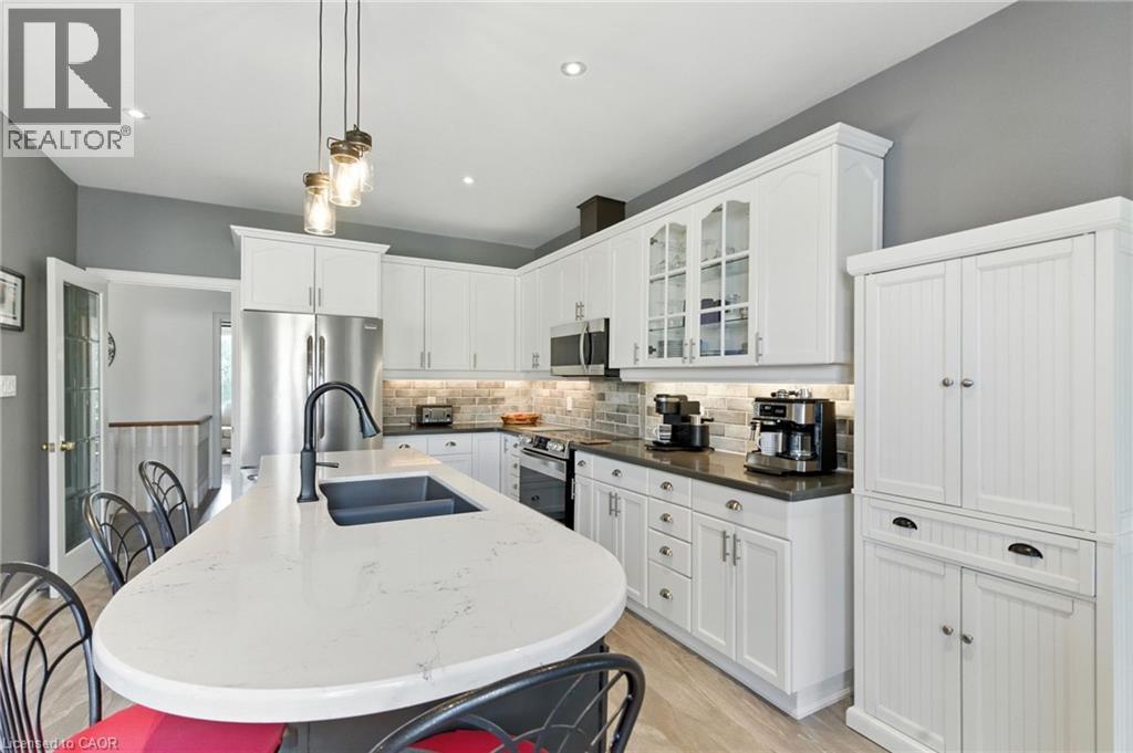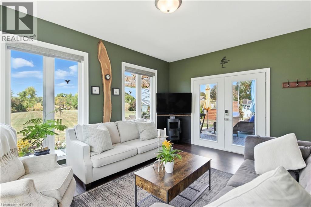 Welcome to your peaceful retreat near Lake Erie. Nestled on just over an acre of beautifully landscaped property, this stunning 2,301 square foot bungalow offers the perfect blend of space, style, and serenity all within walking distance to Lake Erie and the beach. Step inside to a grand foyer adorned with crown moulding which gracefully carries through the hallway and into a sun-drenched living room featuring hardwood flooring, elegant wainscotting and a large picture window that fills the space with natural light. The white kitchen is both timeless and functional, showcasing quartz countertops, a large island and an open concept flow into the dining room complete with a tray ceiling and wall-to-wall windows and French doors overlooking the lush backyard. Need more space to unwind? The cozy family room also overlooks the backyard and leads directly to the deck — perfect for outdoor entertaining. You’ll find 3 generous bedrooms on the main floor including a spacious primary suite with a walk-in closet and a luxuriously renovated ensuite featuring a double vanity. Downstairs, the fully finished basement is a true bonus with 2 more bedrooms, a flex space ideal for a craft room or workshop, another flex space (bedroom? Office?) and a massive recreation room with wall-to-wall closets. A 3-piece bathroom and abundant storage make this lower level as functional as it is expansive. Step outside to a private backyard oasis featuring a deck, patio, above-ground pool and 2 sheds all backing onto a peaceful farmer’s field. Enjoy serene country vibes with lake views from the front yard and feel secure year-round with a backup generator included. Plus, enjoy the convenience of a double car garage with inside entry. This is more than a home — it’s a lifestyle. One that offers quiet, space and comfort just moments from the beach, nature and community charm of Lake Erie living. Don't miss your chance to make this incredible property your own. Don’t be TOO LATE*! *REG TM. RSA. (id:4555)