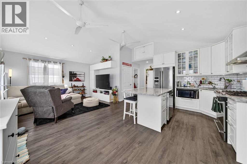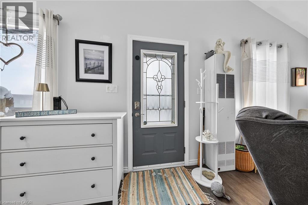 The 3 season Lake Erie lifestyle is calling and what better way to enjoy 9 months out of the year than at your very own, tastefully designed, 2 bedroom and 1 bathroom bungalow! Located on a municipal road in Featherstone Point. Enjoy a sense of community, affordable living, and private, white sandy beach access! 2009 built dwelling offering 630 sq.ft. of living space, bright custom kitchen with island and open concept layout, granite countertops, under cabinet lighting, stainless steel appliances, tile backsplash, built in coffee bar, vaulted ceilings with pot lights and ceiling fans, luxury vinyl flooring, and TV wall unit! The elegant 4 piece bathroom is a show stopper, boasting moody tile flooring and a deep soaker tub with tile surround + glass door. Sizable bedrooms with room or dressers and wardrobes. The airy and thoughtful layout invites the sun and lake Erie breezes inside! Peek-a-boo views of the Lake from the bedrooms. Soak in the most beautiful sunrises on your front porch or spend some quality time with the furry friend on the fully enclosed wrap around deck. Occupy the residence from April 1st-December 31st. Leased land fees are paid up until June. Wall furnace was maintained in 2025. Newly insulated crawl space. Water pump(2025), Water heater(2022), propane tanks (2025). A portable generator can be plugged into first shed to power the house in the event of a power outage. Please see Summer photos to appreciate the full beauty that this property has to offer! (id:4555)