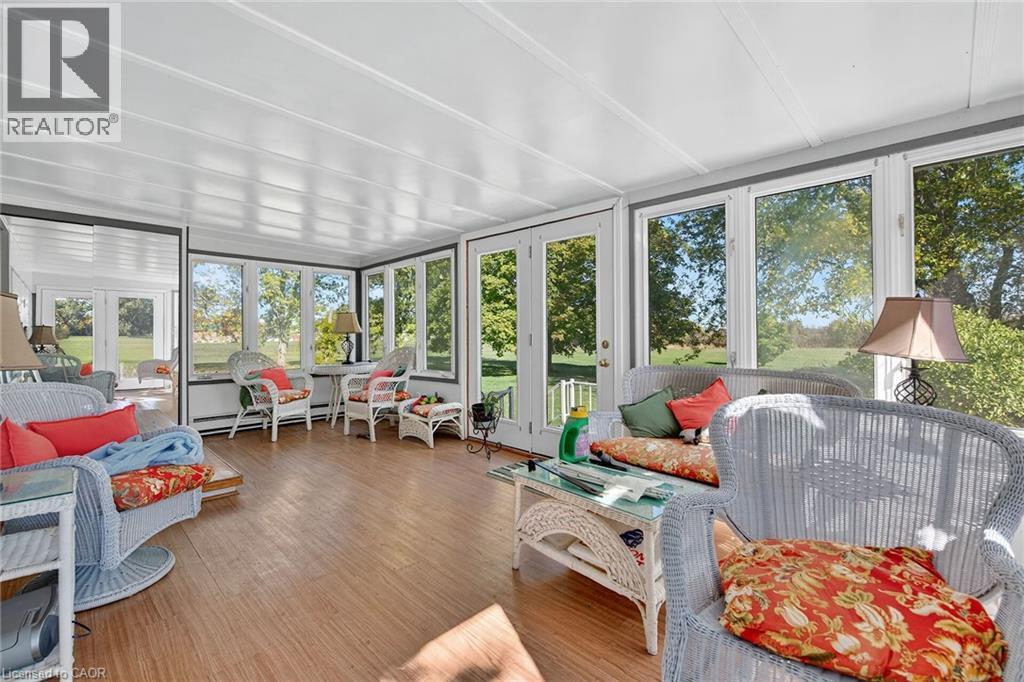 Lovingly maintained, Tastefully updated 2 bedroom, 1 bathroom Bungalow situated perfectly on desired 16.41 acre lot with a mix of manicured lawn & workable land all on quiet Sweets Corners Road. Great curb appeal with brick & complimenting sided exterior, back deck, oversized paved driveway, metal roof, attached garage, & bonus detached garage – perfect for hobbyist, workshop, or extra storage. The flowing interior layout features large principal rooms highlighted by updated eat in kitchen with tile flooring, formal dining area, large front living, back sunroom overlooking peaceful country views, 2 spacious bedrooms, 4 pc bathroom, & welcoming foyer. The finished basement includes rec room with gas fireplace set in brick hearth, laundry room, & ample storage. Conveniently located minutes to Lake Erie, Selkirk, Cayuga, & Dunnville. Relaxing commute to Hamilton, Niagara, & 403. Ideal for the growing family, those looking for main floor living, or the perfect hobby farm with room to design & expand. Rarely do properties with this acreage, size, & location come available. Experience the Haldimand Country Lifestyle. (id:4555)