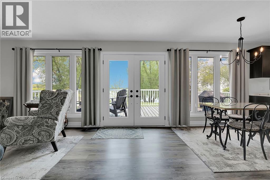 Lake Erie Living at it’s finest! This year-round lake-house/cottage offers nearly 2000 sqft of living space with 3 bedrooms and a finished lower level. It is located on a premium ½ acre waterfront lot on Hoover’s Point Lane, featuring panoramic views and a private beach with about 100 ft of sandy shoreline extending into the clear waters of Lake Erie. The house sits on high ground with a gradual slope to the beach, no break-wall needed. The property includes a paved driveway for 4 vehicles and an RV/boat, interlock brick walkways, privacy fenced yard, mature trees, manicured lawn, vibrant gardens, and extraordinary landscape. There is also an attached garage with inside entry and a detached boathouse/workshop. Inside, the custom kitchen has attractive cabinetry, elegant quartz countertops, and hi-end stainless steel appliances. The open concept dining and living room offer large windows with lake views and garden doors leading to a composite deck overlooking the lake offering stunning sunrises as you enjoy your morning coffee. The main floor includes a foyer with laundry and a dishwasher, a designer 4pc bathroom, primary and guest bedrooms, both with custom closets. The finished basement has a 3rd bedroom/home office, family room with gas fireplace, storage room, and utility room with shelving and plenty of storage space. Additional features include a metal roof, updated windows and exterior doors, luxury vinyl plank flooring, 200-amp hydro, central-air, hi- efficiency furnace, electronic air cleaner, full Aerobic septic system, two 5000-gallon cisterns, and Starlink internet. Must view to appreciate the detail, quality finishes, & overall “feel” of this lovingly maintained home. Located minutes to Selkirk, Fisherville, and Port Dover, with a public boat launch about 1 km away. Convenient commutes to Dunnville or Cayuga, and 1-2hr drives from Hamilton, Niagara, or Toronto. Ideal for a home, cottage, or for those looking to retire in style! (id:4555)