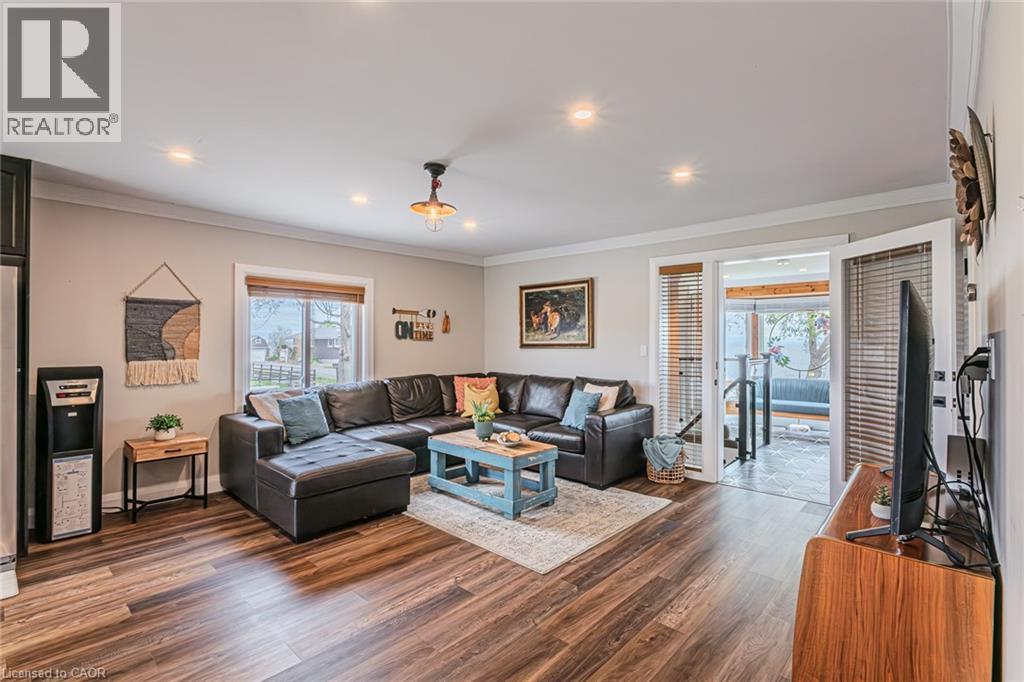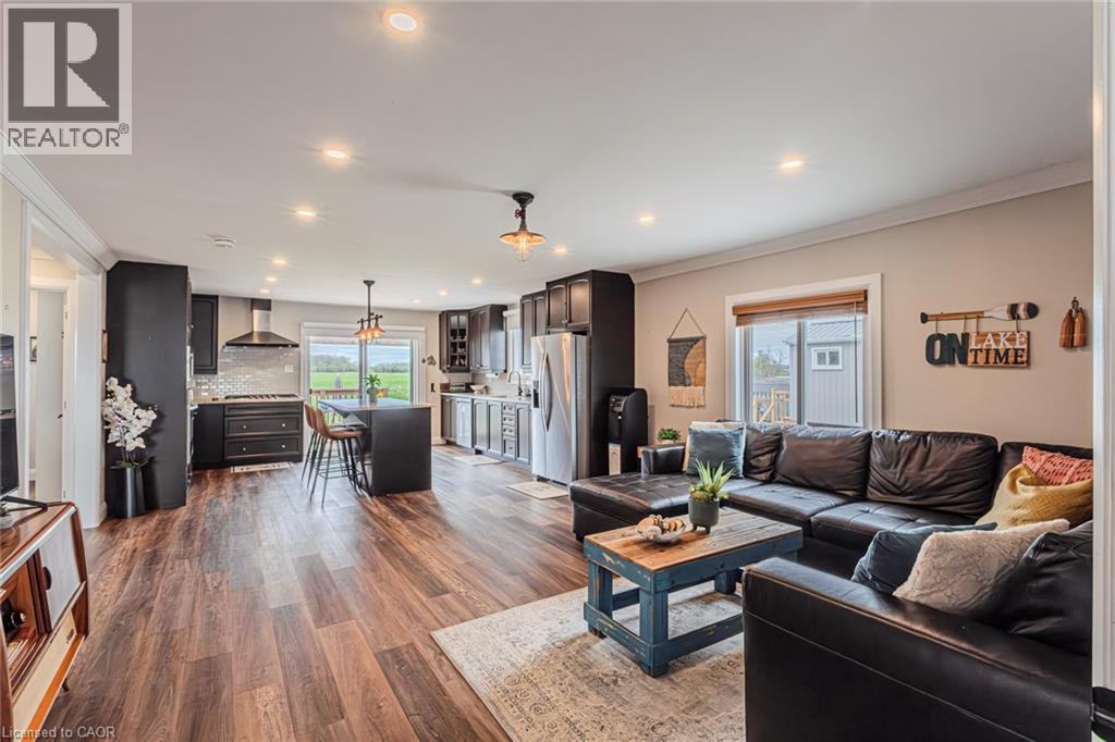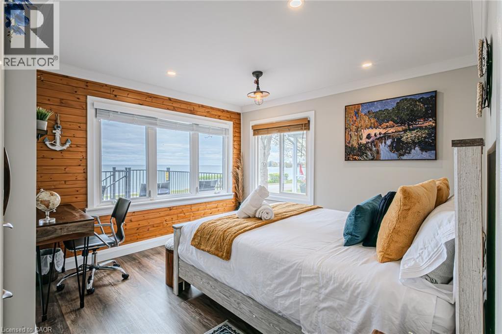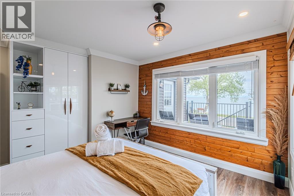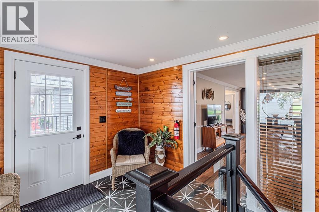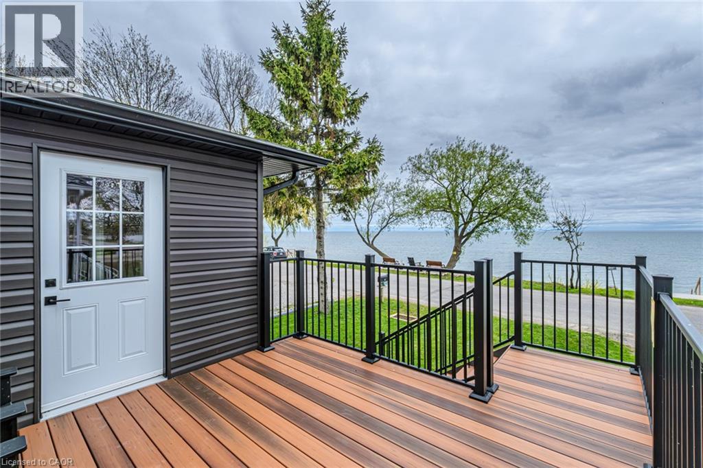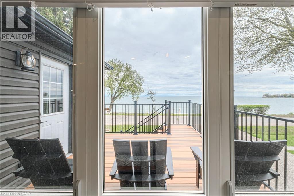 Welcome to lakeside living at it's finest in Haldimand County, where stunning Lake Erie views and modern upgrades create the perfect retreat. This extensively renovated bungalow offers 2 bedrooms and 1.5 bathrooms across 1,007 sq ft of bright, open-concept living space, and comes fully furnished inside and out, making this property truly turn-key! The beautifully designed eat-in kitchen features granite countertops, a large island, and built-in appliances—perfect for entertaining and everyday living. A highlight of the home is the lake facing sunroom, providing the ideal space to relax year-round and take in breathtaking views. The primary bedroom also features serene lake views, offering a peaceful escape to start and end your day. The spa-like main bathroom includes a double vanity and elegant finishes, while the custom 2-piece bath adds convenience for guests. Step outside to the welcoming front porch with composite decking (2023), perfect for enjoying your morning coffee by the water. The private backyard is a true oasis, complete with a patio, hot tub, outdoor shower, and good sized yard—designed for both relaxation and entertaining. Additional features include: Parking for up to 8 vehicles. Exterior vinyl siding (2022) New front porch (2023) Back deck (2023) New flooring throughout including sub floors (2023) Two completely new bathrooms (2023) New plumbing (2023) Air conditioning (2022) Stackable washer/dryer (2025) Unfinished basement with 9 ft ceilings and large windows offering endless potential. The complete list of renovations are too numerous to mention here, see supplements for more details. Located close to local amenities, marinas, beaches, fishing, and boating, this property offers the ultimate Lake Erie lifestyle. Whether you're searching for a full-time residence, turnkey investment, or weekend escape, this fully furnished lakeside bungalow is a rare opportunity you won’t want to miss. (id:4555)
