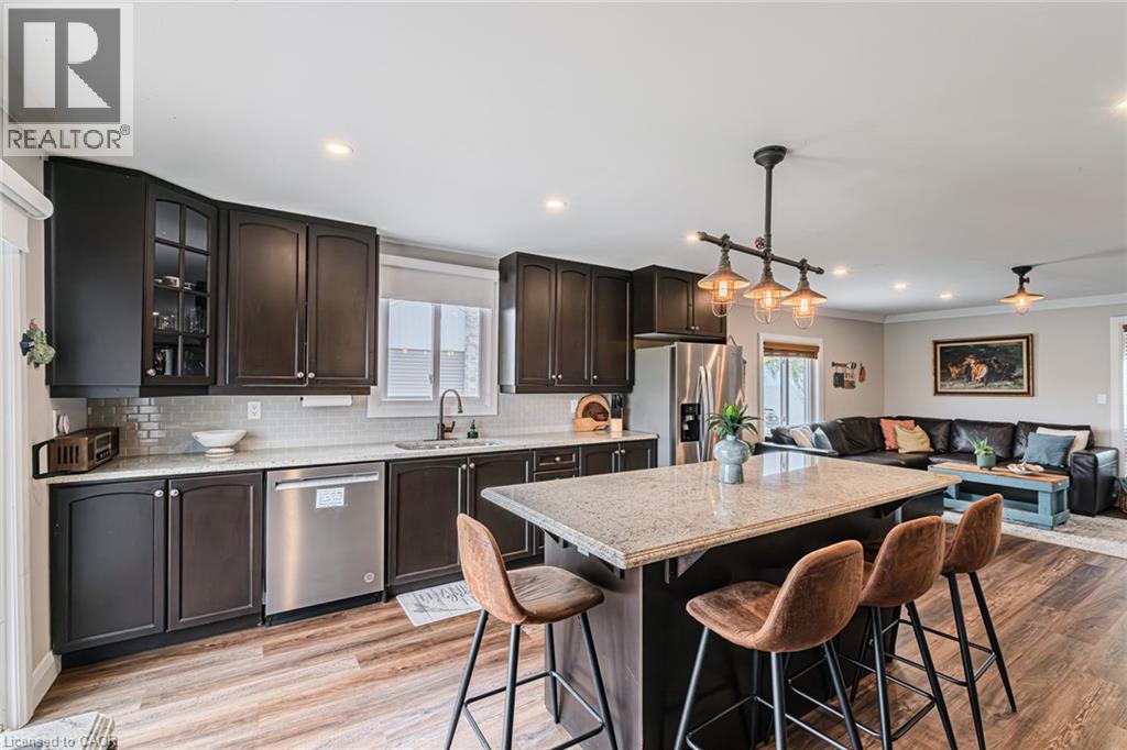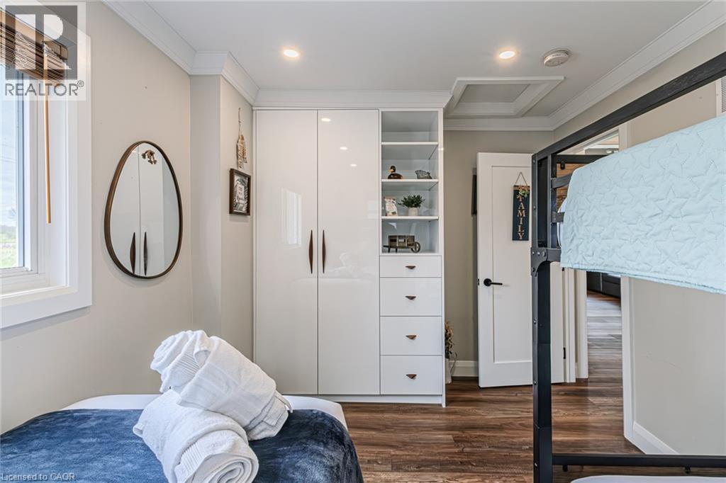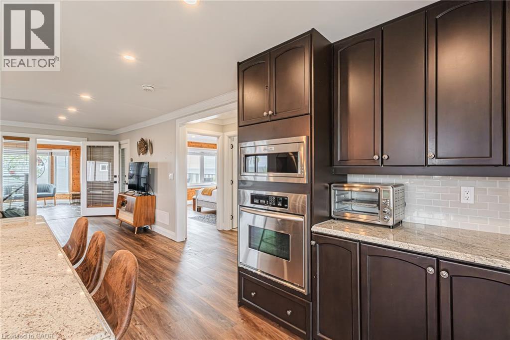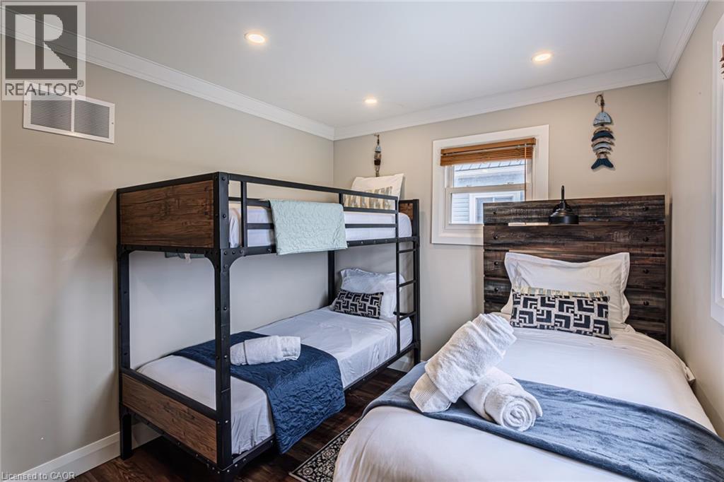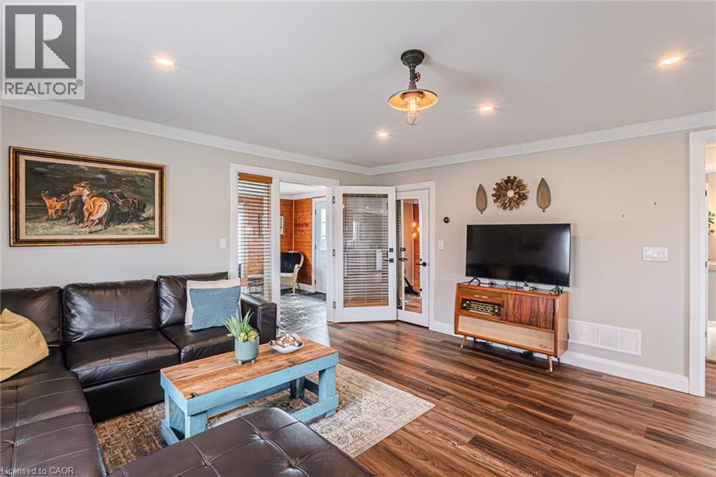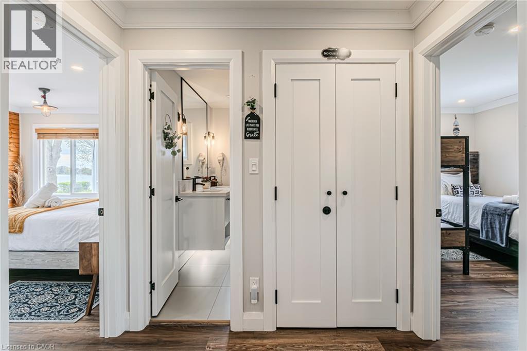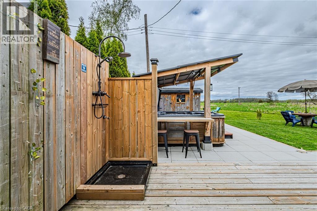 Welcome to lakeside living at it's finest in Haldimand County, where stunning Lake Erie views and modern upgrades create the perfect retreat. This extensively renovated bungalow offers 2 bedrooms and 1.5 bathrooms across 1,007 sq ft of bright, open-concept living space, and comes fully furnished inside and out, making this property truly turn-key! The beautifully designed eat-in kitchen features granite countertops, a large island, and built-in appliances—perfect for entertaining and everyday living. A highlight of the home is the lake facing sunroom, providing the ideal space to relax year-round and take in breathtaking views. The primary bedroom also features serene lake views, offering a peaceful escape to start and end your day. The spa-like main bathroom includes a double vanity and elegant finishes, while the custom 2-piece bath adds convenience for guests. Step outside to the welcoming front porch with composite decking (2023), perfect for enjoying your morning coffee by the water. The private backyard is a true oasis, complete with a patio, hot tub, outdoor shower, and good sized yard—designed for both relaxation and entertaining. Additional features include: Parking for up to 8 vehicles. Exterior vinyl siding (2022) New front porch (2023) Back deck (2023) New flooring throughout including sub floors (2023) Two completely new bathrooms (2023) New plumbing (2023) Air conditioning (2022) Stackable washer/dryer (2025) Unfinished basement with 9 ft ceilings and large windows offering endless potential. The complete list of renovations are too numerous to mention here, see supplements for more details. Located close to local amenities, marinas, beaches, fishing, and boating, this property offers the ultimate Lake Erie lifestyle. Whether you're searching for a full-time residence, turnkey investment, or weekend escape, this fully furnished lakeside bungalow is a rare opportunity you won’t want to miss. (id:4555)