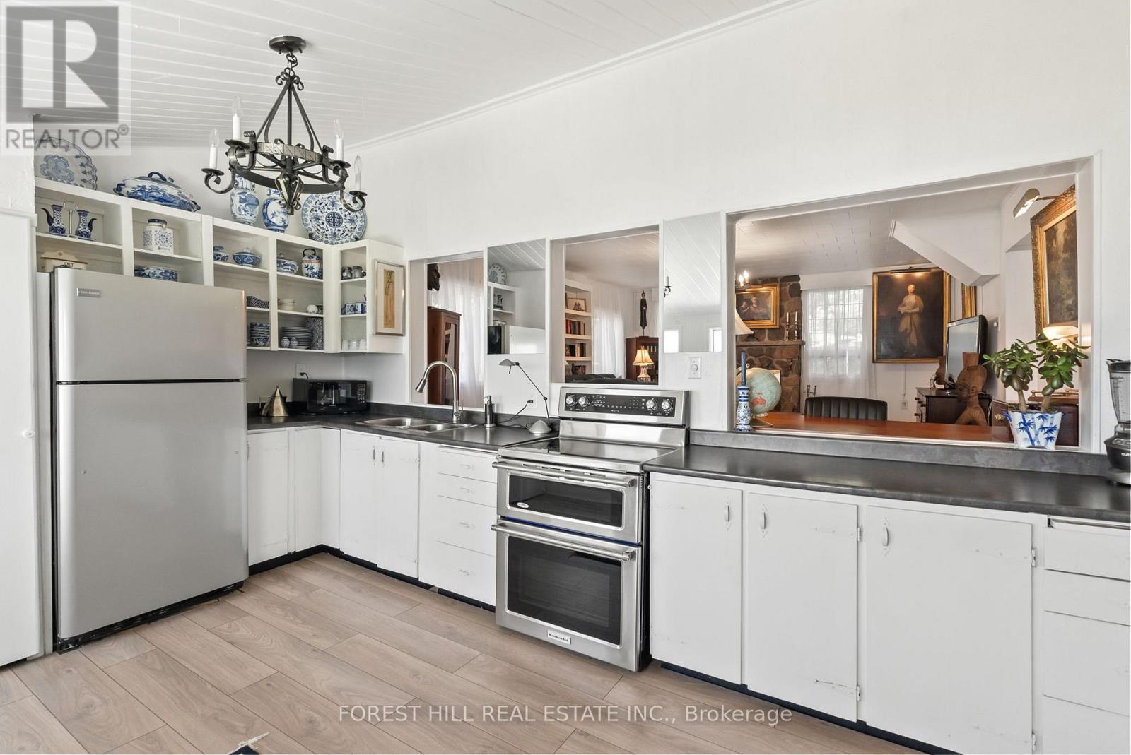 Extraordinary European villa interior Architecture that is full of charm! This 3 bed, 2 bath lake home is light filled and is located on a Prime, sandy bottom, swimmable lot on Chemong Lake. Walk into the home and into the Great room, look out the garden doors that walks out to a balcony with gorgeous water views. Down the stairs awaits your spacious living room with a wood burning river stone fireplace, a formal dining room with oversized windows that encompasses your stunning views. Walk into your French Countryside inspired kitchen with modern appliances and loads of cupboard space, also with waterfront views that o/l the Living room. Upstairs is a spacious primary with plenty of closet space that has tall trees and a water view. The 2nd and 3rd bedrooms are also spacious. A 2 piece bathroom was recently installed for convenience. Walk out to the sunroom and plenty of deck space for enjoying the views and wild life that floats by & the Incredible Sunsets. There is a great private dock that awaits you with water toys, a terrific view all the way down to the causeway that gets lit up at night. The water provides for excellent fishing in the summer or winter. Enjoy a fully fenced backyard, ideal for pets or young children. There is a bunkie with electricity for extra guests or a studio/office nestled under the canopies of mature trees with crystal clear, pristine waterfront views. This home is Conveniently located in the charming hamlet of Bridgenorth, where you can walk to one of the town's best restaurants, Chemong Lodge where world class cuisine & live music on the patio take place on the regular, like " Polar fest and Rock on the dock". You're close to parks, grocery stores, butchers, and an array of retail stores and coffee shops. Located on a dead end street with little traffic. A cottage, lakehouse feel, while close to so many conveniences. Only a 10 minute drive to Peterborough & 1 1/2 Hours to Toronto. A must see and for the most discerning buyer. (id:4555)
