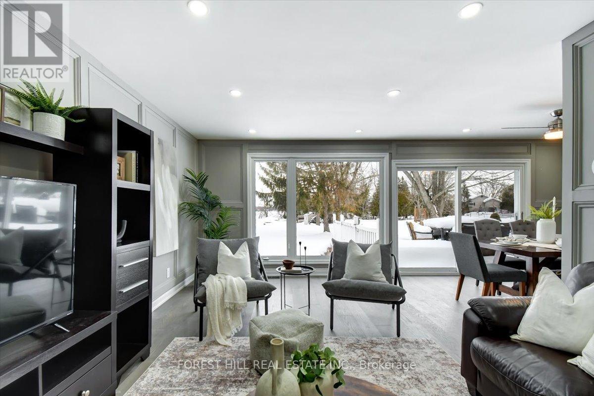 This Stunning and light filled home has many recent upgrades and designer finishes through-out. Walk into the impressive grand foyer. Luxurious hardwood floors and wainscotting warms the open concept Living and Dining Rooms that have spectacular views of the Lake, Pool & treed lot as your back drop. The Chef inspired Kitchen Features a Waterfall feature with stone counters and custom cabinetry with eat-in kitchen and built-in pantry & desk and an impressive main floor Laundry Room/mudroom that you can access from the double car garage. Currently used as a Primary Bedroom with Ensuite, this main floor bonus room with fireplace can be a Den, Library or In-law Suite, offering many options. This open concept main floor is framed with picturesque windows that showcase the breathtaking views of the lake, creating a perfect backdrop for everyday living. Entertain on the back deck, perfect for hosting outdoor dinners or lounge around the inviting above ground built in pool. The Spacious back yard is designed for fun and has a fire pit and mature trees that provides a canopy. Walk upstairs to a generous bedroom with ensuite bathroom featuring a glass shower & double vanity sinks with lit mirrors. Two additional spacious bedrooms are on this level that share a full 4-piece bathroom with tiled shower/bath and luxury finishes. Downstairs the bright walkout basement has a comfortable, yet spacious rec. room that has room for a pool table, games room or theatre room and walks out to the beautifully landscaped backyard with interlocking brick. This spectacular home has great curb appeal and allot to offer incl. 386 Km of water access on the Trent Severn. Nearby shopping, restaurants, boating and water fun. Close to the Ennismore general store & Gas, Groceries, Bridgenorth, Lakefield and Peterborough Amenities and is just 1 1/2 hours from Toronto. Endless possibilities for this 3+2 Bedroom home or 5 Bedroom investment. A must see for a family home or a great investment potential. (id:4555)