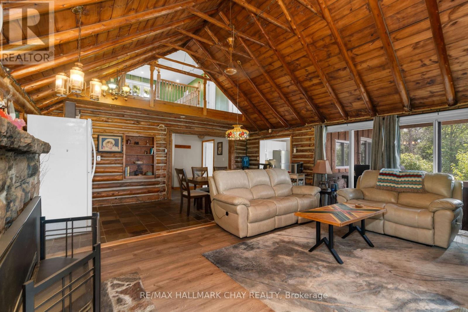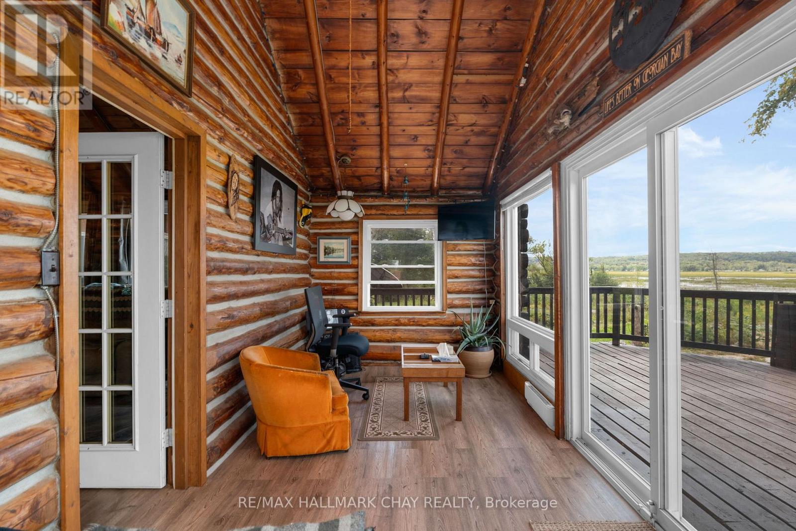 Nature enthusiasts paradise! This stunning year round log home is situated on over 8 acres of land with approximately 500FT of waterfront and a spectacular view across Matchedash Bay. Offering privacy, this property also fronts onto 300 acres of Crown Land. The primary bedroom is located on the main floor and offers a walk in closet and a walkout to a covered front deck area. The kitchen comes with appliances and a walkout to side deck area. Open concept great room and dining area. Back sunroom with waterfront view. 3 additional bedrooms on upper level, great space for guests or large family. The boathouse also offers extra finished living sleeping accommodations with bathroom and kitchenette, lower level is storage. Detached oversized single garage. Full backup generator, Uv, tankless hotwater. Fishing, hunting, hiking, boating out your door. (id:4555)