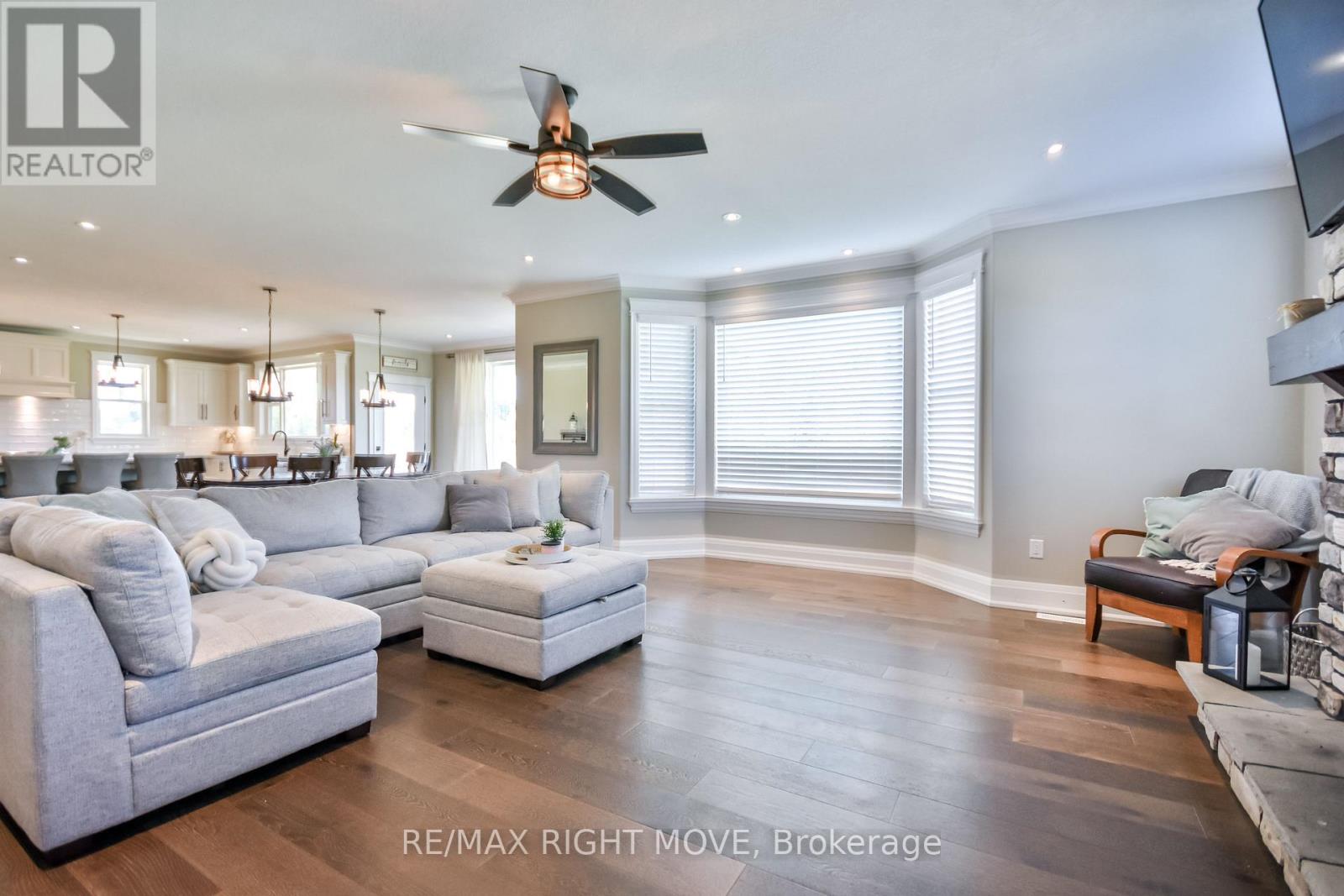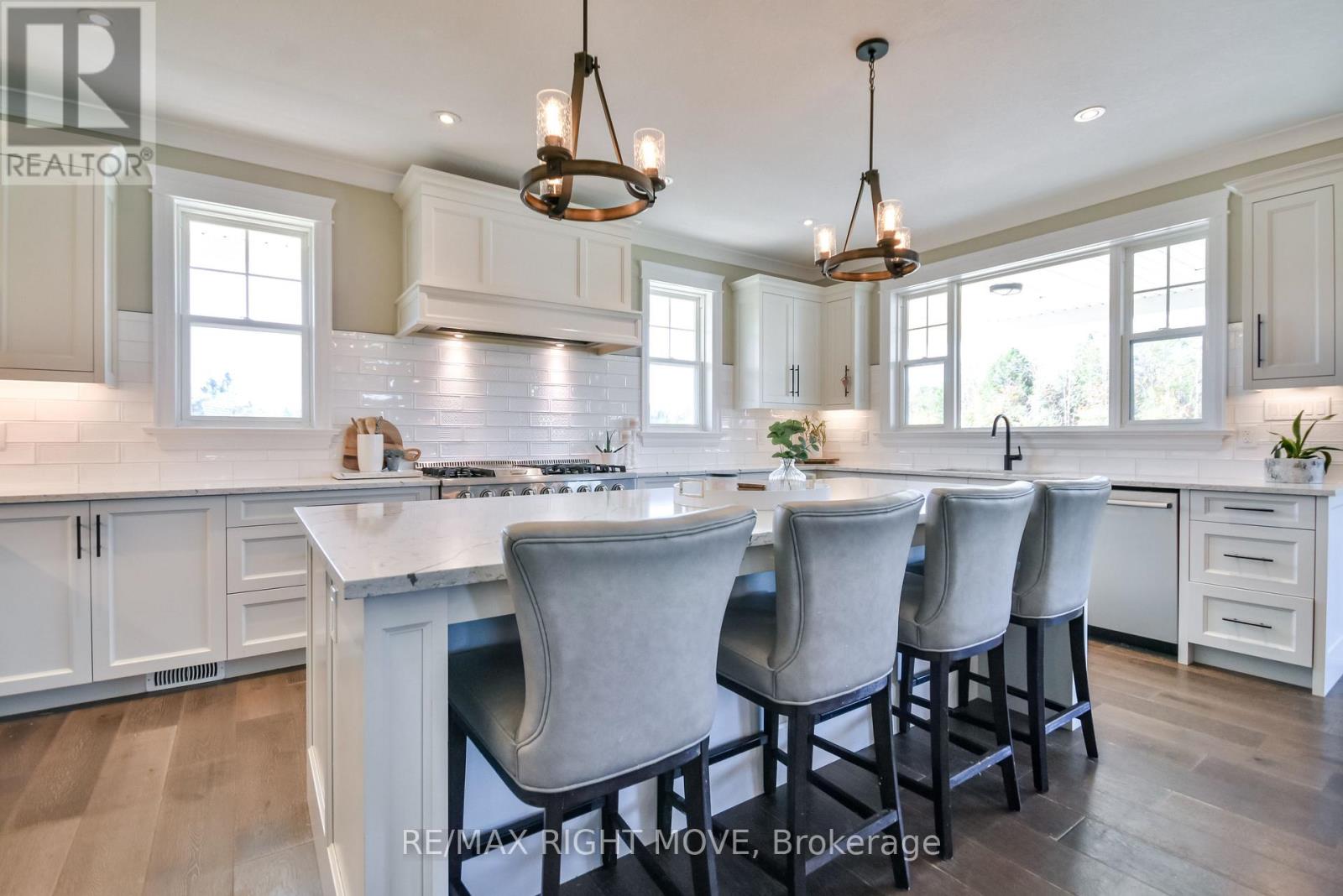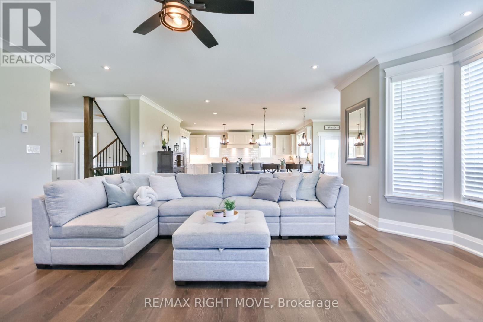 Welcome to 2448 Stockdale Road, Severn Township. Set on 4 acres, this luxurious custom-built home with wrap-around porch showcases exceptional craftsmanship and high-end finishes throughout. The main level is open, bright, and designed for modern living, featuring a stunning custom kitchen with an oversized island, quartz countertops, a 48 dual-fuel range, and a spacious family room with a stone gas fireplace. Additional main floor highlights include a private office, mudroom, elegant 2-piece bath, 9-foot ceilings, and engineered hardwood flooring throughout. The second level offers 5 generous bedrooms, including a serene primary retreat with coffered ceilings, a luxurious 5-piece ensuite with a soaker tub, dual walk-in closets, and a private sitting room. This level also features a 5-piece main bath, an additional 4-piece bath, and rich engineered hardwood flooring throughout. The finished lower level features a large, open recreation room, office, laundry area, and a 3-piece bath, all with oversized windows that bring in natural light. For the hobbyist, the triple-insulated and heated attached garage provides ample workspace, complemented by a detached heated and insulated double garage with a loft for additional storage. Notable upgrades include soffit lighting, heated tile floors, wainscoting, shiplap, coffered ceiling details, and premium trim finishes. Located just 10 minutes from Orillia or Washago, with nearby access to Lake Couchiching and the Trent-Severn Waterway, Highway 11, and endless recreation opportunities for boating, snowmobiling, and ATV adventures. An exceptional property where luxury meets country living, every detail thoughtfully designed and beautifully executed. (id:4555)