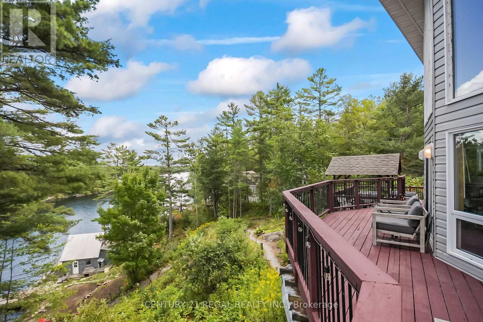 Magnificent Four-Season Waterfront Property on Trent Severn. Set on over 3.5 acres with an impressive 223 feet of clean deep waterfront. This cottage offers the privacy, space, and lifestyle buyers dream about. Located on a wide, open stretch of the Trent-Severn Waterway just minutes from Severn Falls, you'll enjoy expansive water views and endless opportunities for boating, swimming, and water sports.The main cottage features 3+1 bedrooms and a thoughtfully designed layout ideal for gathering and entertaining. A chef's kitchen anchors the home, flowing into beautiful dining and living spaces with stunning lake views. Rich wood finishes, exposed timber frame and beam accents, and warm natural textures create an inviting yet refined atmosphere throughout. Large decks extend the living space outdoors, making it effortless to host family and friends.The property also includes a charming, original lakeside bunkie with additional sleeping accommodations, a large dock, boat port, and a lakeside fire pit, the perfect setting for long summer evenings by the water. Just 1.5 hours from the GTA and a short drive to local amenities, this property offers year-round enjoyment. In the winter months, it transforms into a private retreat with trail access for snowmobiling and snowshoeing just minutes away, plus ski resorts within 30 minutes. A true waterfront gem,perfect for personal family use or as a turnkey vacation rental with excellent income potential. (id:4555)