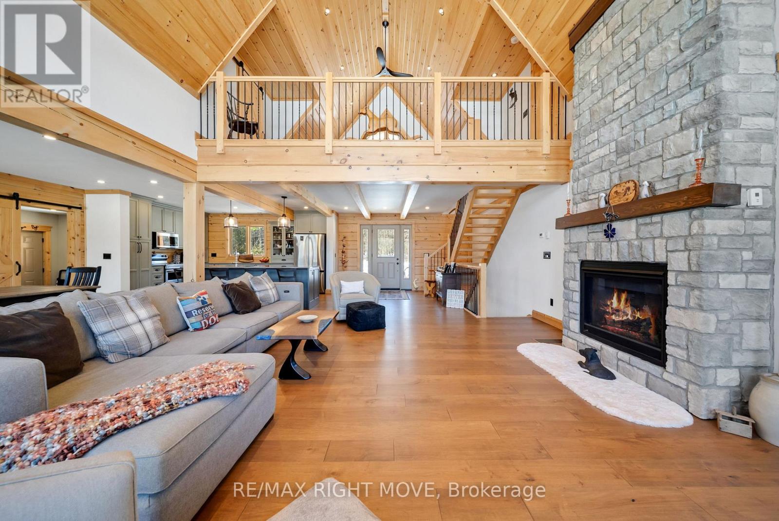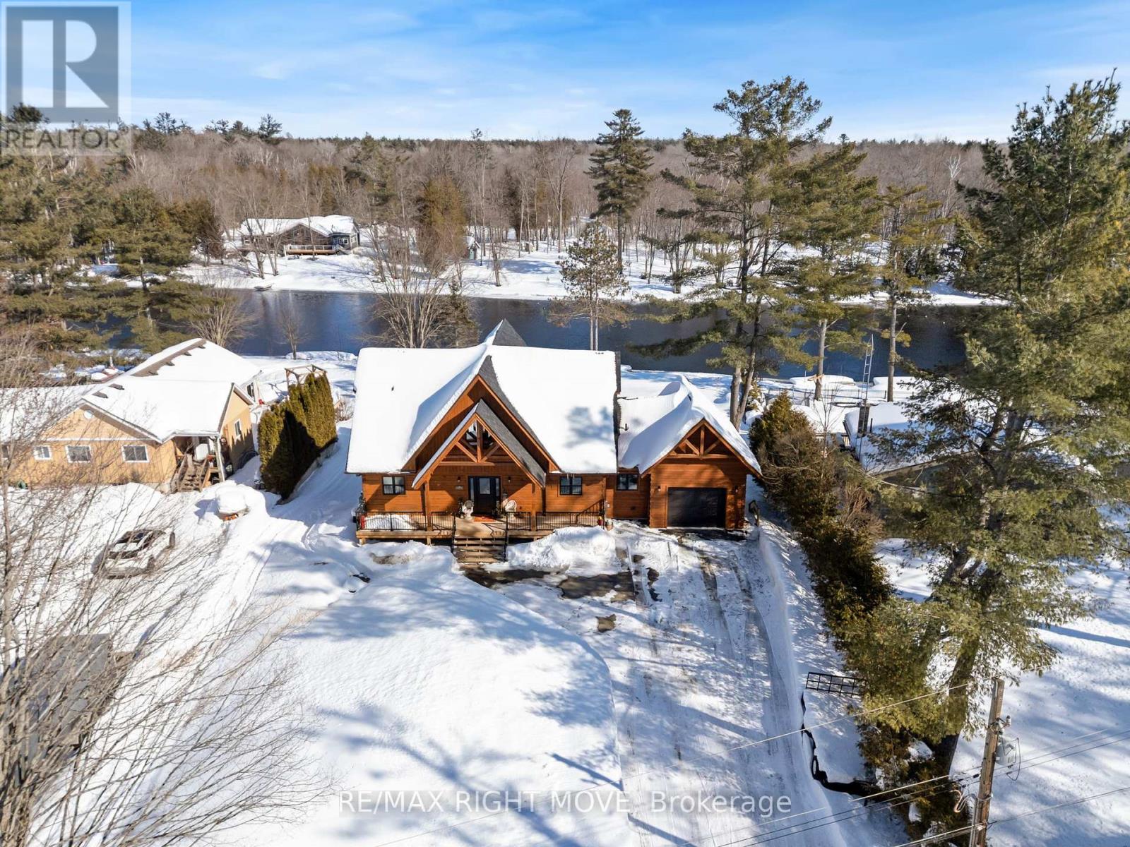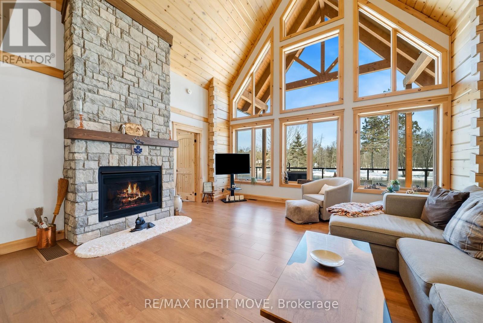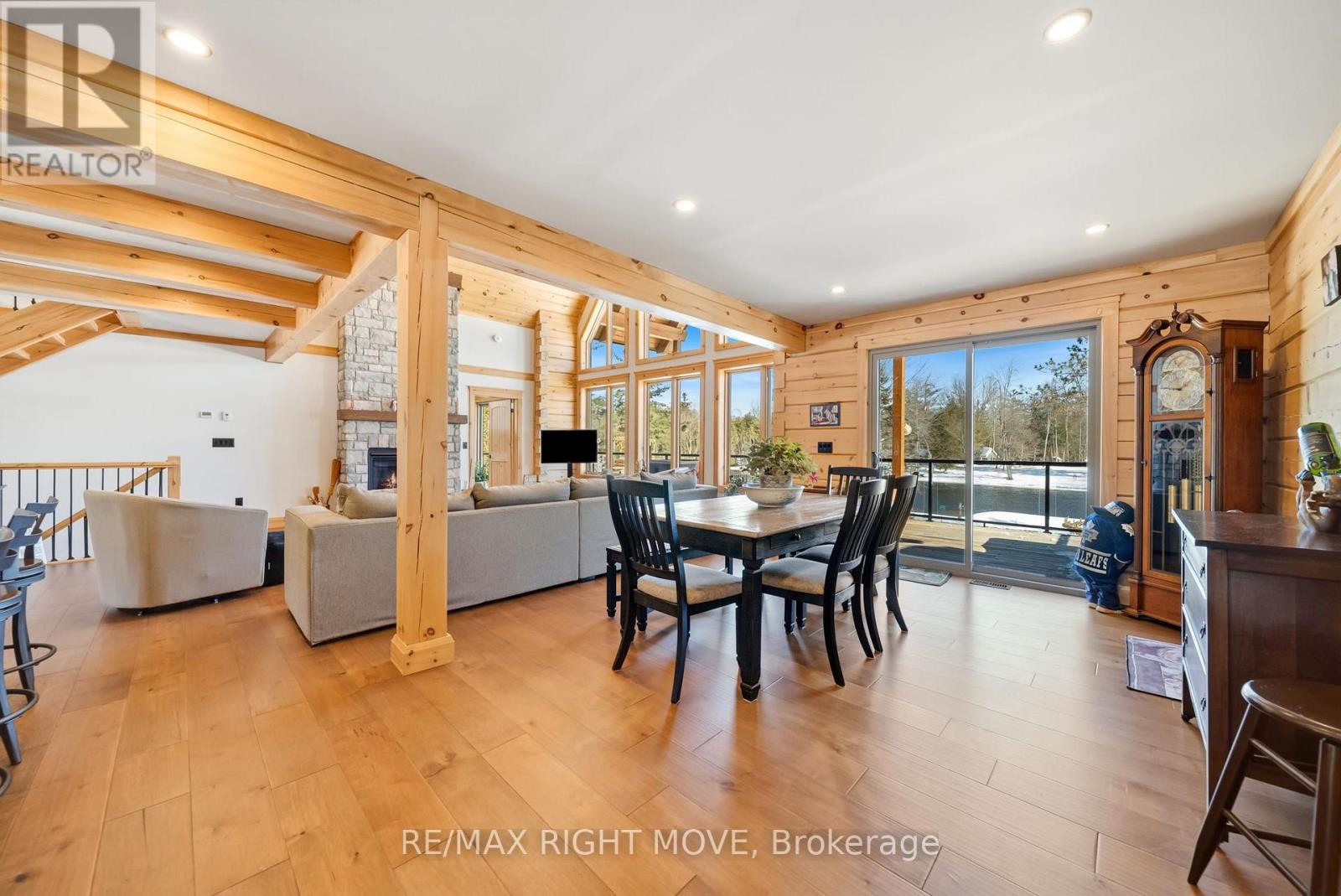 Set along 103 feet of open waterfront on McLeod Drive in Severn, this custom built solid log residence offers a rare blend of craftsmanship, scale, and natural setting. The moment you step inside, the architecture makes an impression. Soaring ceilings, an open concept living and kitchen area filled with natural light, and expansive windows frame beautiful river views from many of the principal rooms. It is a home designed not just for living, but for enjoying its surroundings. The kitchen and family room connect seamlessly, creating a comfortable space suited to both entertaining and quiet evenings at home. Patio doors open to a riverside porch where the outdoors becomes a natural extension of the living space. A main floor bedroom with a private ensuite offers excellent flexibility for guests or multi generational living. Above, the open loft style primary suite provides a peaceful retreat with large his & her custom walk in closets and a well appointed spa like ensuite. The loft design maintains a connection to the open living space below while still offering privacy. The fully finished walkout lower level adds even more living space with a large recreation room, two additional bedrooms, and a 3 piece bathroom, providing comfortable accommodation for family and guests. Step outside from the walkout and unwind in the hot tub, perfectly positioned to take in the river setting year round. With 103 feet of frontage on the Severn River and a solid log home designed for lasting quality, this property offers an exceptional waterfront lifestyle 15 minutes from Orillia and its amenities while still feeling comfortably removed from the pace of town. (id:4555)