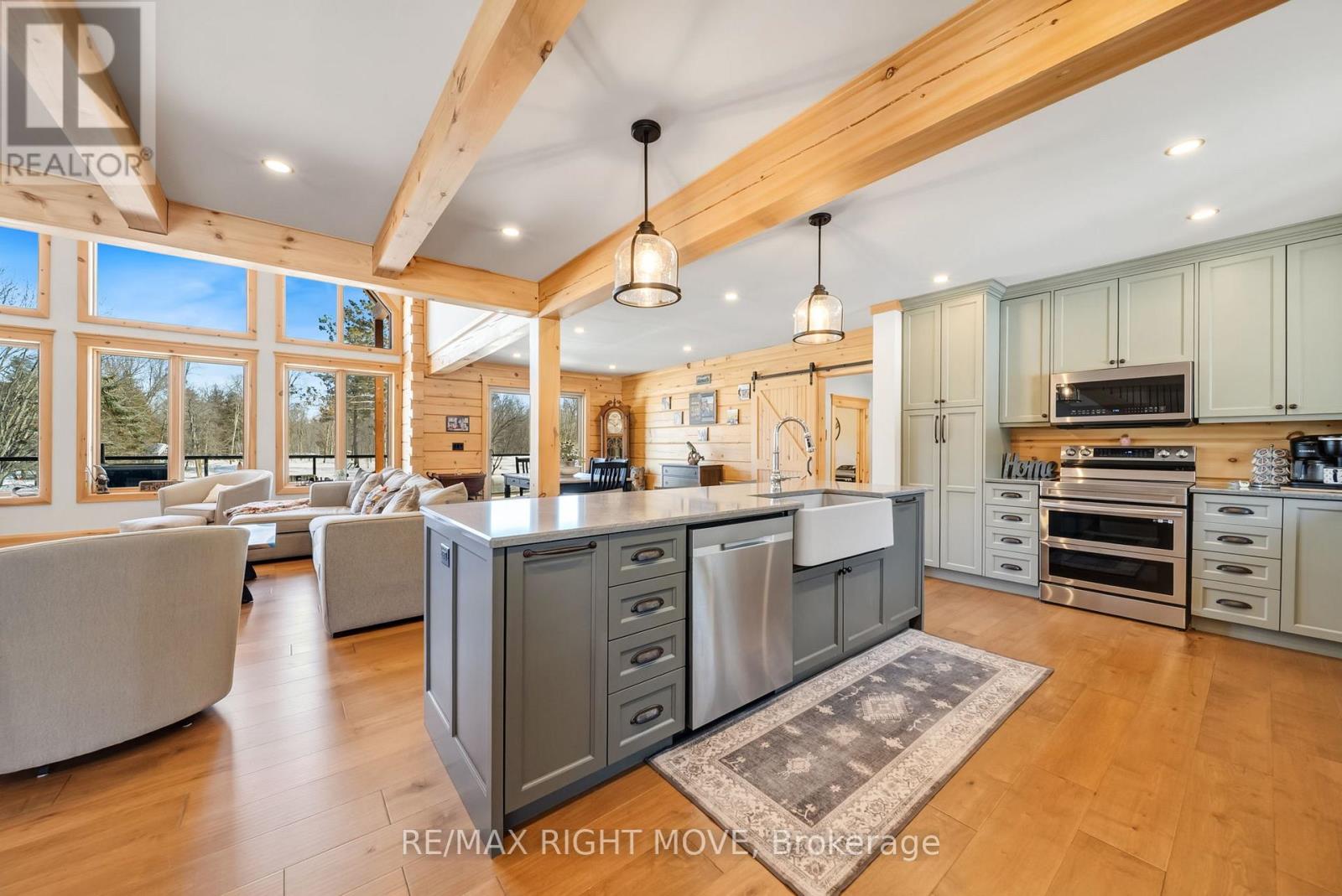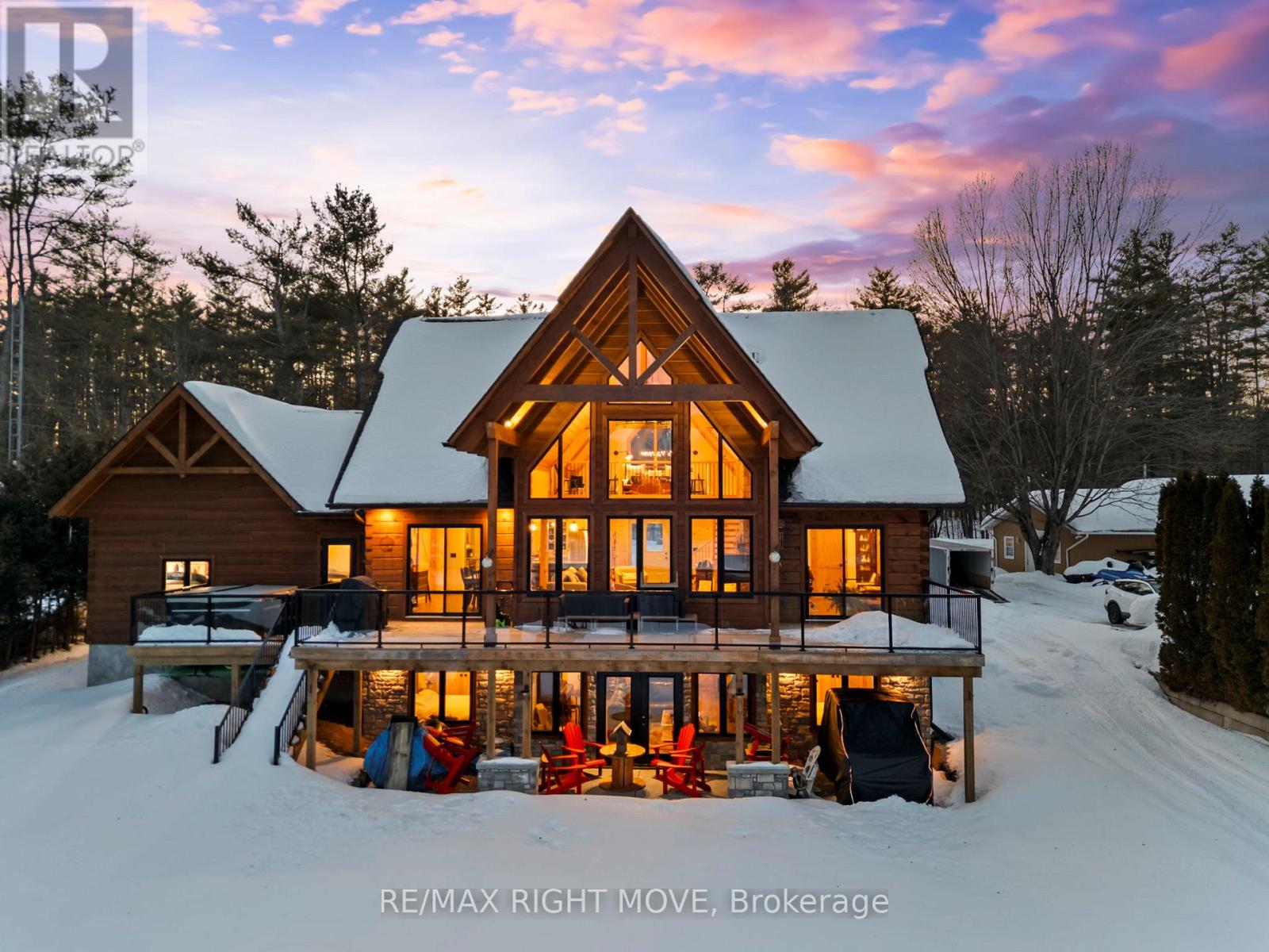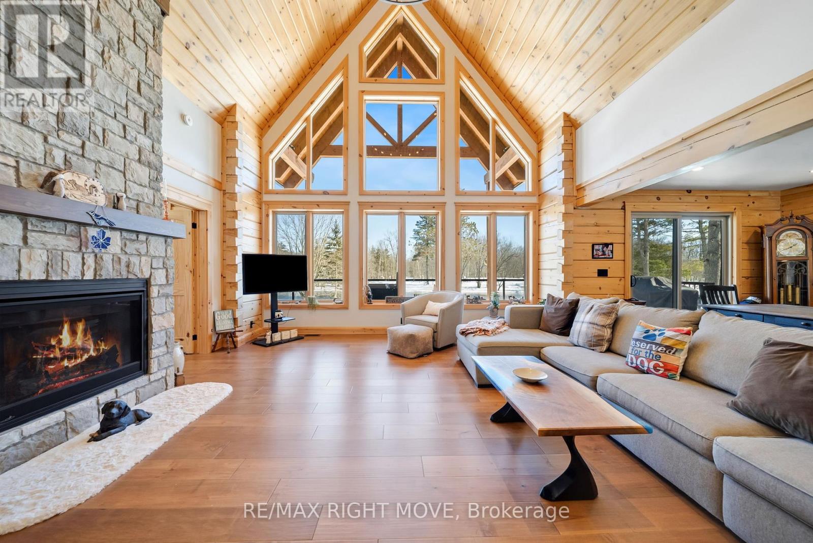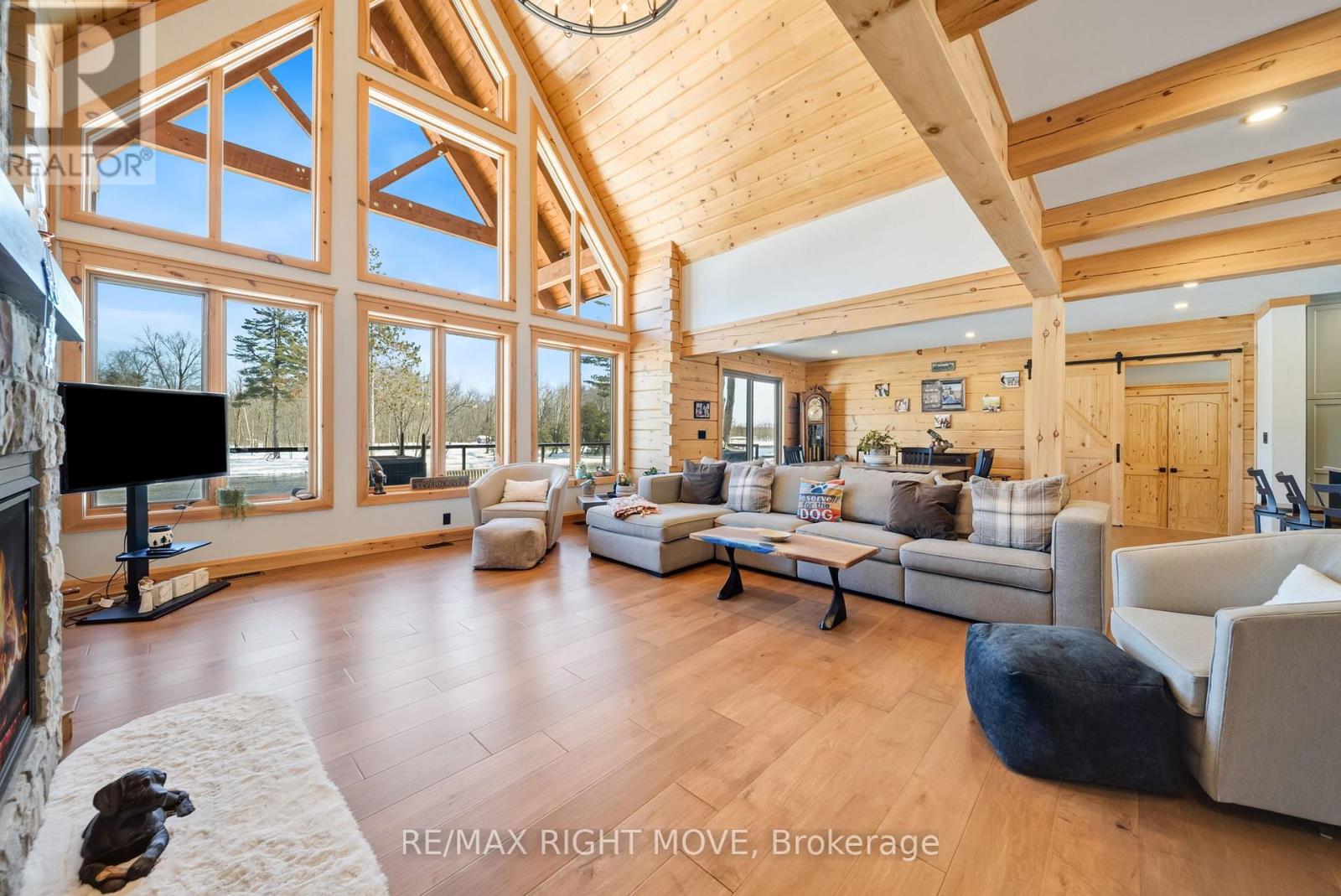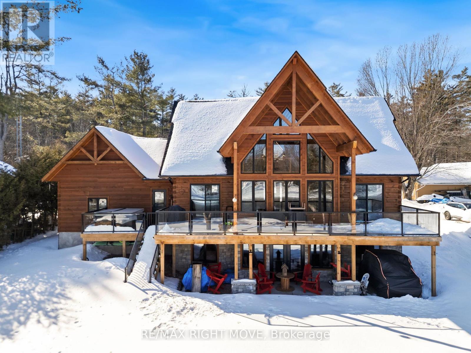 Set along 103 feet of open waterfront on McLeod Drive in Severn, this custom built solid log residence offers a rare blend of craftsmanship, scale, and natural setting. The moment you step inside, the architecture makes an impression. Soaring ceilings, an open concept living and kitchen area filled with natural light, and expansive windows frame beautiful river views from many of the principal rooms. It is a home designed not just for living, but for enjoying its surroundings. The kitchen and family room connect seamlessly, creating a comfortable space suited to both entertaining and quiet evenings at home. Patio doors open to a riverside porch where the outdoors becomes a natural extension of the living space. A main floor bedroom with a private ensuite offers excellent flexibility for guests or multi generational living. Above, the open loft style primary suite provides a peaceful retreat with large his & her custom walk in closets and a well appointed spa like ensuite. The loft design maintains a connection to the open living space below while still offering privacy. The fully finished walkout lower level adds even more living space with a large recreation room, two additional bedrooms, and a 3 piece bathroom, providing comfortable accommodation for family and guests. Step outside from the walkout and unwind in the hot tub, perfectly positioned to take in the river setting year round. With 103 feet of frontage on the Severn River and a solid log home designed for lasting quality, this property offers an exceptional waterfront lifestyle 15 minutes from Orillia and its amenities while still feeling comfortably removed from the pace of town. (id:4555)