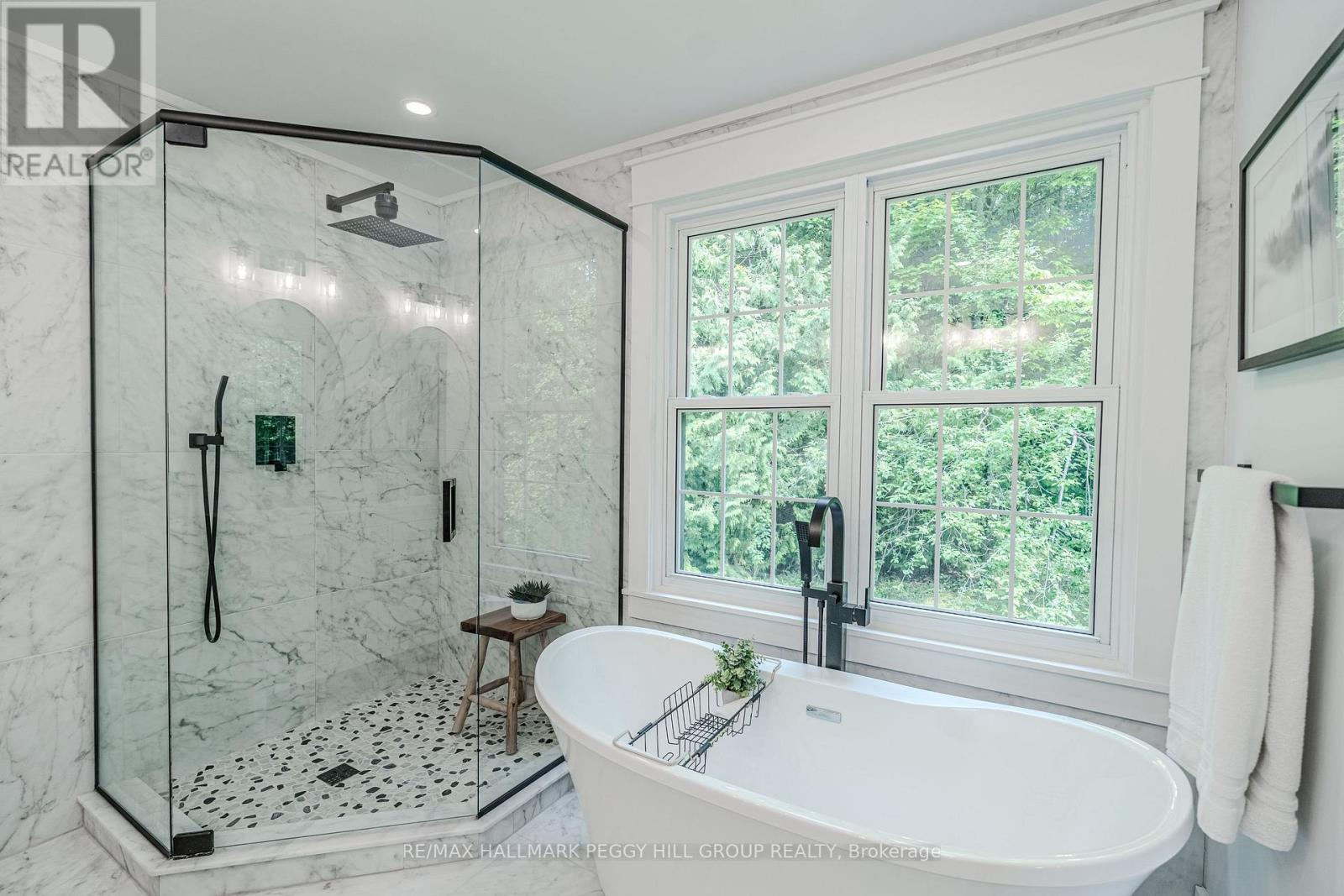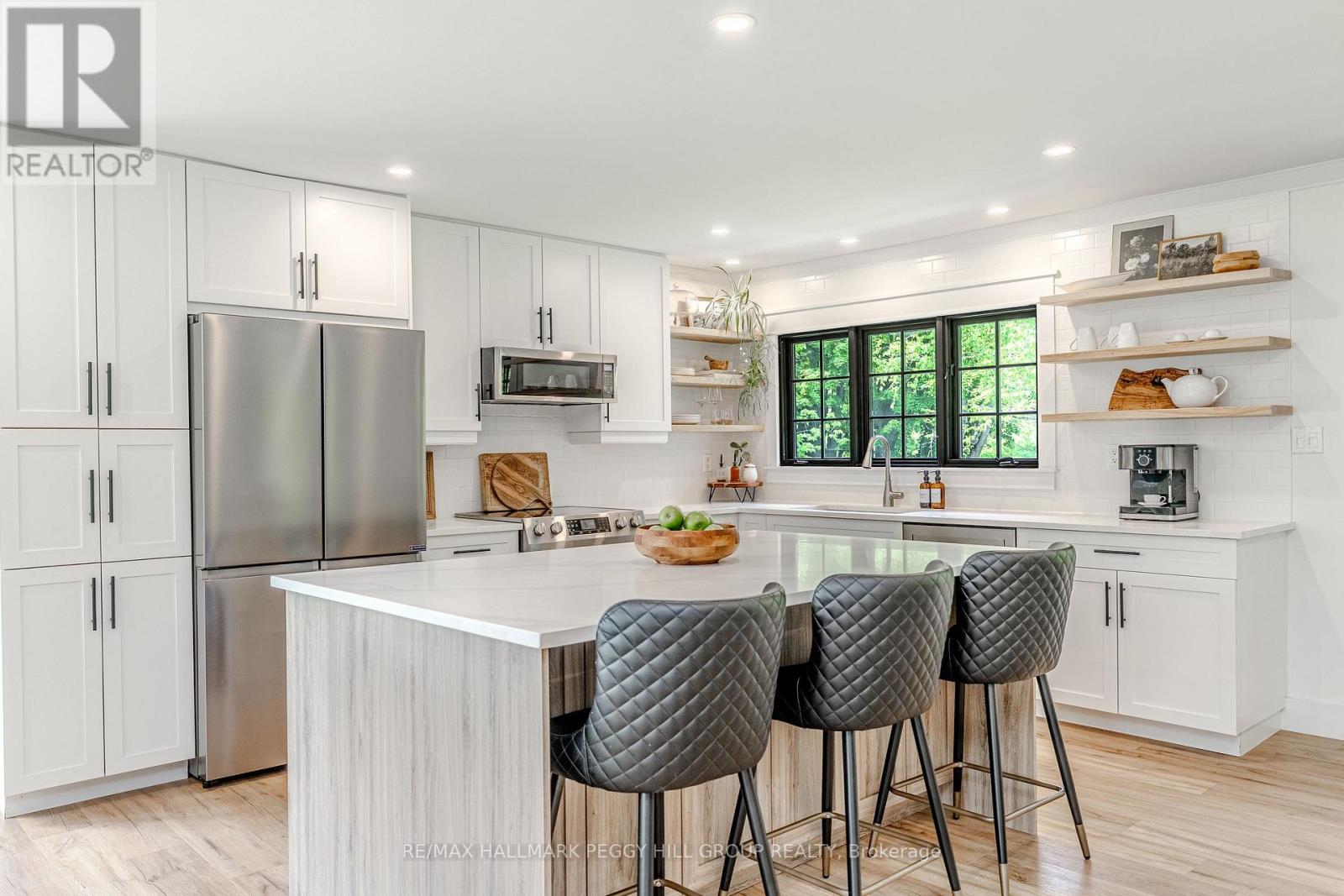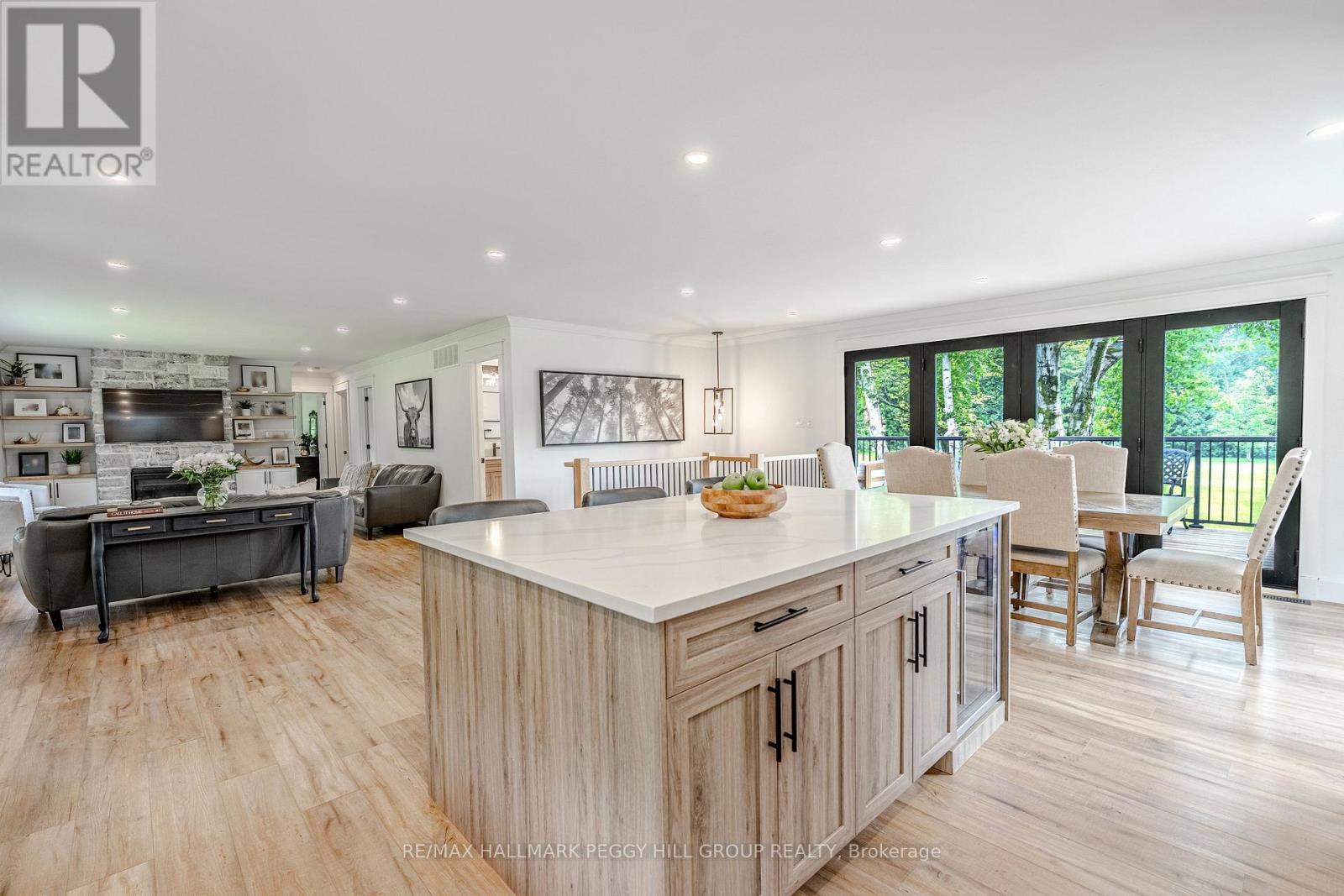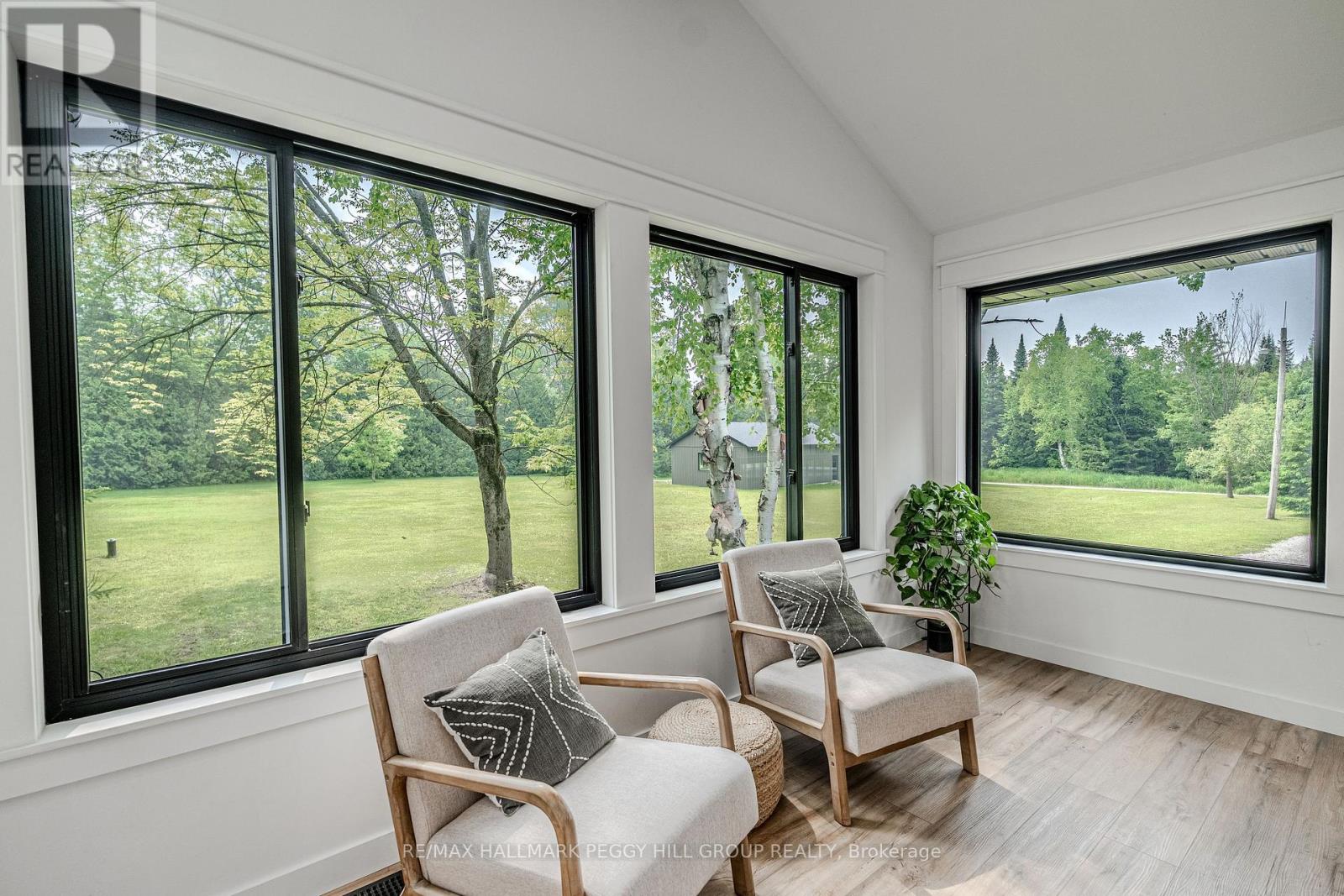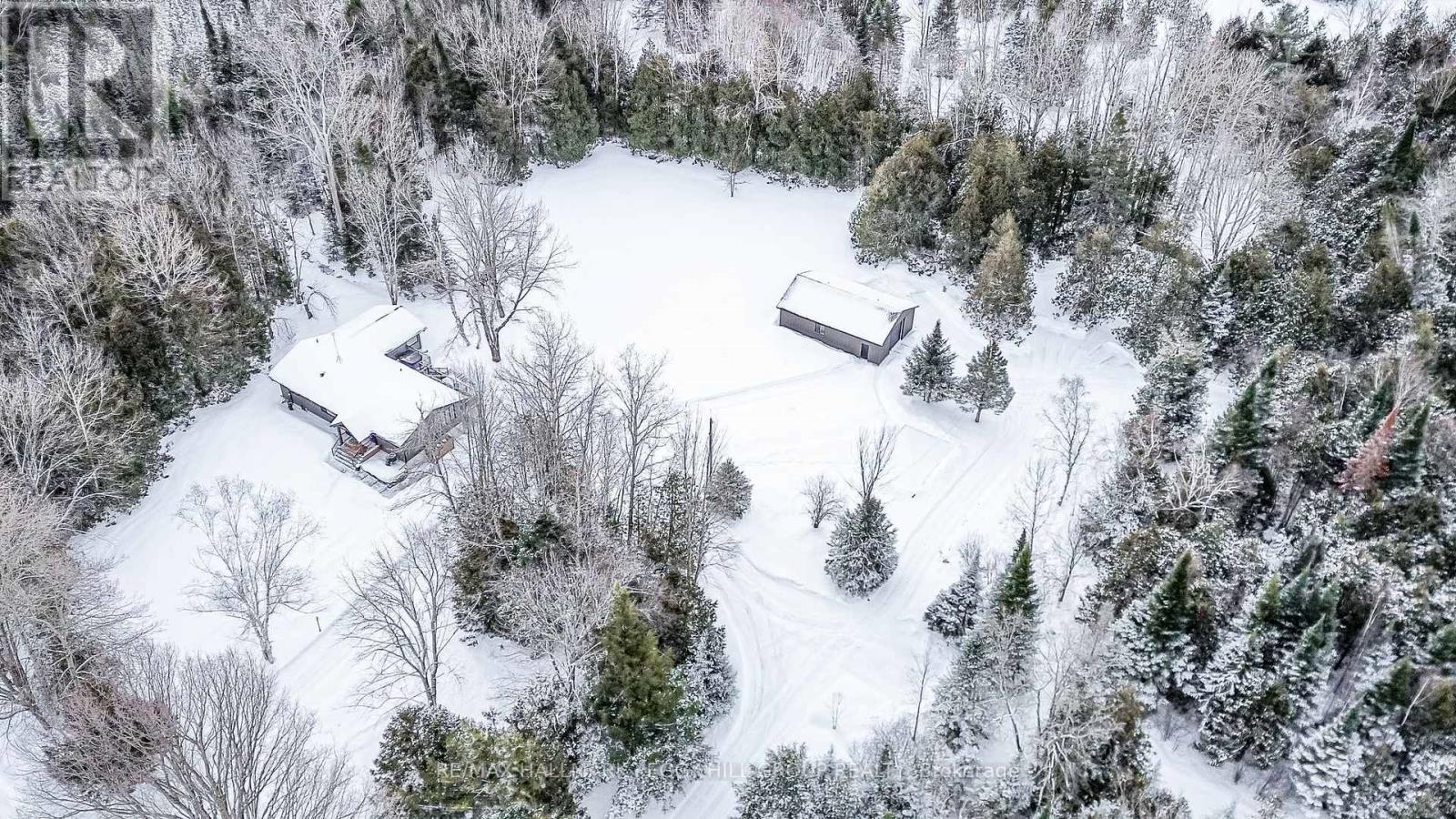 SECLUDED COUNTRY BUNGALOW ON OVER 2 ACRES WITH UPSCALE FINISHES, HOT TUB, 4-CAR GARAGE & MOVE-IN-READY LUXURY! Think of the country home you keep saving in your Pinterest inspiration folder, a bungalow on over 2 acres of private countryside with a turnkey interior of designer finishes and a backyard made for entertaining and unwinding with tree-lined views. Arrive along a long private drive to striking curb appeal, where rich wood beams and black-trimmed windows frame a covered front porch set against board-and-batten style vinyl siding, with a detached 4-car garage or shop echoing the same modern look for vehicles or hobby space. Extensively renovated, the open concept layout offers over 2,800 finished sq ft with luxury vinyl flooring, pot lights, crown moulding, and soft neutral paint tones. The kitchen offers white cabinetry, quartz countertops, open wood shelving, stainless steel appliances, and a wood-toned island with breakfast bar seating that flows into a bright dining area framed by four-panel garden doors opening to the elevated back deck. The living room centres around a propane fireplace in a floor-to-ceiling stone surround with built-in cabinetry and open shelving. The vaulted primary bedroom stands out with a wood beam accented by pot lights, its own fireplace in a stone surround, generous windows, a luxurious ensuite, and excellent storage, including two built-in wardrobe systems, plus a private walkout that places the hot tub only steps away. The finished walkout basement extends the living space with a recreation room, full bathroom, two additional bedrooms, and a laundry room finished with live-edge style counters and a subway tile backsplash. Packed with high-end upgrades, a stylish turnkey interior, an oversized garage, and real acreage privacy, this is the kind of country #HomeToStay that leaves you wondering what more you could want. (id:4555)