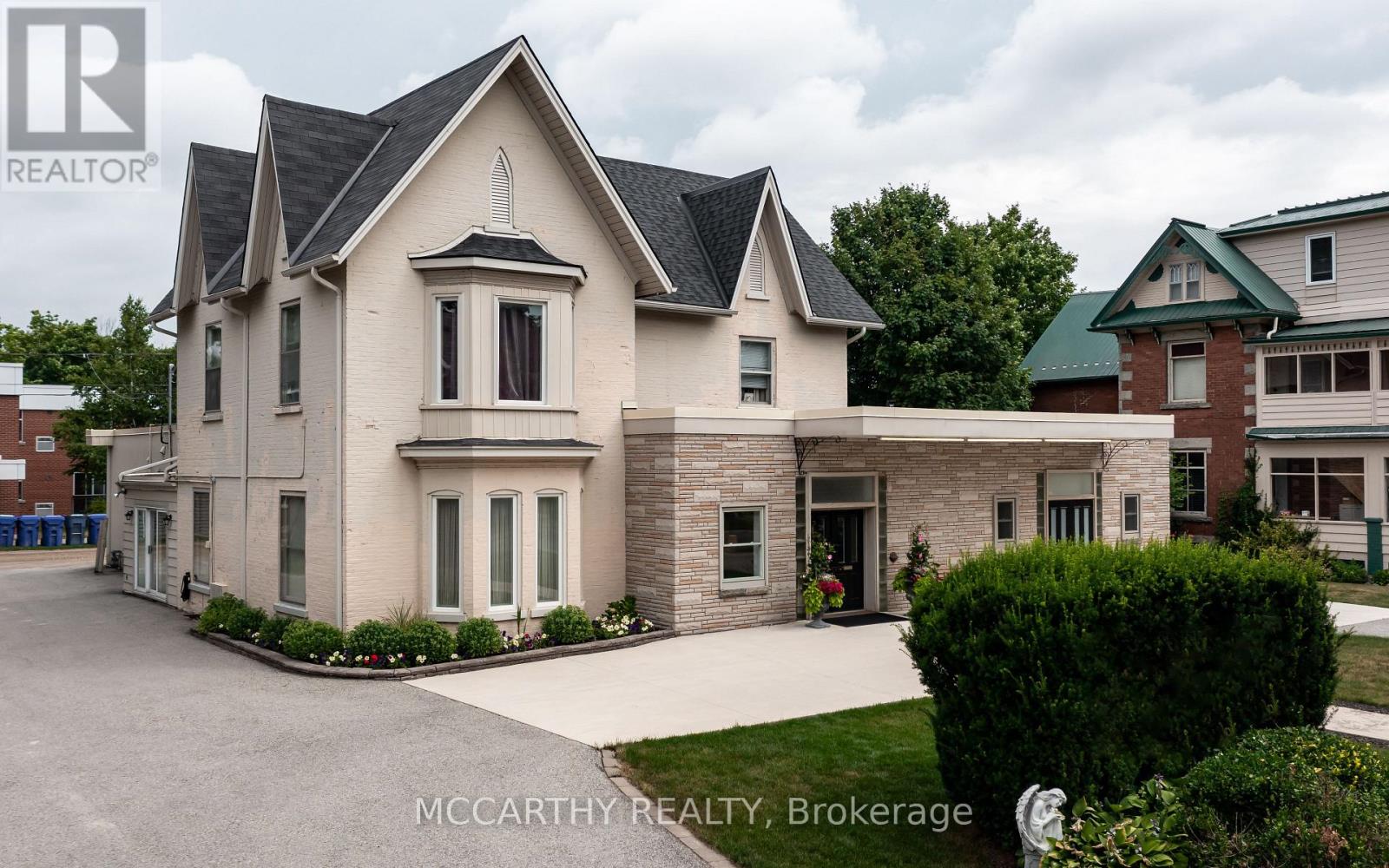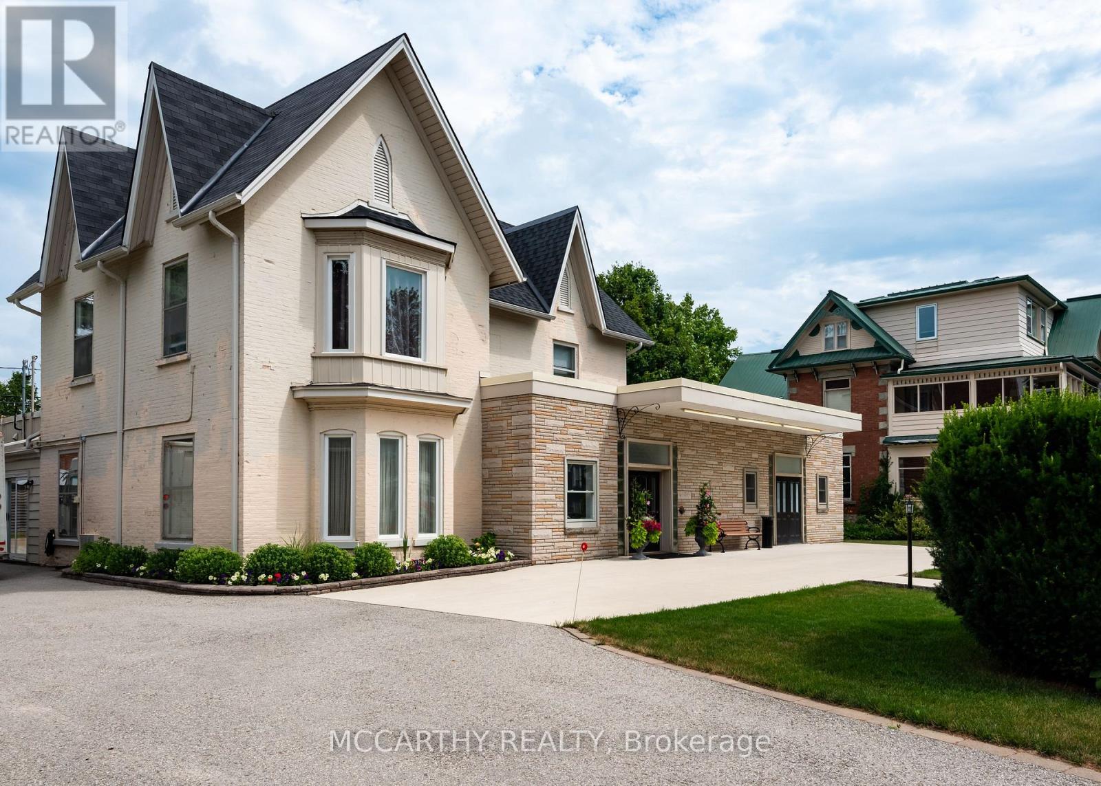 Excellent Downtown Location On Main Street Shelburne. Big Century Home converted to Offices and Meeting rooms. Appros 5,514 Sq Ft. More recently has addition of a chapel, large meeting room, Plus two other large rooms on main Floor, two entries into Triple car garage heated., Large Foyer meeting area, main floor 2pc bathroom, Huge Lot & Building. Mixed Use, C2 Zoned Commercial & Residential Interior Space With Many Possible Uses. Large Downtown Lot With Plenty Of Parking for 14 + Has Back Lane Access drive thru and into the 3 Car Heated Garage. Front Double Door Entrances into a Chapel with seating for 130, Side Door Entry into side foyer and access to garage and Dining room/meeting room. Private Front Lobby with entrance to chapel and private area and stairs second floor. Large Event & Meeting Rooms, Set up as a Chapel and could be used for many uses, currently With Wooden Pews, High Ceilings, on both floors, 2 Bathrooms, 2pc on main floor and one 4pc on Second floor. Second floor used for offices now, in past has been residential for live work situation, 2nd Floor has a Kitchen, 4 Pc Bath & up to 2.5 storey has 3 Living/Office Rooms. Two large walk in closets. could make a great residential area and used as bedrooms. Has Storage rooms /small bedrooms. stairs to Attic, not finished but potential for bonus room. Super spot to Live and Work or rent out. Easy access to Street Parking, Side Walk Entry brings to centre of pretty main entrance. Semi Circle Double Wide Front Driveway has two entrances off of Main St and drive thru the Side Driveway thru to the back lane. Great Opportunity for Many uses, Investment Opportunity or Develop into a great new Store, Meeting space, Restaurant! Main Street Iconic Local Building, Centre of Town In The Growing Town Of Shelburne. High traffic area, Many Opportunities & Uses. Many opportunities for Entrepreneur, Residential and or Commercial Office. See attachment for floor plan and zoning. (id:4555)