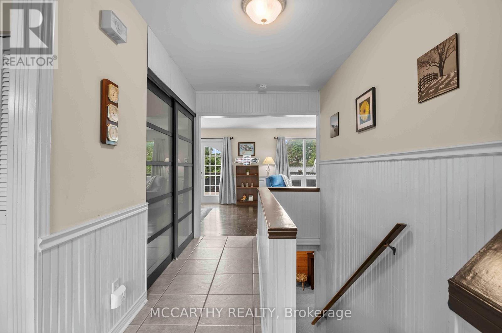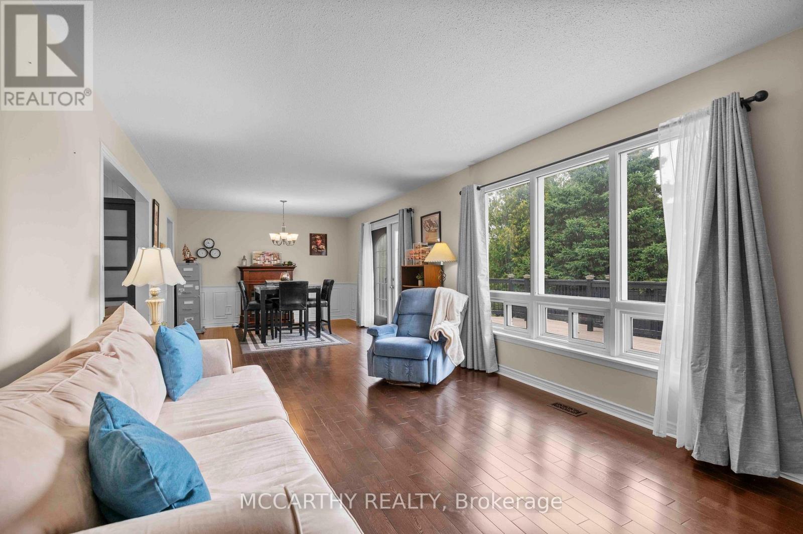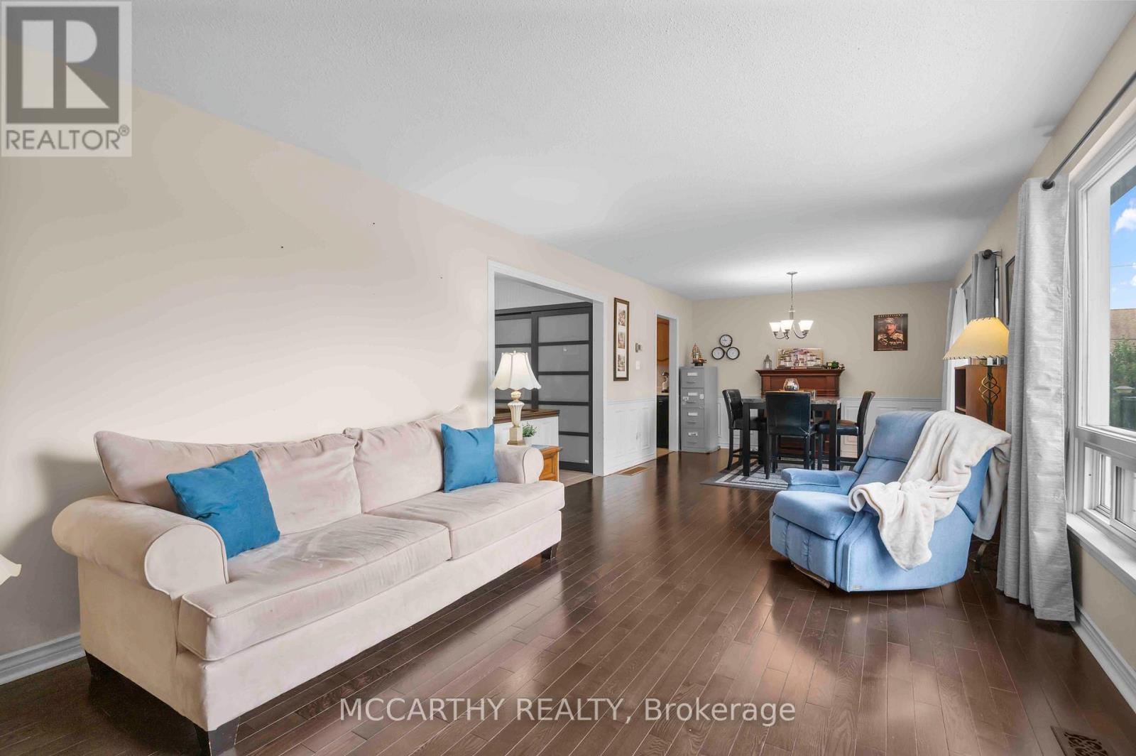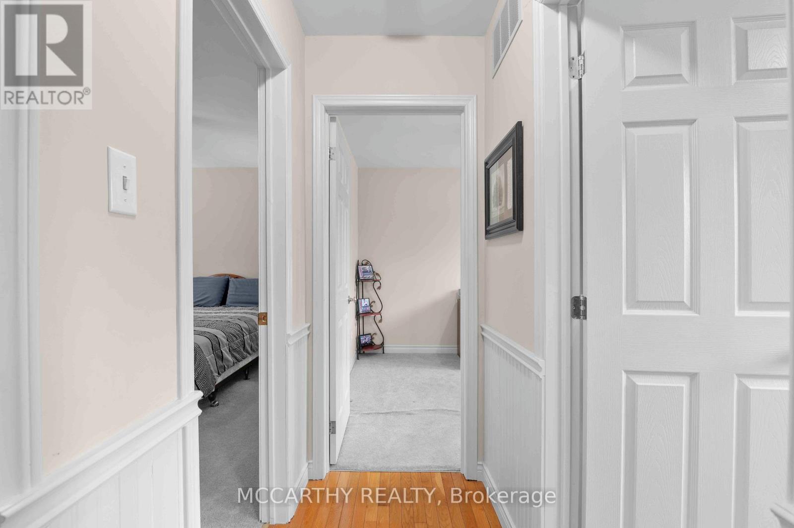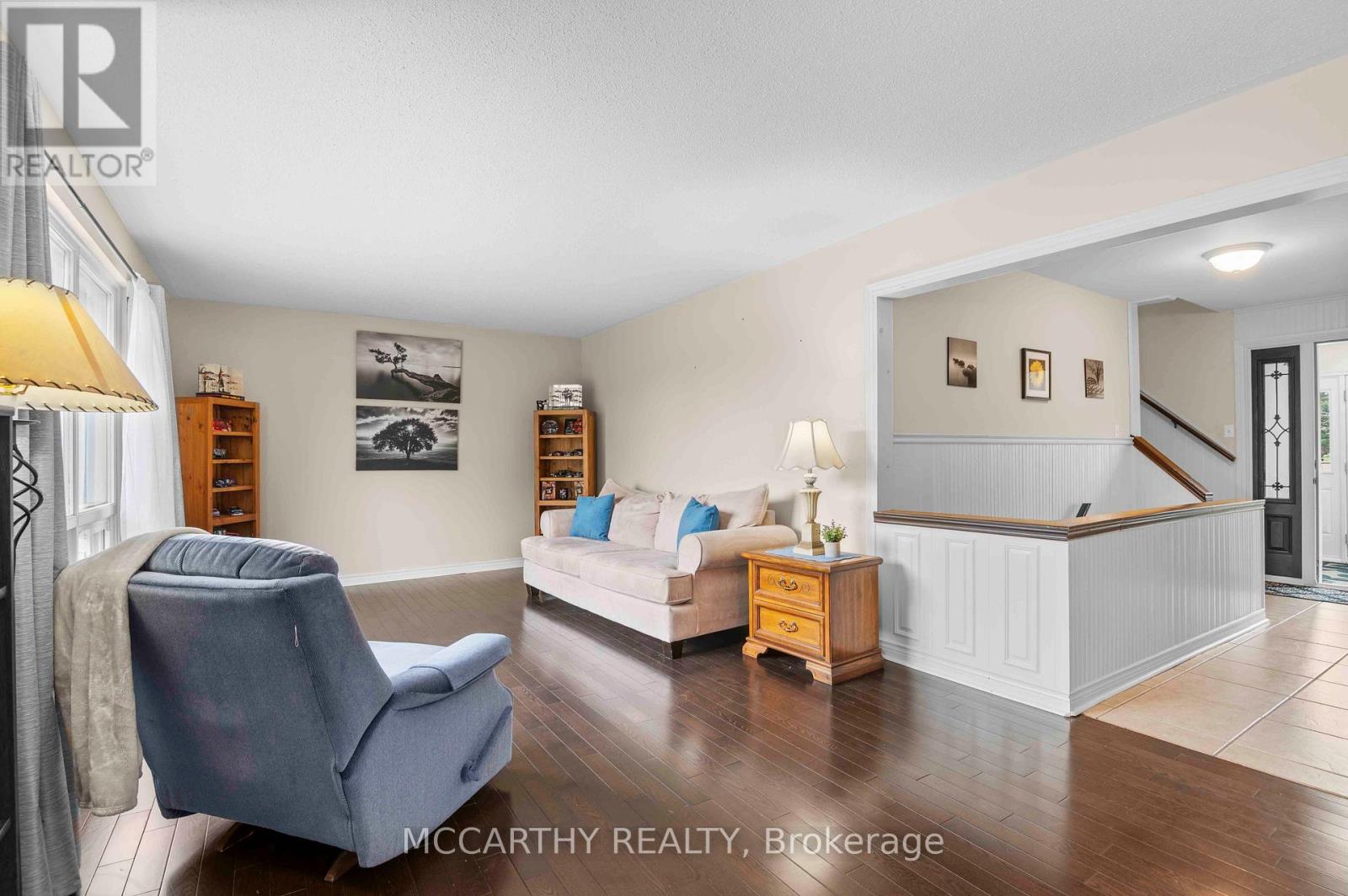 Great Curb Appeal, Large Corner lot with large lot 80 x 100ft, Large front entrance, Big back yard deck and Hot Tub with Hard cover. 3 Bedroom 2 Bathroom well maintained 3 level Side split. Pretty entrance of paving stone walkway around the house and steps up to a welcoming deck, has convenient & pretty motorized awning for shade and privacy. Come into the bright and airy 3 season sunroom entry. Door way into Large foyer with tile floor, double closet w modern sliding doors. Well Lit Eat in Kitchen with plenty of cupboards with large window over double sink. Hardwood floors in Combined Dining room and Living room. Living room has large picture window over looking the large Back Deck deck. Eat dinner in the large Dining room that is combined with the living room, Electric Fireplace. Garden Doors Walk out from the dining room to the back deck and spacious back yard, great for family time or entertaining. Enjoy evenings in your own Gazebo covered Hot Tub. Double door gate to back yard. Spacious side yard with a large wood shed approx. 10ft x 16ft with hydro. Upper level has three good sized bedrooms and a spacious 4 piece Bathroom. Lower level Rec room has cozy gas fireplace and is spacious and plenty of room for family time and entertaining. 2nd Bathroom on lower level 3pc w large walk in tiled shower. The laundry room with plenty of cabinets for storage and folding. Utility room is combined with the laundry room. Need space for parking, this is it, 2 car garage plus Concrete driveway with parking for 4 plus, total 6 parking spots, Great for the working couple, work vehicle, recreation vehicle, visitors or extended family cars. (No need to worry about winter parking spots. )Street is quiet as not a drive thru street, Corner lot is large and has good size side and back yard. Very close to Elementary and Secondary schools, parks, recreation/arena. Perfect well maintained home for family living. Desired location, Move in ready. Book showing today, Must See. (id:4555)