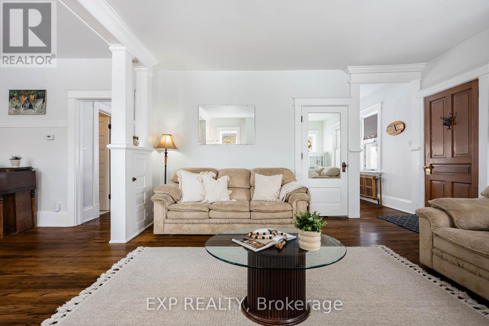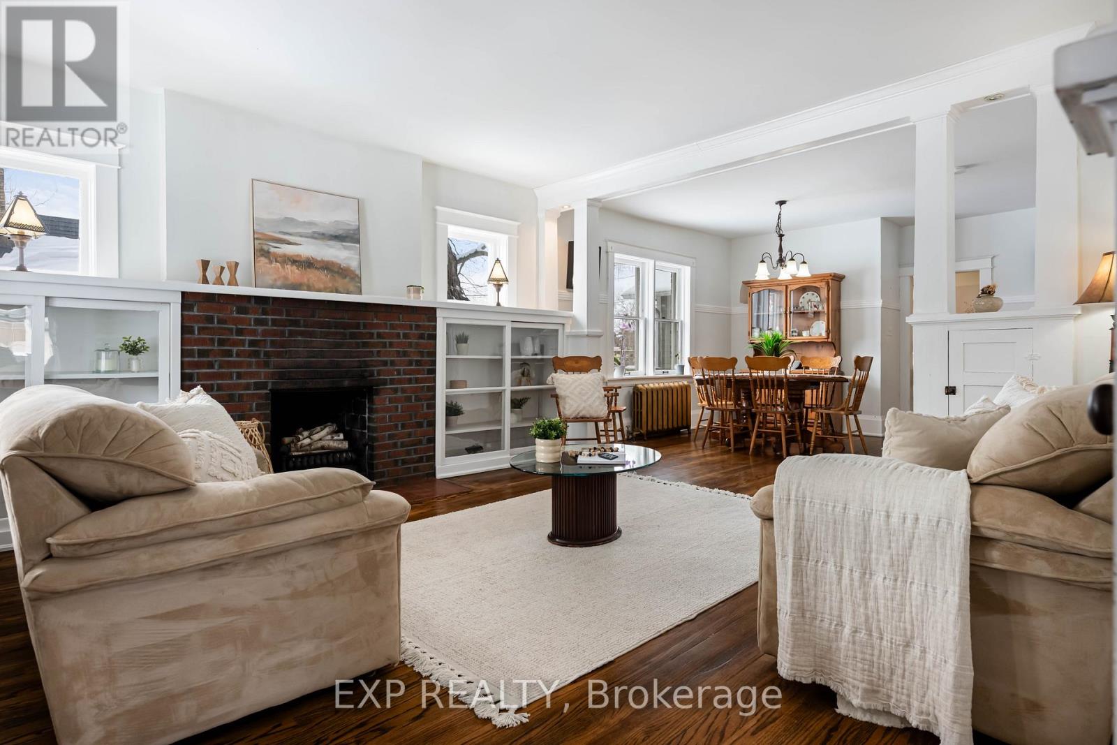 Welcome to 314 Main Street East, a stunning 1930s Arts & Crafts Craftsman home in the heart of Shelburne. Rich in character and thoughtfully maintained, this 4-bedroom, 3-bathroom century home offers over 2,000 sq ft of timeless charm, exceptional craftsmanship, and flexible living space perfect for your family. From the moment you arrive, the classic covered front porch with tapered columns invites you to slow down and stay awhile. Inside, original wood trim, solid wood doors, detailed mouldings, and custom built-ins showcase the quality and warmth true to the Craftsman era. The grand living room is anchored by a wood-burning fireplace with built-in shelving and integrated library lamps, flowing seamlessly into a spacious dining room designed for hosting memorable gatherings. At the heart of the home, the eat-in kitchen features abundant cabinetry, generous counter space, and even a cozy gas fireplace - a rare and inviting touch. With convenient access to the front yard, back deck, and dual driveways, it's a layout designed for everyday function and effortless entertaining. A rare main-floor primary suite offers quiet privacy, complete with double closets and a spacious 4-piece ensuite - ideal for generational living or long-term flexibility. Upstairs, you'll find three additional bedrooms, including a second primary retreat with hardwood floors, walk-in closet, and charming built-in window seat, plus a beautifully updated 3-piece bath. Outside, enjoy a private backyard oasis with a large deck perfect for summer BBQs and gatherings. Driveway access from Main Street and a quiet rear laneway provides parking for up to six vehicles - a rare find in a historic home. Located within walking distance to shops, schools, and everyday amenities, this is your opportunity to own a truly special century home that blends architectural beauty with modern comfort in one of Ontario's fastest-growing communities. (id:4555)