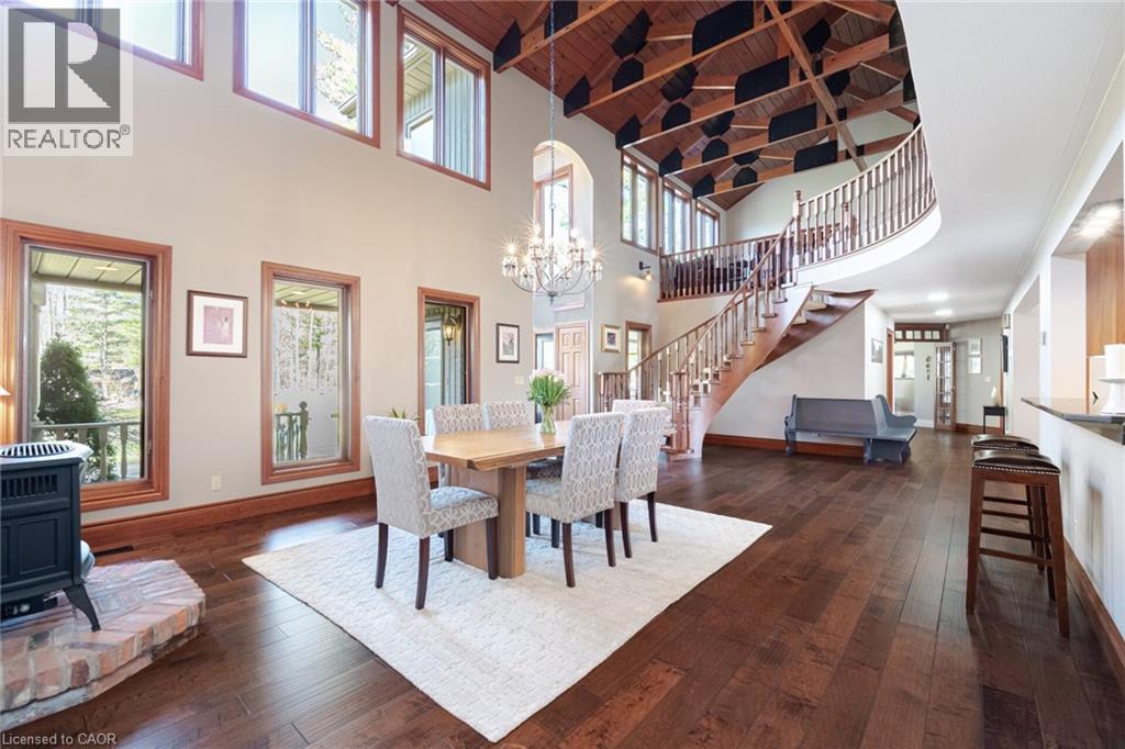 Stunning Country Estate !!! This One-of-a-Kind Masterpiece, captivates from the very first glance with unmatched curb appeal and distinctive design. A true architectural gem, the home showcases custom exposed timber and iron construction, offering a dramatic welcome with soaring 26-foot ceilings in the foyer & great room. Anchoring the space is a striking gas stove and dramatic staircase just two of of the many bespoke touches throughout. The chefs kitchen is a showstopper in its own right, thoughtfully positioned between the great room & the expansive rear deck. Designed for seamless indoor-outdoor living, its perfect for entertaining on any scale, from intimate gatherings to grand events incorporating the sparkling heated saltwater pool, hot tub, deck, & beyond. Prepare to be awestruck yet again in the window-walled family room, where vaulted ceilings rise above a stunning floor-to-ceiling brick fireplace. Here, panoramic views of the beautifully manicured grounds, create a tranquil yet breathtaking backdrop for family gatherings. The main floor offers 2 bedrooms, including an expansive primary suite that feels like a private retreat. It features a luxurious 5-piece spa-style bath w/glass shower enclosure, a generous walk-in closet & direct access to the deck through a private walkout. Additional features include renovated 3 piece bath & laundry rm. The sweeping, open-riser circular staircase leads to the equally impressive upper level. Here you'll find two spacious bedrooms, a sleek and modern 3-piece bathroom, and a versatile loft-style den or studio area. The open-to-below wrap around balcony offers a front-row seat to the craftsmanship of the handcrafted artistry that defines this remarkable home. For the hobbyist or DIY, an incredible bonus awaits: heated 1,200 sq ft- accessory building, fully equipped with a 3-piece bathroom. This versatile space is ideal for a workshop, studio- home gym, the possibilities are endless! (id:4555)