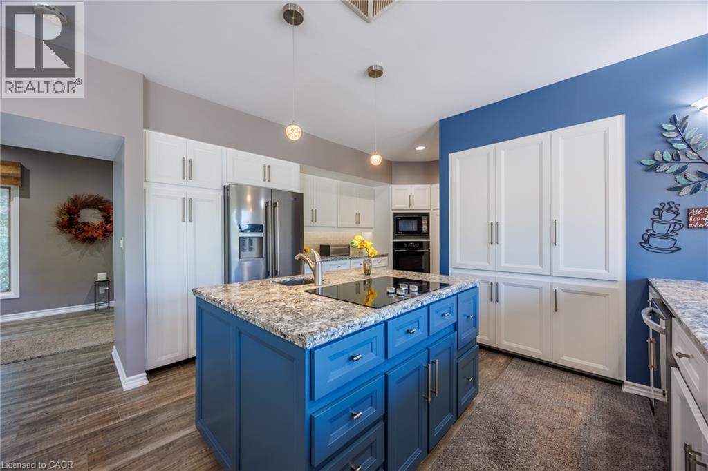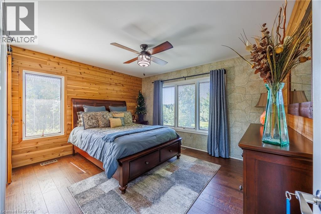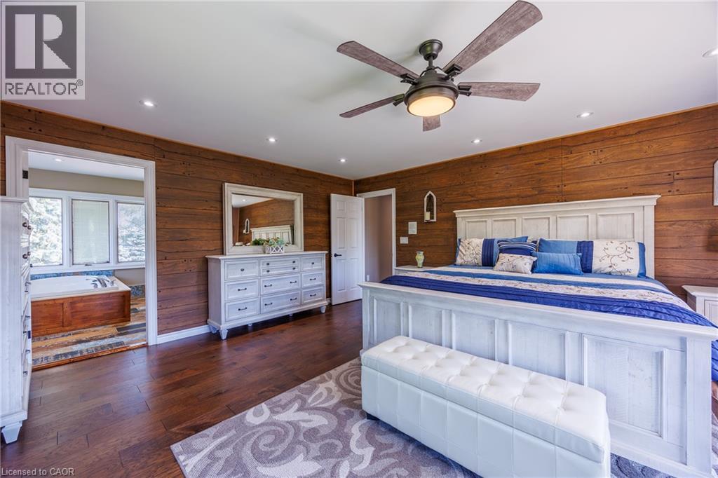 Welcome to your dream home! This exquisite estate offers custom luxury and privacy on a sprawling 20+-acres with OS zoning for other potential business opportunities. Nestled alongside a pristine golf course and featuring two natural ponds, this property provides a picturesque retreat from the hustle and bustle of daily life. Over 8200 sq ft of luxurious living space. 5 spacious bedrooms with 5 having their own elegant ensuite bathrooms, with an office that can be easily converted to a bedroom, heated floor in primary bath with romance tub – all custom. 7 bathrooms: 5 well-appointed ensuites with 2 being wheelchair assessable. 2 kitchen's upper kitchen has ss appliances in lower-level kitchen equipped with industrial sink, upper-level kitchen has large pantry and extended island, perfect for entertaining and everyday living. Main living room features vaulted wooden ceiling, fireplace, and professional designer bar area. Second living room features another fireplace & vaulted ceiling. Heated 3 car with roughed in area for a possible bathroom. Expansive living areas with exquisite finishes, multiple fireplaces, and custom details throughout. Beautifully landscaped grounds, water, hydro and internet to 3 tents W/200 chairs and 40 car parking lot. Repaved driveway (2022), new roof (2019) with 3 skylights. Private pond/w bridge (2020) and electrical outlet, 3 large custom-built decks w/gazebo, walking distance to the golf course. Led spotlights throughout home (2021), large windows; two bay windows (2022) panoramic views, a grand entryway with custom 2 entry door (2022), ample front parking with wifi access, Ultraviolet System 2025. This estate combines the grandeur of an opulent residence with the tranquility of nature, creating a perfect sanctuary for relaxation and entertainment. Whether you're hosting elegant gatherings or enjoying quiet evenings by the pond, this property offers an exceptional lifestyle, that you don't want to miss. (id:4555)