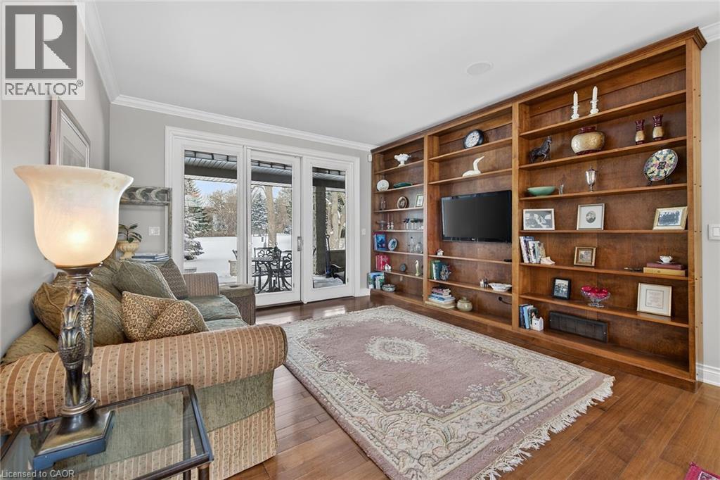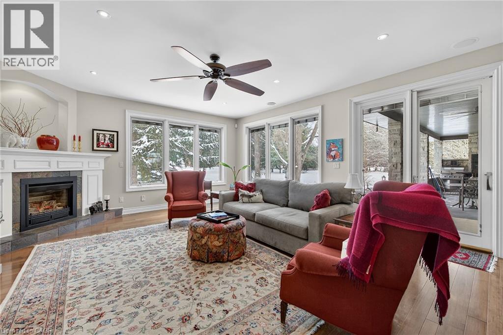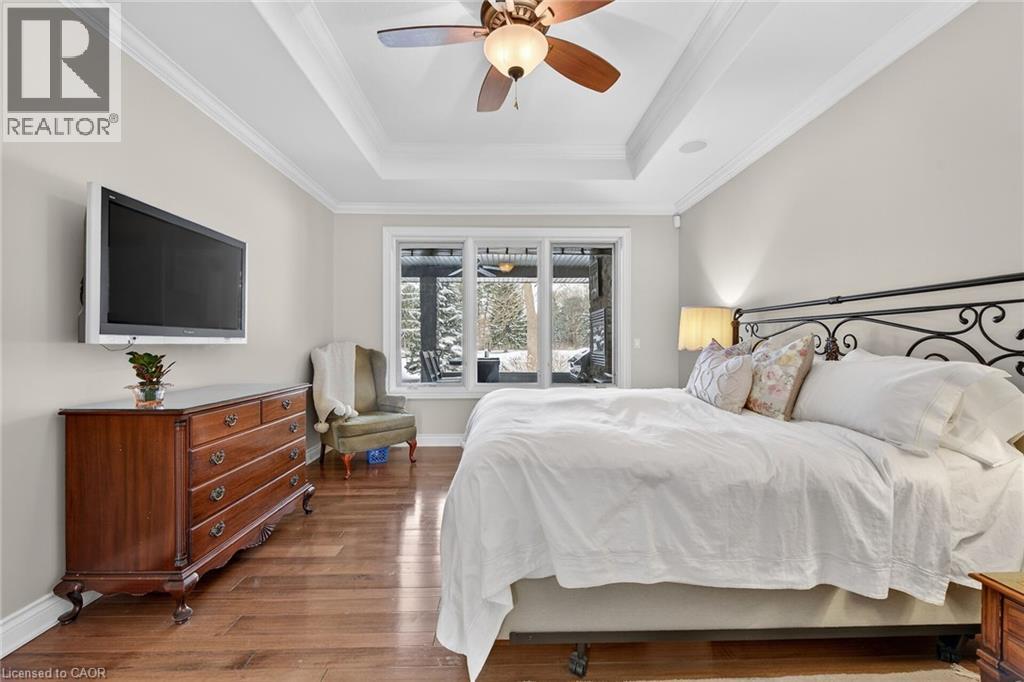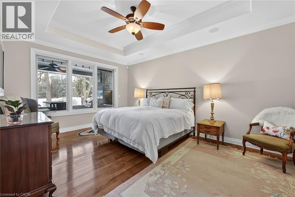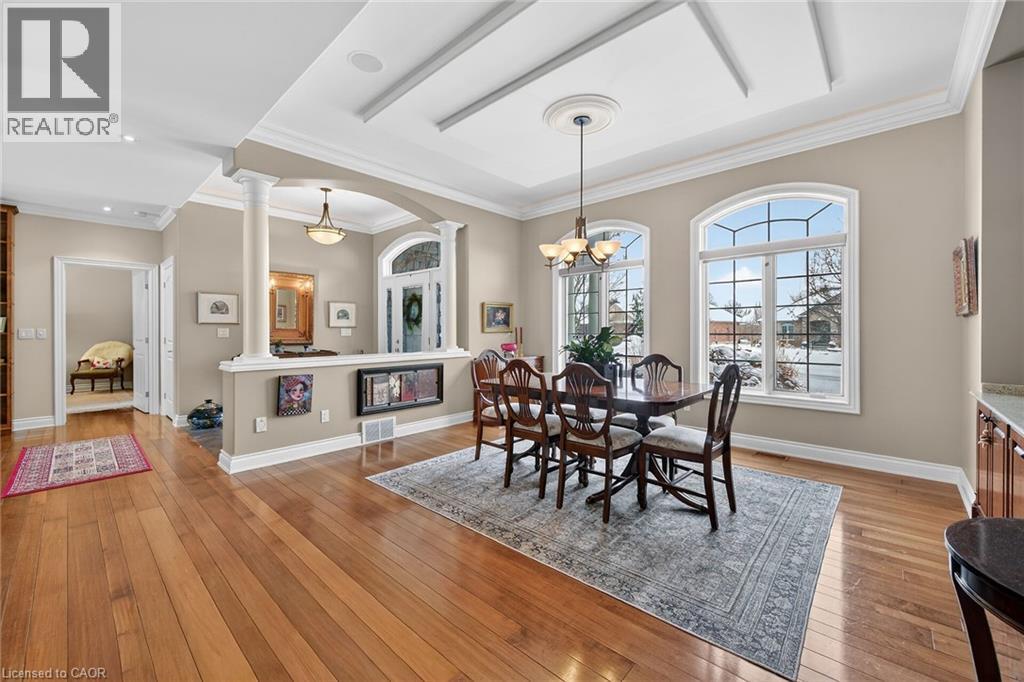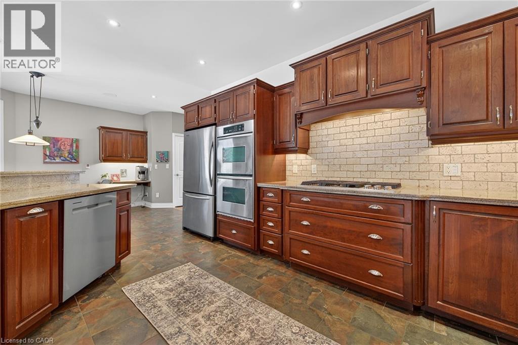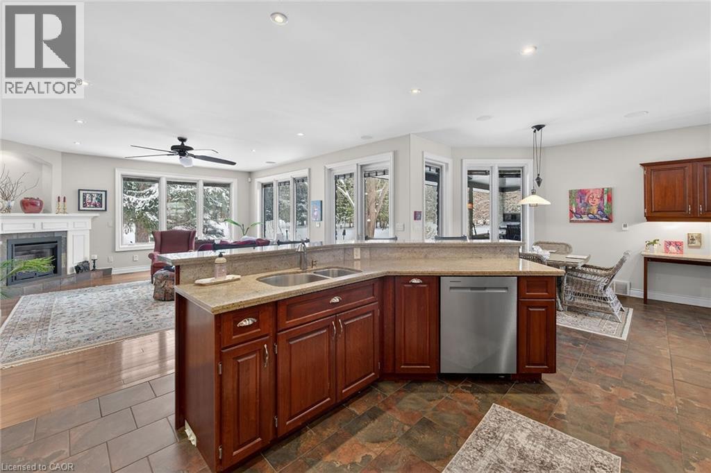 Simply stunning executive style home/property located in one of Simcoe’s most prestigious, upscale neighborhoods abutting the manicured fairways of revered Norfolk Golf Course - rarely do one of 13 properties backing on to this stately course ever come available. Offers close proximity to many amenities incs Hospital, schools, rec centers, pools, trails, shopping & eateries. Positioned proudly on 0.36ac lushly landscaped lot is 2006 custom built/designed stone/brick/stucco clad Estate bungalow introducing 2483sf of flawless living area incs 420sf covered outdoor entertainment area overlooking golf course grounds - boasting tile floors, gas FP, TV, outdoor kitchen & huge dining area, 2483sf beautifully finished lower level & 655sf oversized 2-car garage enjoying basement walk-down. Grand foyer leads past formal dining room to open conc. Dream kitchen sporting maple cabinetry, designer island, granite counters, tile backsplash, WI pantry & hi-end appliances incs Sub-Zero refrigerated drawer feature - segues to comfortable family room ftrs stylish wall unit, n/g FP + 8ft high 3 panel sliding door WO. Continues to opulent living room w/2nd patio door WO, roomy guest bedroom, 4pc bath, convenient MF laundry & north-wing primary bedroom incs 4pc jacuzzi en-suite + WI closet. Gleaming hardwood floors, gorgeous wood trim/baseboard, 9ft/10ft valence lighted tray ceilings + heated tile flooring compliments interior décor w/sophisticated flair. Impressive rec/family room highlights lower level boasting 9ft ceilings, gas FP & corion top rectangular shaped wet bar - seamlessly flowing to sizable 3rd bedroom, home gym/poss. 4th bedroom, 3pc bath, spacious games room & multiple utility + cold rooms. Extras - Control “4” security, owned water well supplying multi-zone irrigation system, all appliances, RO purification, water softener, AC’19, 200 amp hydro, conc. drive/walkways, extensive outdoor lighting, 8 TVs, Golf Cart & much more. Luxurious Life-style waiting “FORE” You! AIA (id:4555)