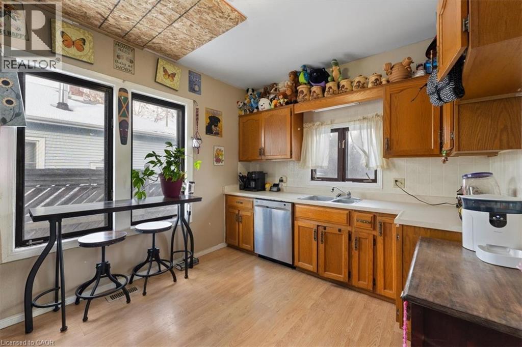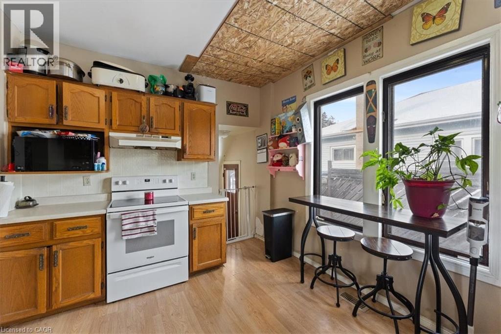 Very spacious home for your family! Large principle rooms and tons of natural light in this century home. Great location close to all amenities. Enclosed front porch offers extra room for a 3 season hang out. Original hardwood floors in the living and dining room give you a cozy farm house feeling. The kitchen has plenty of oak cupboards and large windows bring in the warm sunlight. Note: appliances are not included. Upstairs has 3 generous sized bedrooms with great closet space. This home has tons of potential and awaits your personal touch. The basement is dry and spacious. Hydro panel recently upgraded to breakers. The current tenants are willing to stay if buyer is interested in renting to them. Central Air was installed by the tenant so the working order is not guaranteed by the owner. (id:4555)