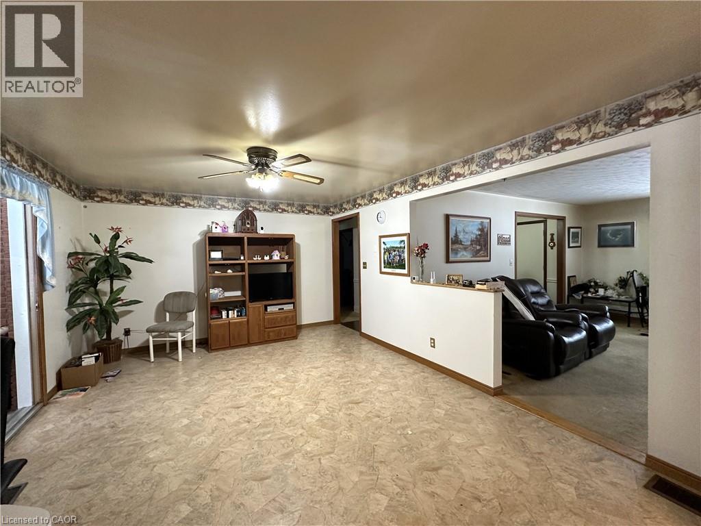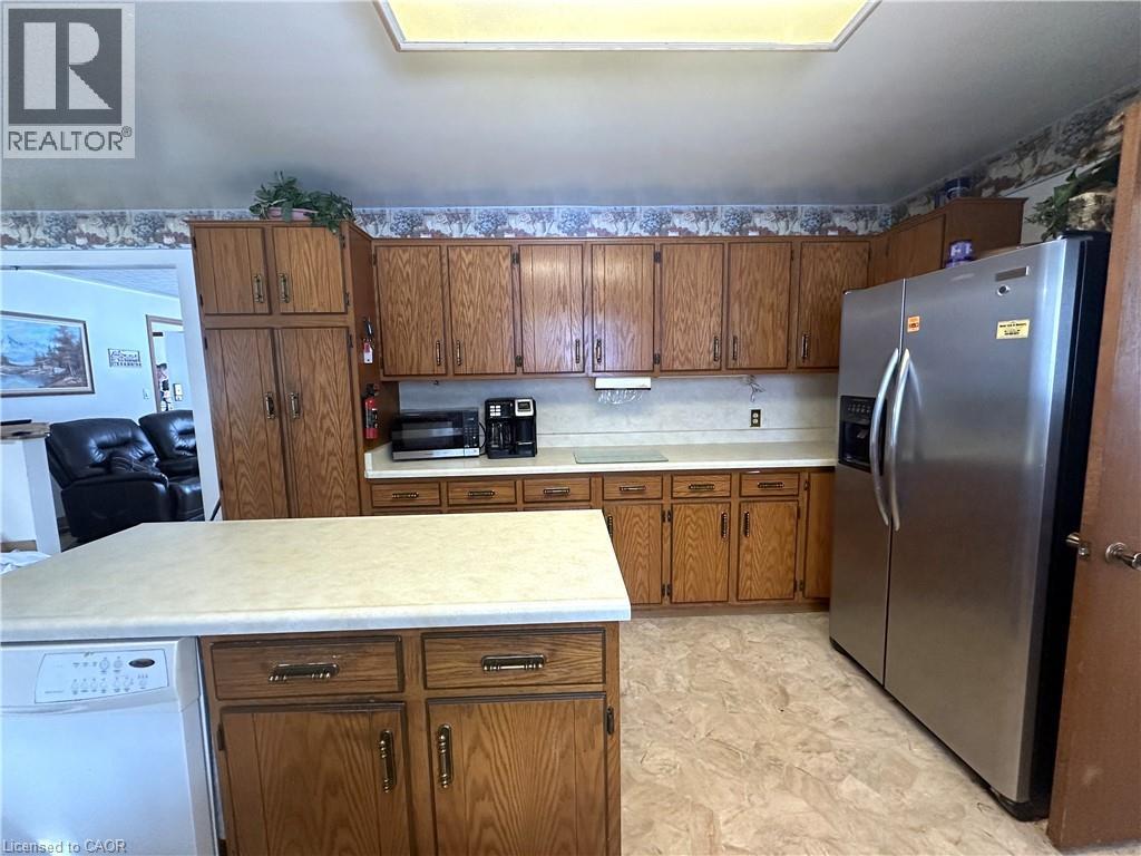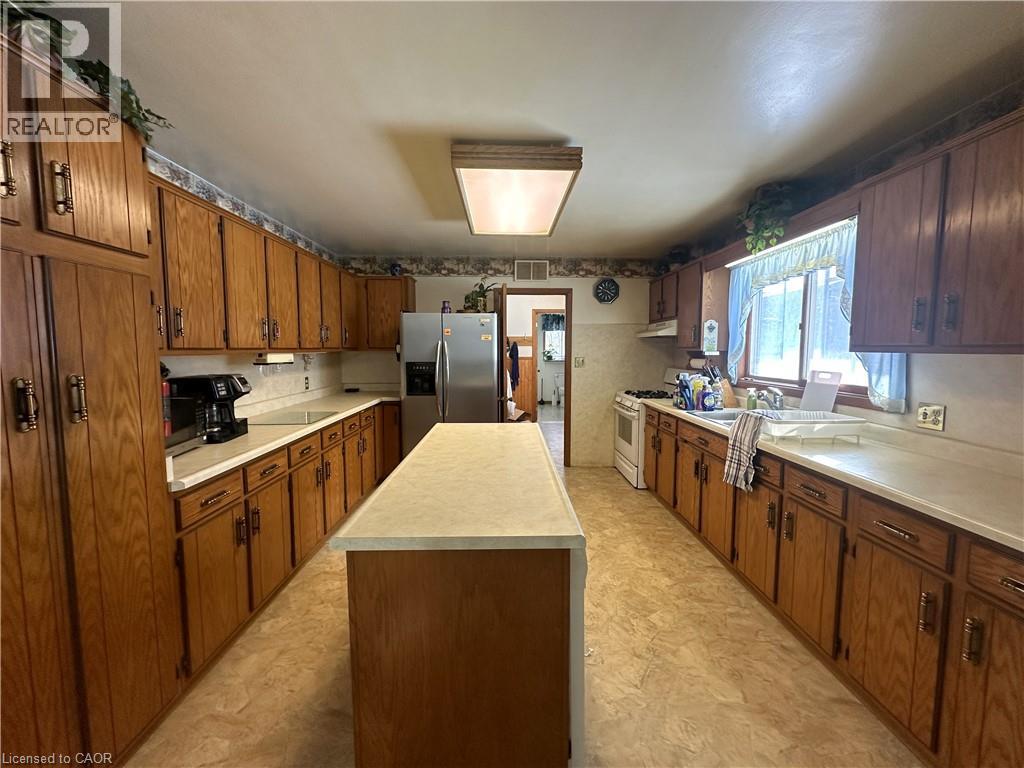Looking to move to the country? This sprawling 3 bedroom, brick bungalow sits well off the road on 20 acres within just a short drive to Simcoe and Port Dover. Follow the driveway to the private setting, step up to the front covered porch and head indoors. The foyer with coat closet leads to the spacious living room with plenty of natural light from the front window. Next is the expansive open concept kitchen and dining room. Plenty of cupboard and counter space and room for the whole family to dine together. From here enter the sunroom with panoramic views of the backyard surrounded with mature trees. Cozy up near the gas fireplace and maybe catch a glimpse of a deer or two passing through. Down the hall are three comfortable bedrooms including the large primary bedroom and the four piece bathroom. On the other side of the kitchen is the laundry room with access to the attached 2 car garage and the three piece bathroom. Downstairs, the unfinished full basement could make a great future recreation room. Outdoors, the outbuildings include a detached 2 car garage (60x31ft), attached pole barn/shop (32x30ft), a large storage barn (43x58ft.) and a greenhouse with gas heat (42x32ft). With approximately 16 acres of workable land either rent it or work it yourself. The possibilities are only limited to what you can dream of! (id:4555)