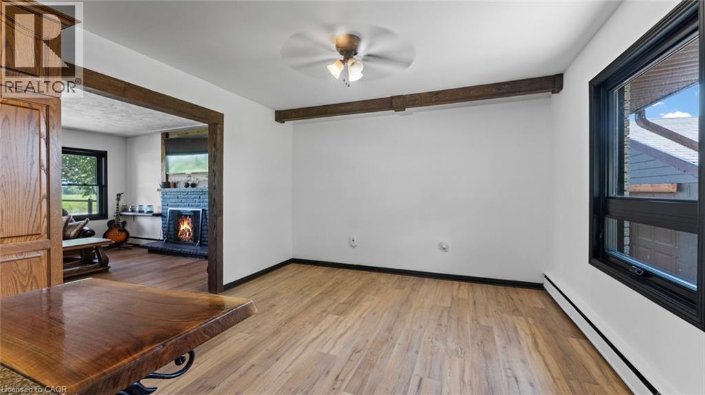 Embrace Tranquil Country Living Just Minutes from Simcoe. Discover the perfect blend of countryside peace and modern comfort in this fully updated bungalow, situated on a generous 0.68-acre lot just outside of Simcoe. With a harmonious mix of rustic beauty and contemporary finishes, this property is an ideal retreat that still keeps you close to all the essentials of town life.Step into a bright, open-concept main floor filled with sunlight, where the spacious living room flows effortlessly into a thoughtfully renovated kitchen. Boasting abundant cabinetry and counter space, the kitchen is ideal for daily meal prep and entertaining. The adjacent dining area creates a warm, welcoming space for family dinners and social gatherings.The main level features three well-sized bedrooms, each offering ample closet storage, along with a stylish 4-piece bathroom. Head down to the finished basement where a large recreation room awaits—perfect for movie nights or game days—alongside a flexible additional room that can serve as a fourth bedroom, home office, or study area. Step outside to enjoy the peaceful surroundings on either the charming covered front porch or the covered back deck—ideal spots for morning coffee or evening barbecues. The expansive backyard offers endless potential for outdoor enjoyment, whether it’s gardening, playing, or simply relaxing in nature. Additional highlights include a detached 28' x 24' two-car garage offering plenty of space for parking and storage, and an insulated 12' x 28' (336sqft) multi-purpose shed complete with a built-in bar—perfect for entertaining guests or enjoying some quiet downtime.Located just a short drive from Simcoe’s schools, shops, and restaurants, this property offers the best of both worlds: peaceful rural living with everyday convenience close by. Whether you're in search of a family home or a private country getaway, this one checks all the boxes. Schedule your viewing today—your slice of country paradise is waiting! (id:4555)