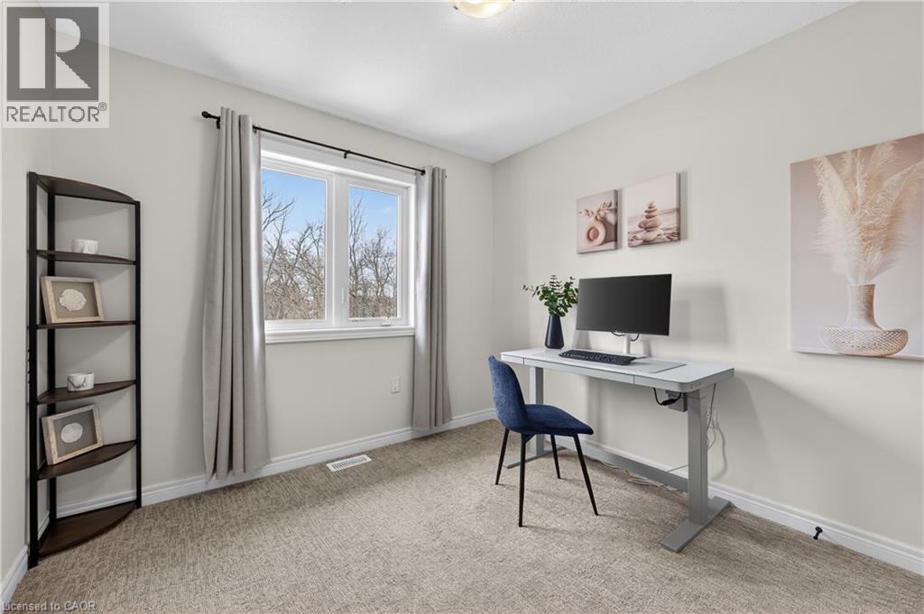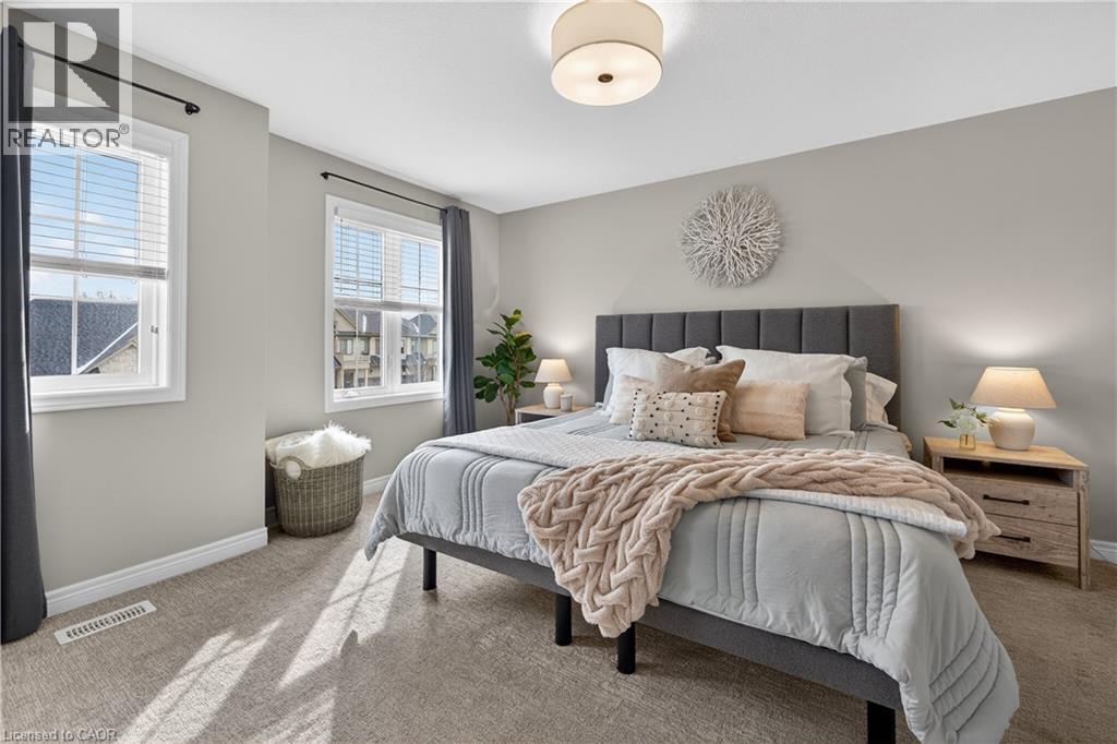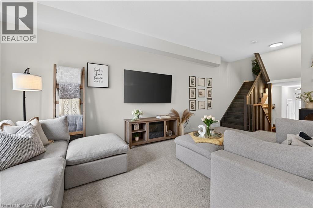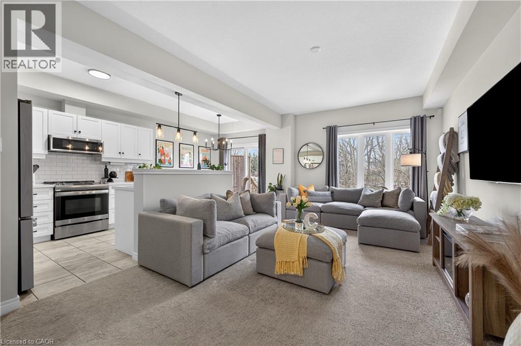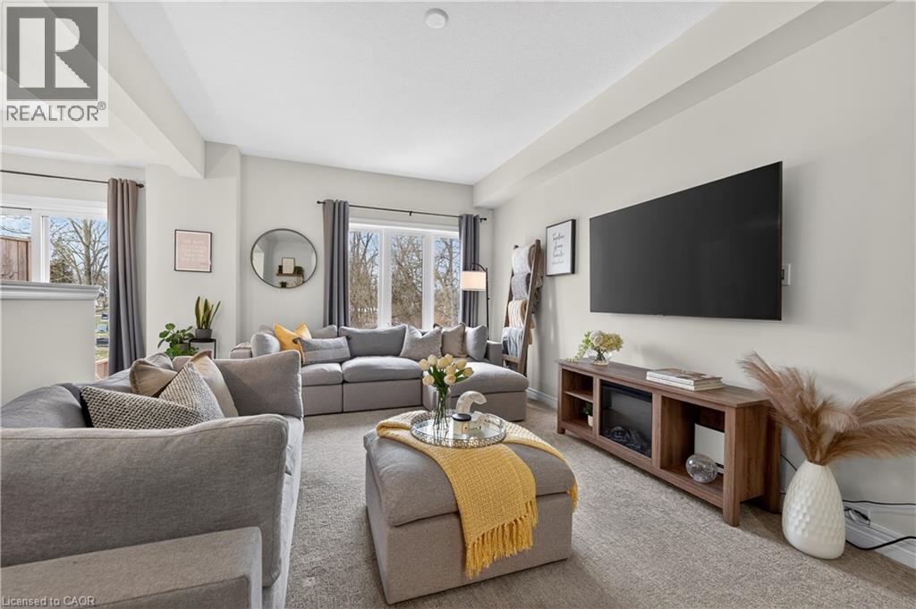 MODERN FREEHOLD TOWNHOME WITH NO REAR NEIGHBOURS IN THE HEART OF SMITHVILLE. Wake up to sunlight streaming through oversized windows and step into a home that feels fresh, stylish, and effortlessly functional. Built in 2021, this beautifully designed two-storey freehold townhome offers thoughtfully planned living space plus an unfinished basement ready to grow with you. The open-concept main level is bright and welcoming—perfect for both relaxed mornings and lively evenings with friends. The eat-in kitchen anchors the space with quartz countertops, stainless steel appliances, a modern backsplash, and abundant cabinetry. Step out to the back deck for summer barbecues or quiet evenings under the stars. A custom accent wall, upgraded light fixtures, and tasteful finishes throughout add warmth and personality. Upstairs, the smart split-level layout creates a private primary retreat complete with a built-in customizable walk-in closet, upgraded window coverings, and a quartz-topped ensuite with upgraded vanity. Two additional spacious bedrooms are served by a full four-piece bathroom, while convenient bedroom-level laundry makes busy mornings effortless and keeps everyday living beautifully organized. The fully fenced backyard with no rear neighbours provides rare privacy—ideal for kids, pets, or simply unwinding in peace. The basement includes a bathroom rough-in, giving you endless potential for future living space, a gym, or recreation area. Set in a family-friendly Smithville community just steps to the park, close to schools, local shops, restaurants, and quick access to Highway 20, this home blends small-town charm with commuter convenience. If you’ve been waiting for a move-in-ready home that delivers comfort, style, and room to grow—this is your opportunity. Take the next step toward making this home yours. (id:4555)