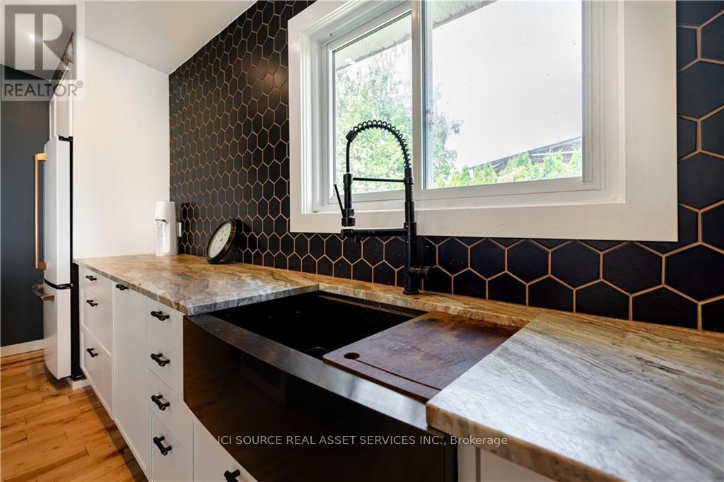 Live your waterfront dream in this updated 3 bedroom home at the end of a quiet cul de sac, 1 hour from downtown Montreal, 90 mins from Ottawa. The perfect remote work retreat. Panoramic views of Lac St. Francis and the Adirondack mountain chain from your indoor and outdoor living spaces. Featuring several upgrades. Enter through the carport into the large, bright living area with cathedral ceilings and wall-to-wall water views. Gas fireplace. Gourmet kitchen with a leathered granite island made for entertaining. Six-burner gas stove. Counter-depth fridge. Primary bedroom with 4pc ensuite and jet soaker tub. Second bedroom fits queen or king bed with room to spare. Laundry, guest washroom and water system hidden in hallway that leads to a second living/family room with separate front-door entrance, 3rd bedroom and second bathroom. This wing of the surprisingly spacious home could be a master bedroom getaway, or a guest / in-law suite with income potential. Other notable improvements: heat pump heating/air con, foam spray insulation, HWT on demand, water tx system, flood prevention french drain with auto-pump system from crawl space to the lake. Outside features new composite deck for boat docking and waterside seating and a cedar privacy hedge, planted at the front by the current owner to provide a wall between the front yard and guest parking. A storage shed detached large garage/workshop with high ceilings offer further room for expansion. The possibilities are endless in this private lot. *For Additional Property Details Click The Brochure Icon Below* (id:4555)