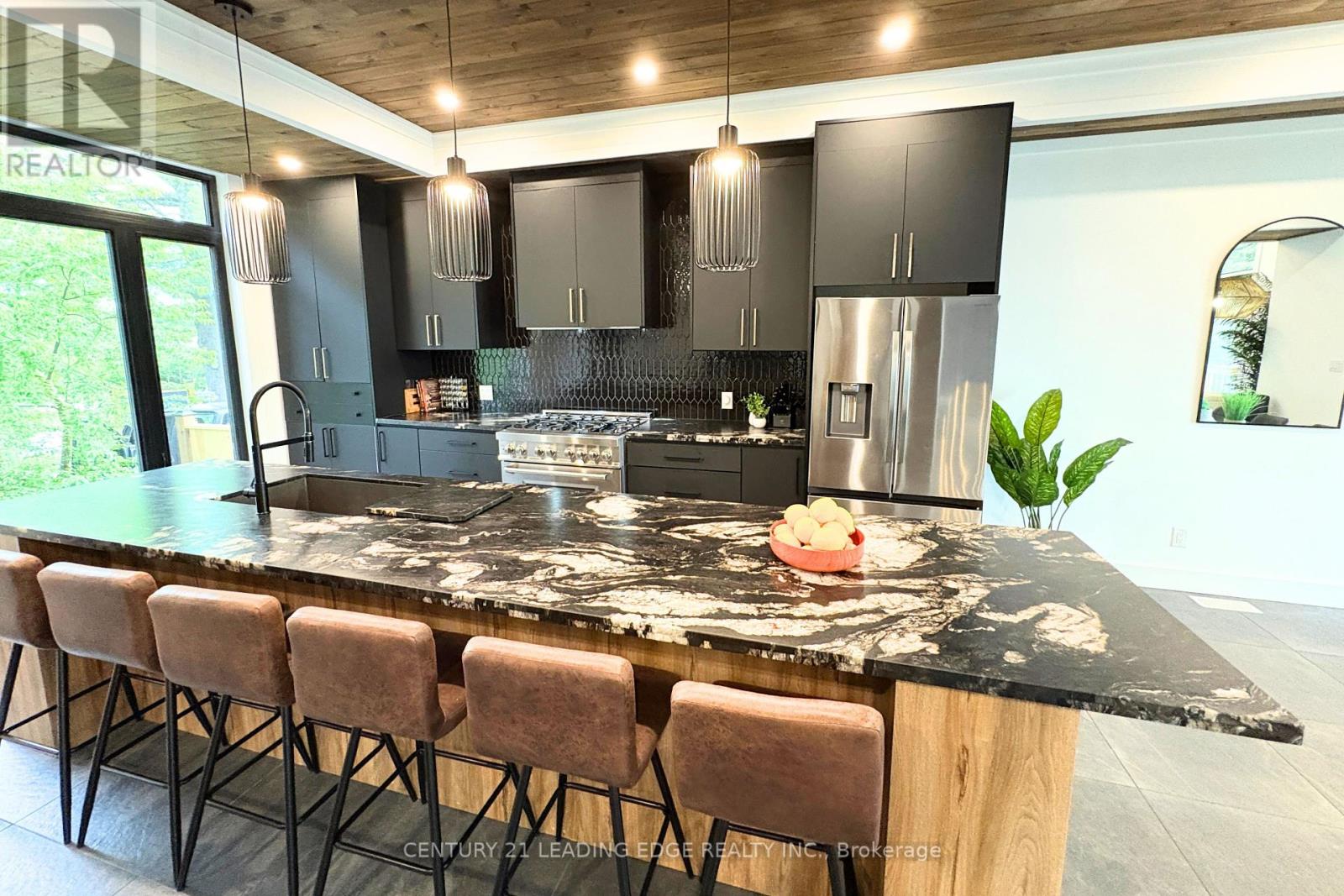 Welcome to 34 Ottawa Avenue, an extraordinary newly built waterfront retreat nestled on the pristine shores of Forest Lake in the charming community of South River in Parry Sound. This rare offering is more than just a waterfront home, it's a fully operational short-term rental business with a proven track record of impressive income, making it ideal for investors and lifestyle seekers alike. Designed with both comfort and luxury in mind. This expansive modern residence accommodates up to 14 guests, making it perfect for large families, vacation groups, or rental clients seeking an unforgettable lakeside getaway. Inside, you'll find a stunning modern layout, high-end finishes such as leathered countertops, 20' ceiling height with floor-to-ceiling fireplace, and ample space for entertaining and relaxation. Step outside and immerse yourself in the natural beauty that surrounds you. The property boasts clean, clear water ideal for paddleboarding, swimming, and boating, along with a private sandy beach where guests can unwind and enjoy the serenity of lake life. The second-story lounge decks provide the perfect vantage point for taking in panoramic views of Forest Lake, an unforgettable backdrop for morning coffees or evening sunsets. Whether you're looking to expand your investment portfolio with a thriving, high-performing vacation rental or seeking a luxurious family compound on the water, 34 Ottawa Ave. delivers both lifestyle and income in one exceptional package. Don't miss this opportunity to own a one-of-a-kind waterfront gem with endless potential. (id:4555)
